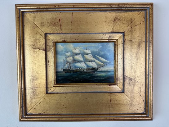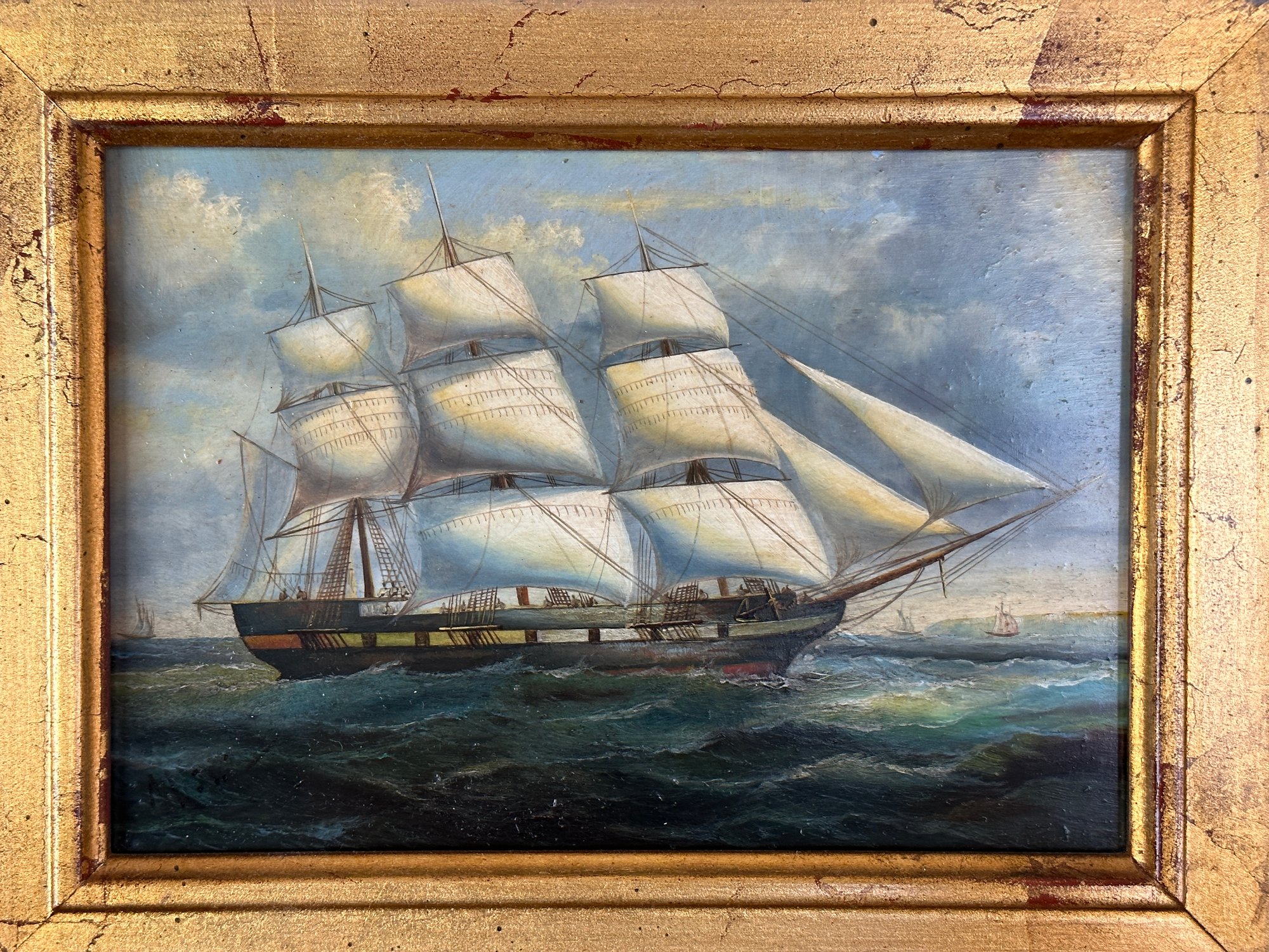 Nautical Oil On Panel Of A Ships Portrait ( B )