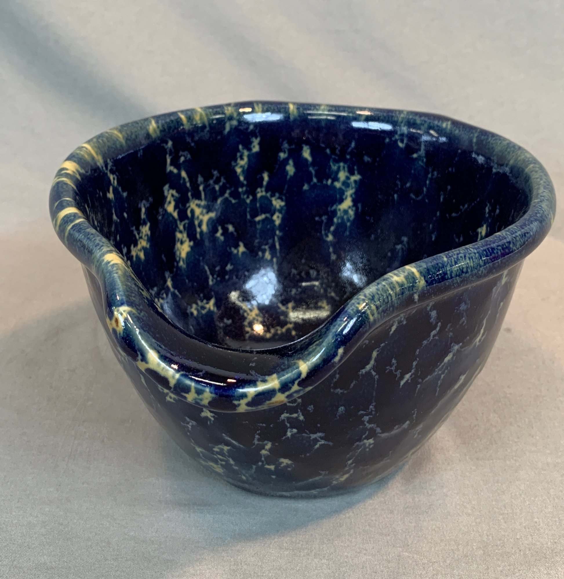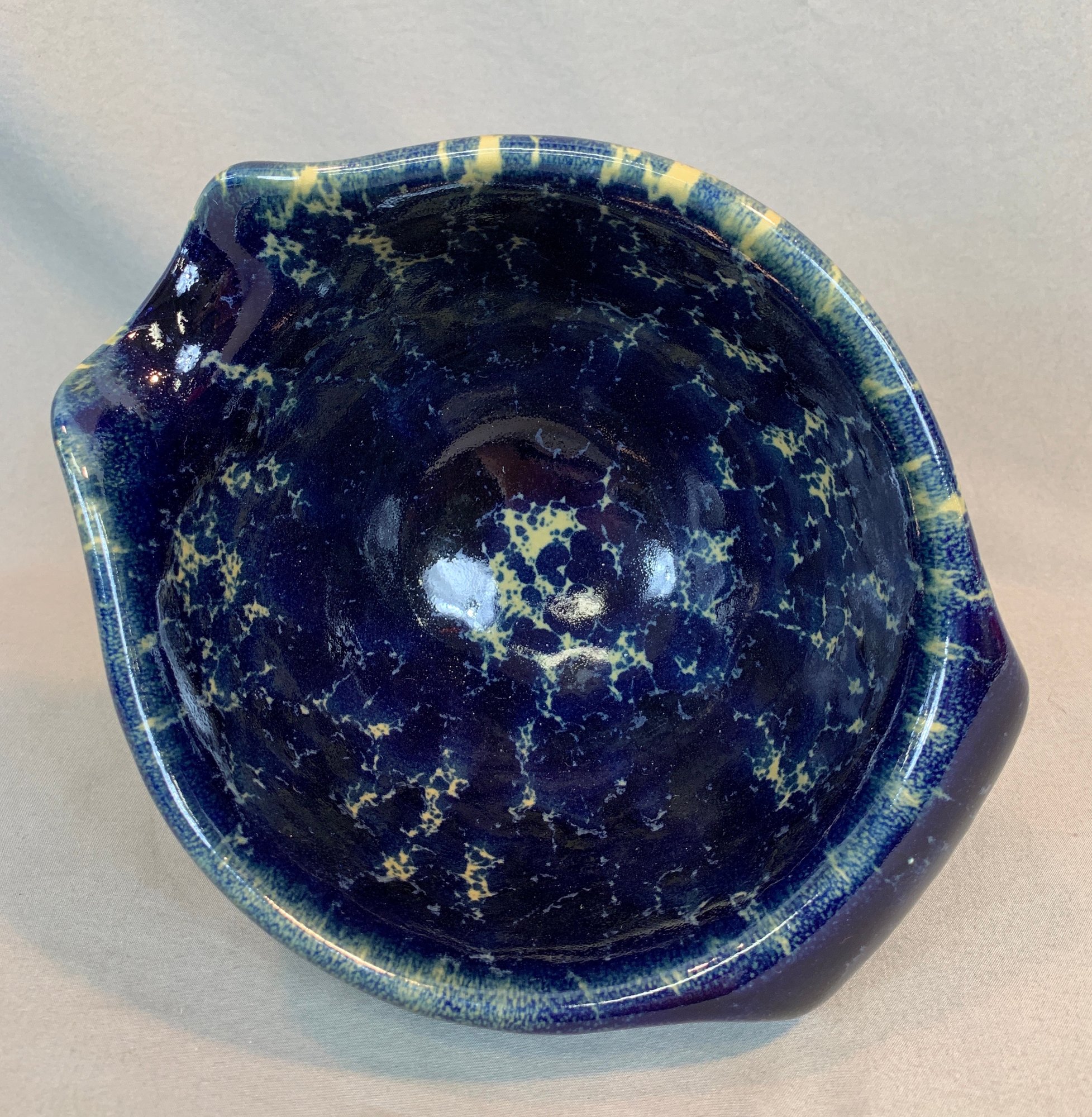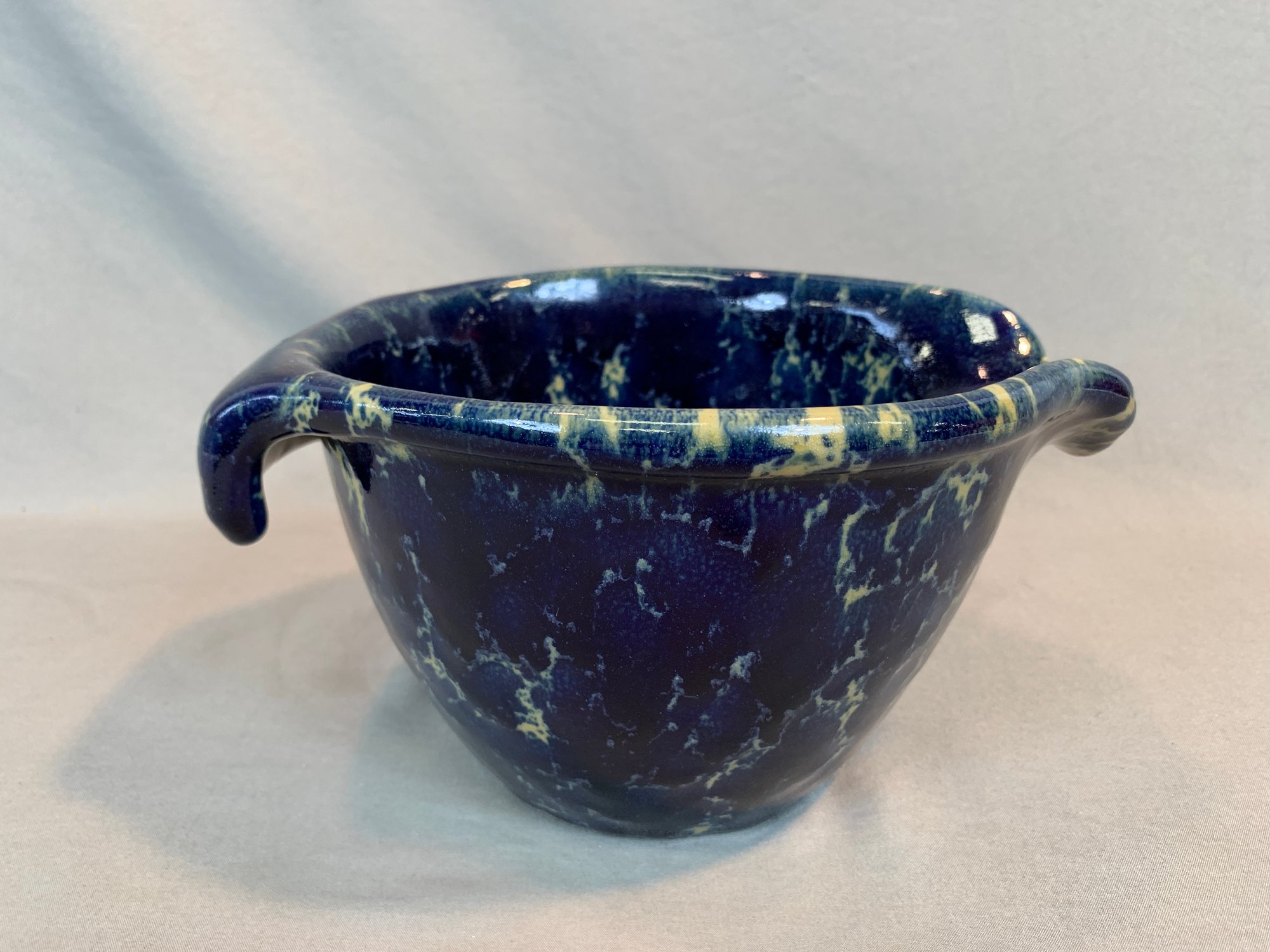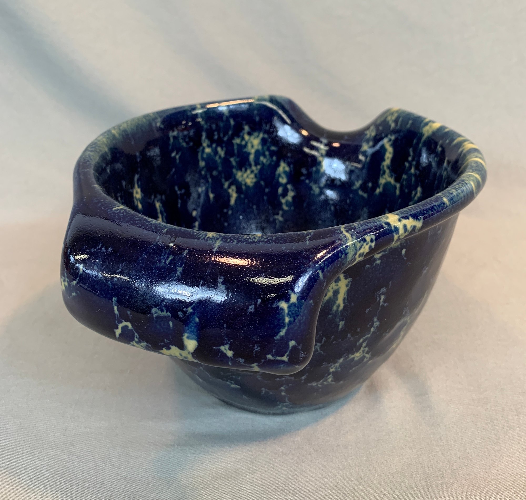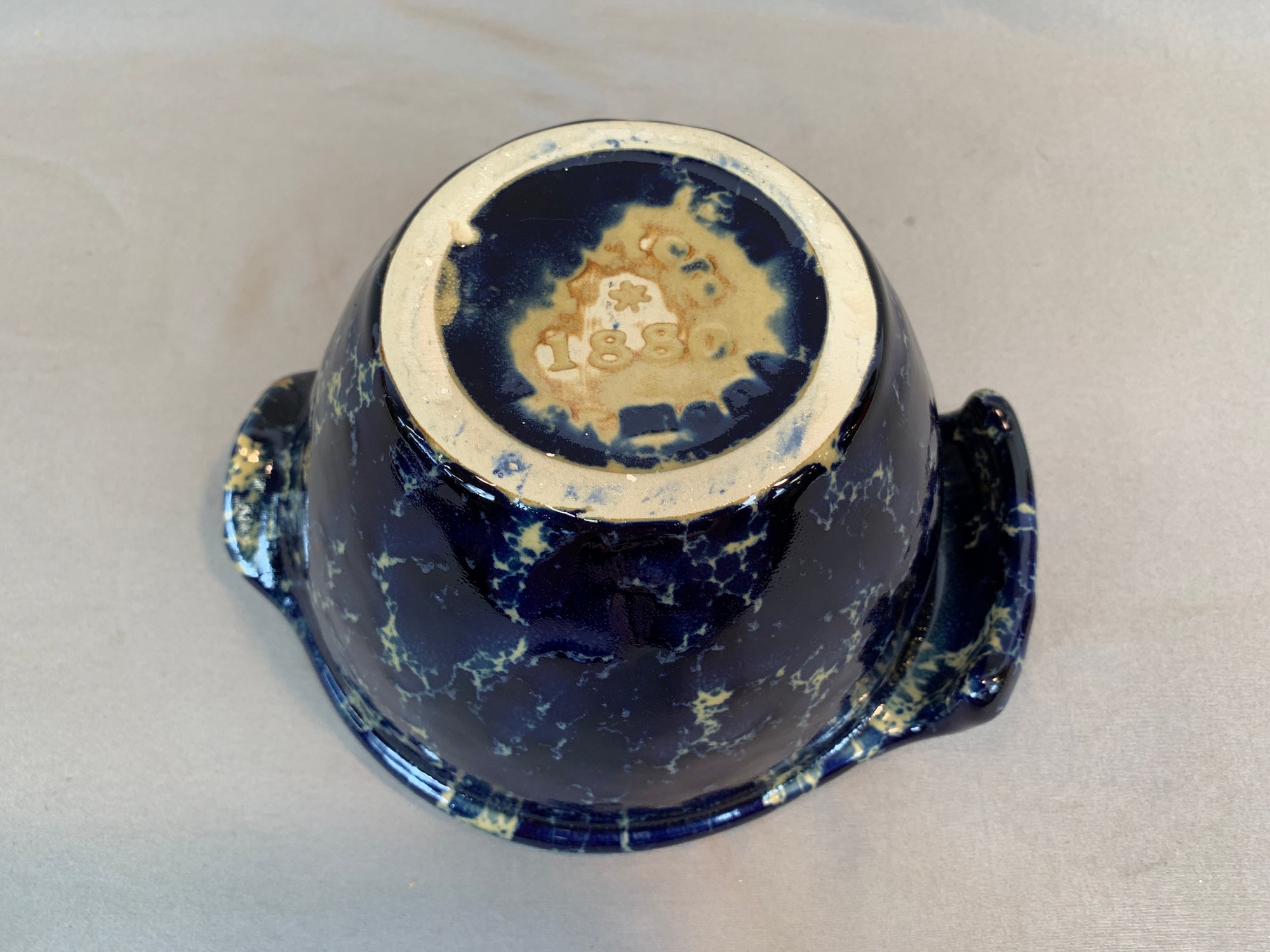 With a blue agate glaze, marked on bottom.