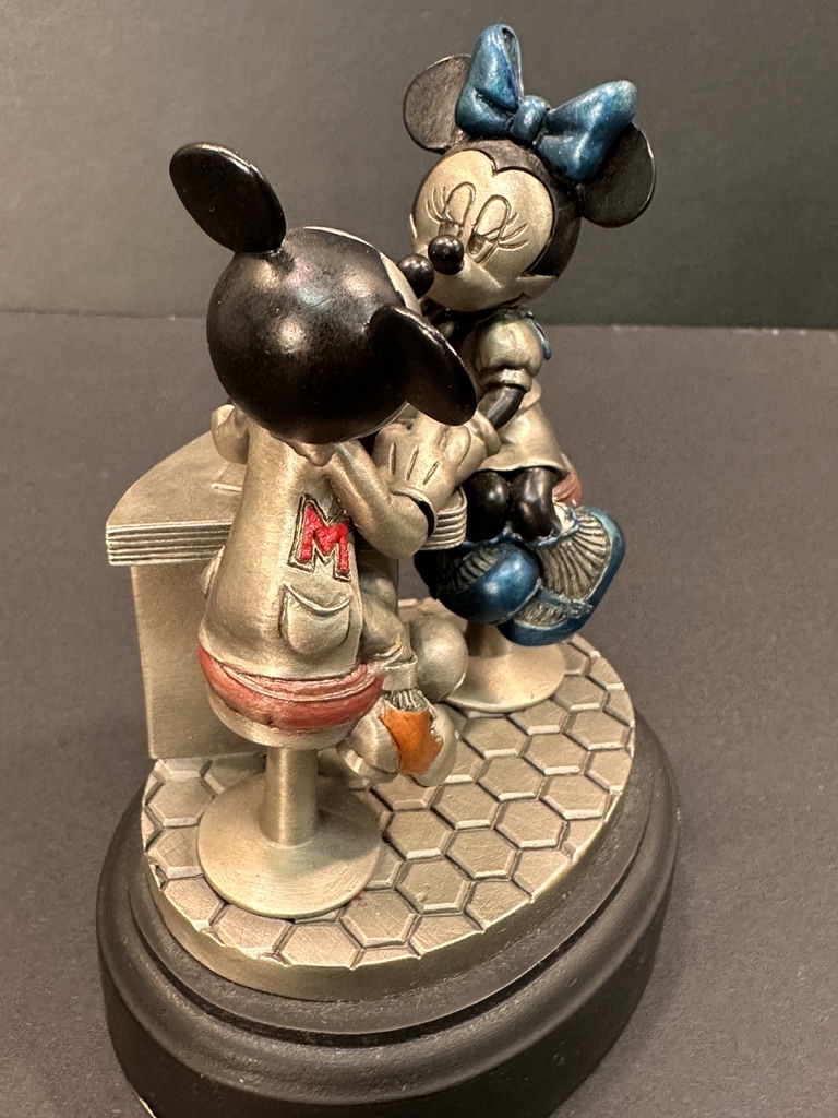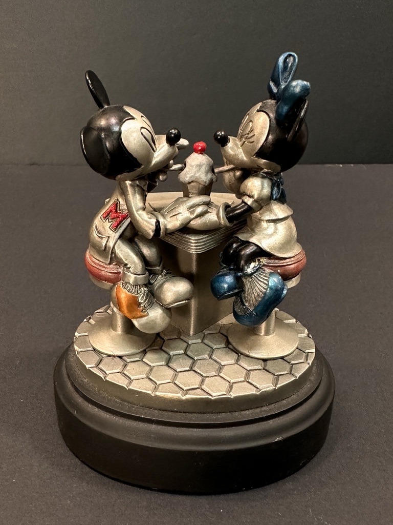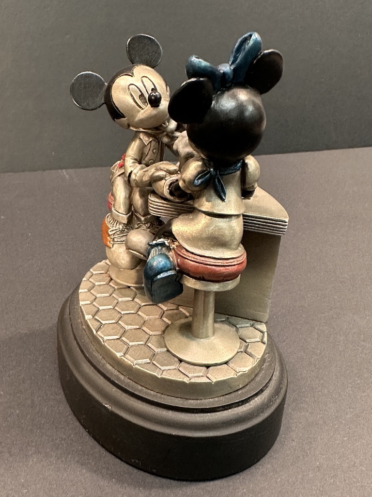 Circa 1996 limited edition, Stamped Disney and numbered 223/500, featuring Mickey and Minnie Mouse sipping an ice cream soda.