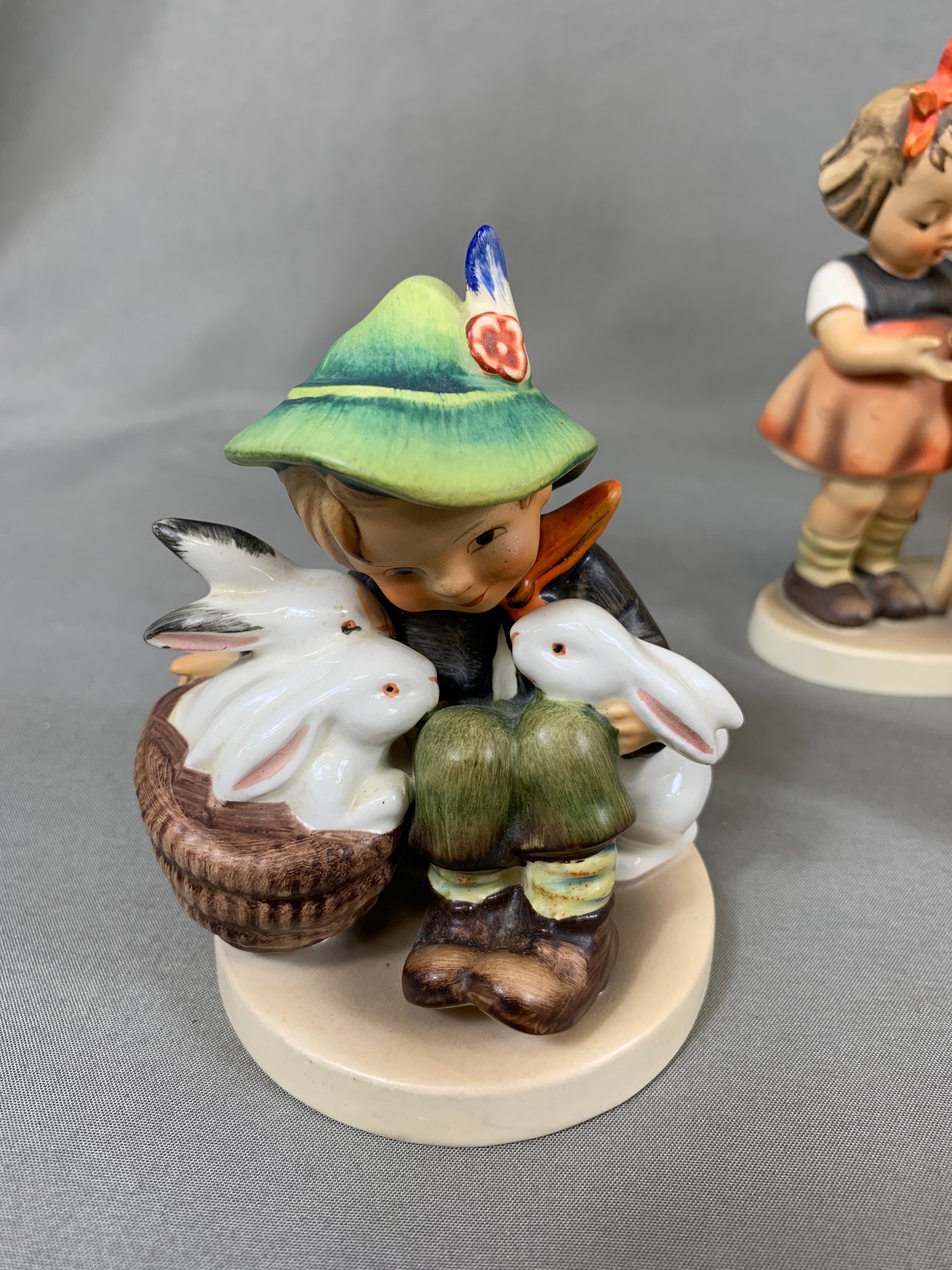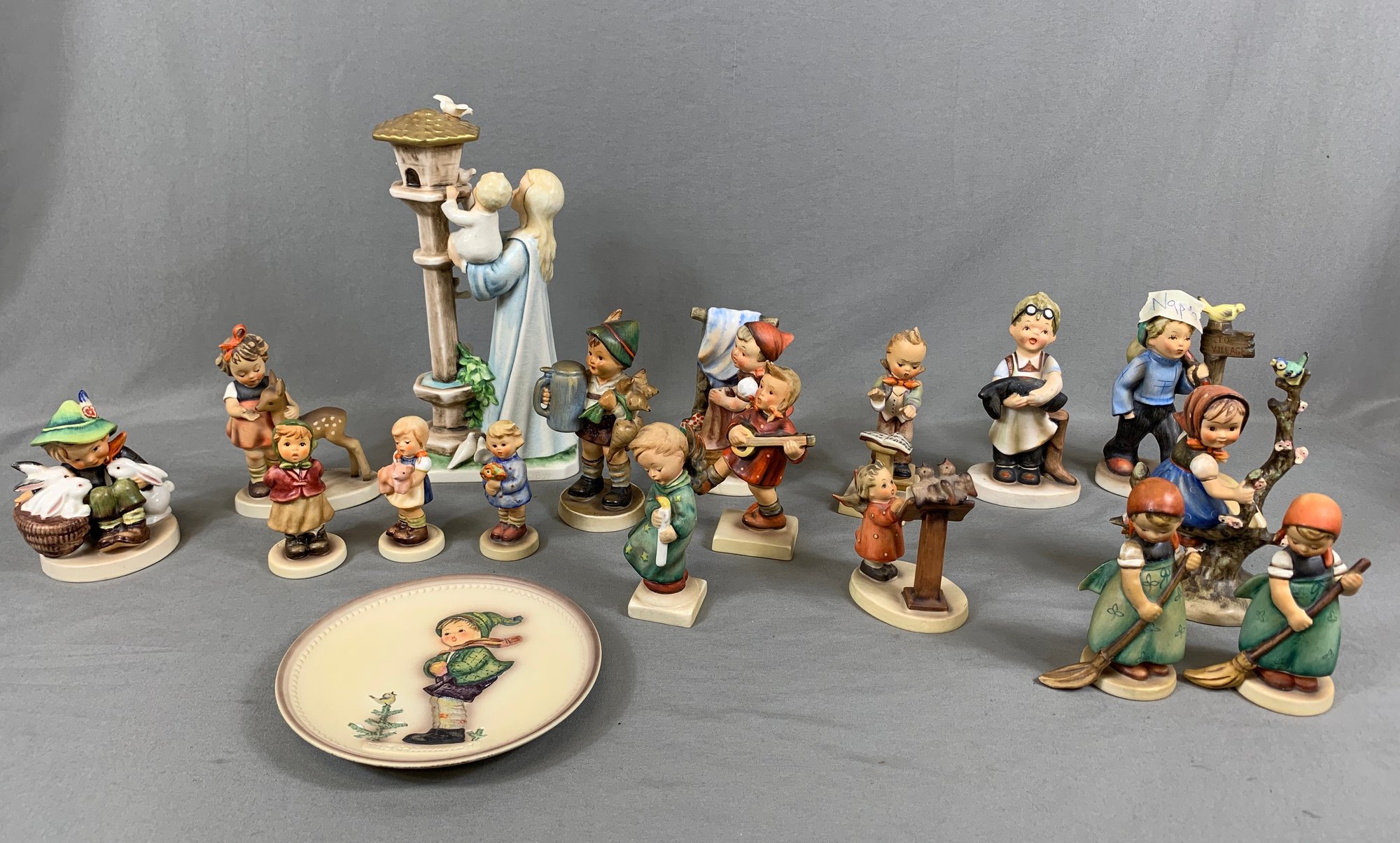 Collection of 15 traditional Hummel figurines , some with chips and repairs, a Hummel plate ,together with 3 similar figurines of Napco manufacture, 18 total pieces