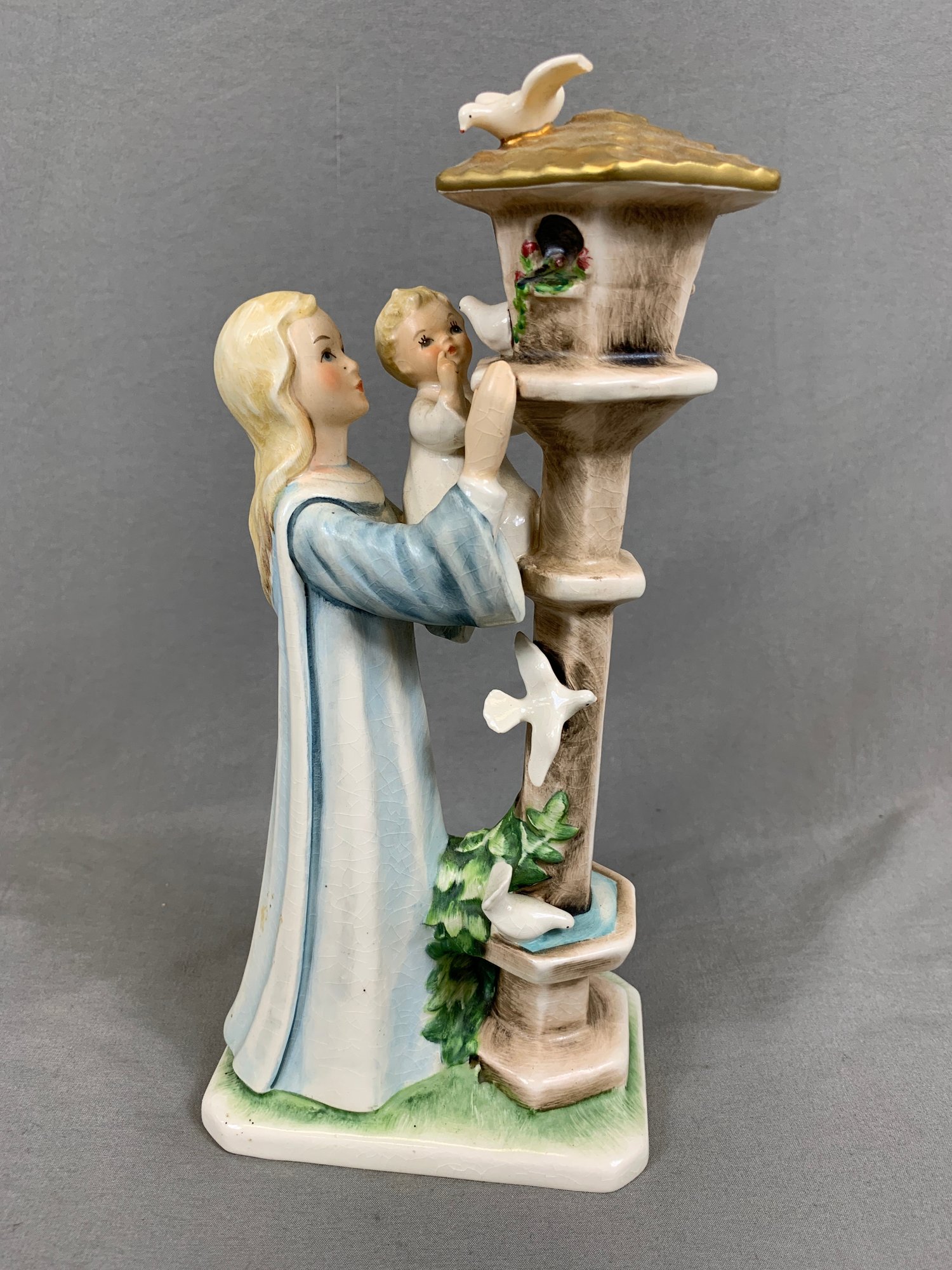 Largest Figure Woman with child and bird house : 10.5" H x 5" W