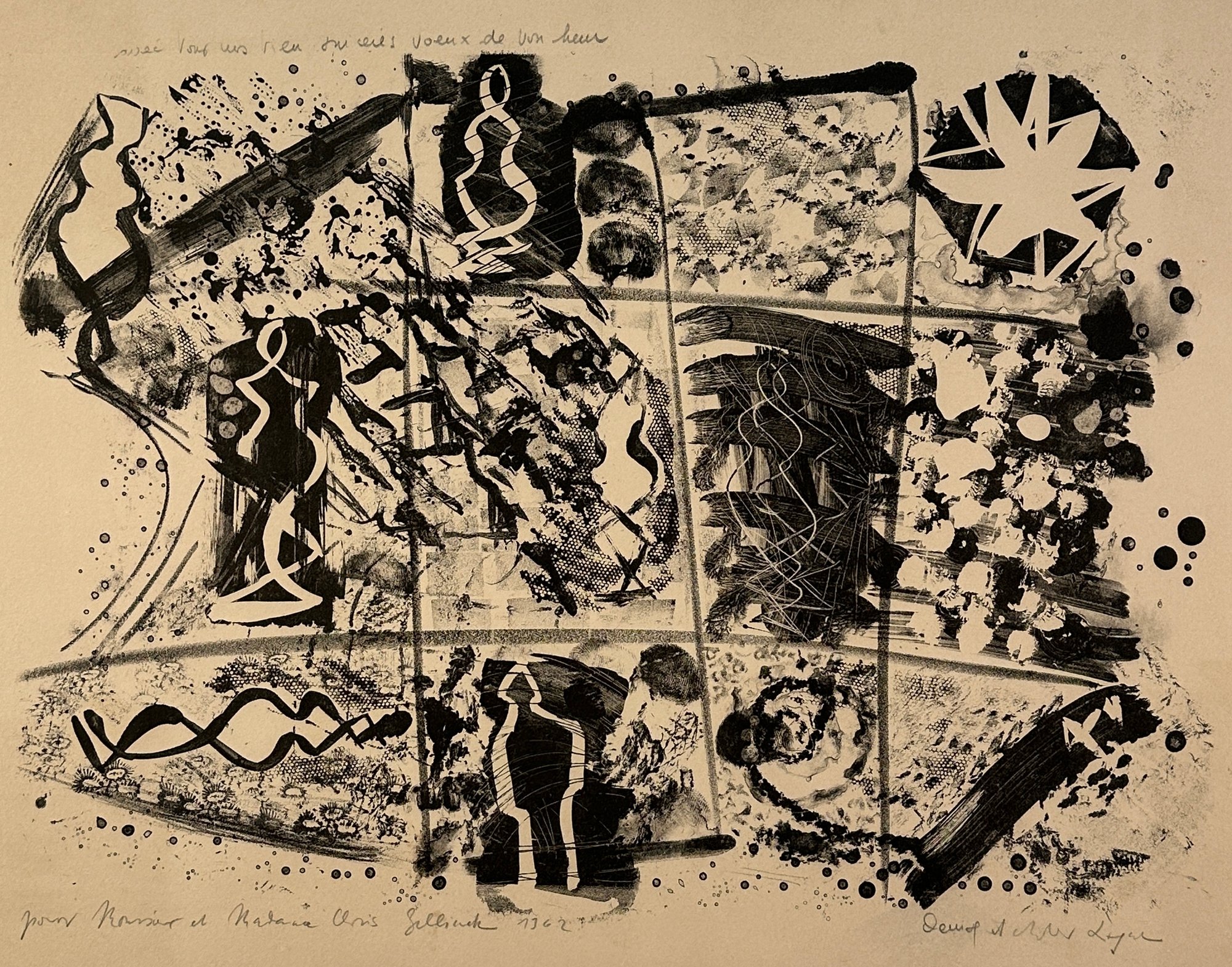Titled in French upper left, dedicated in French lower left, dated 1962, signed lower right .