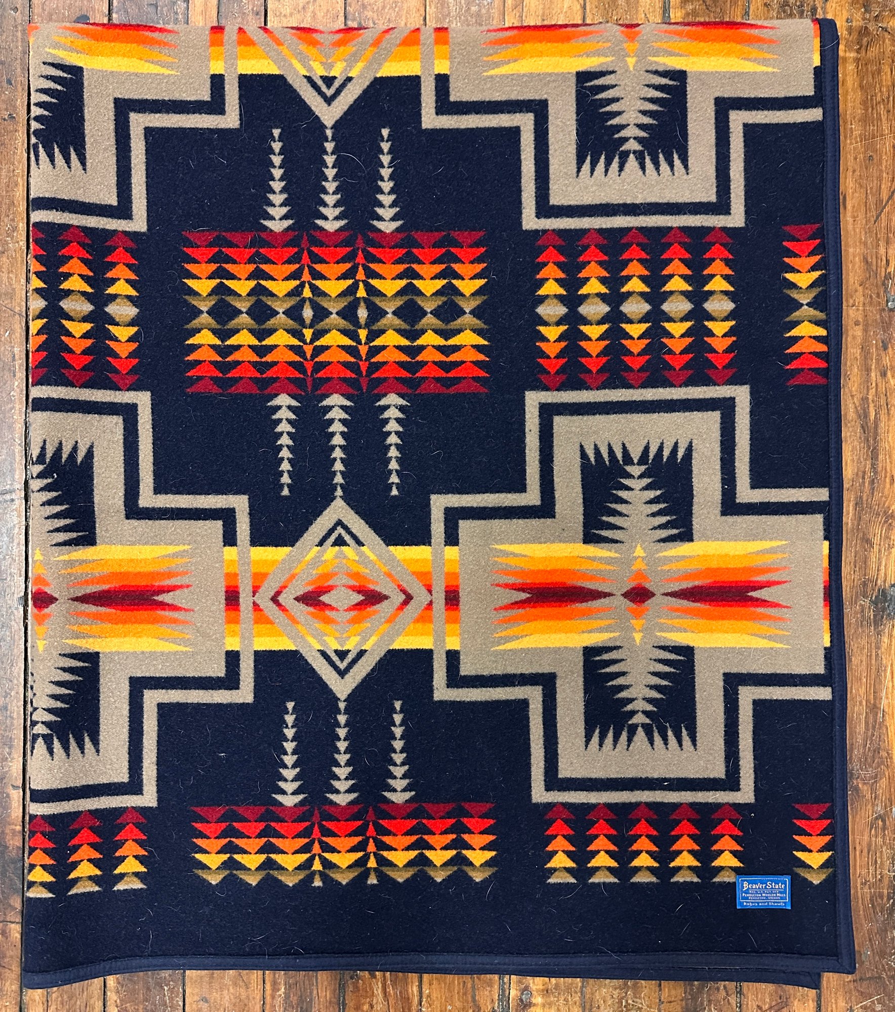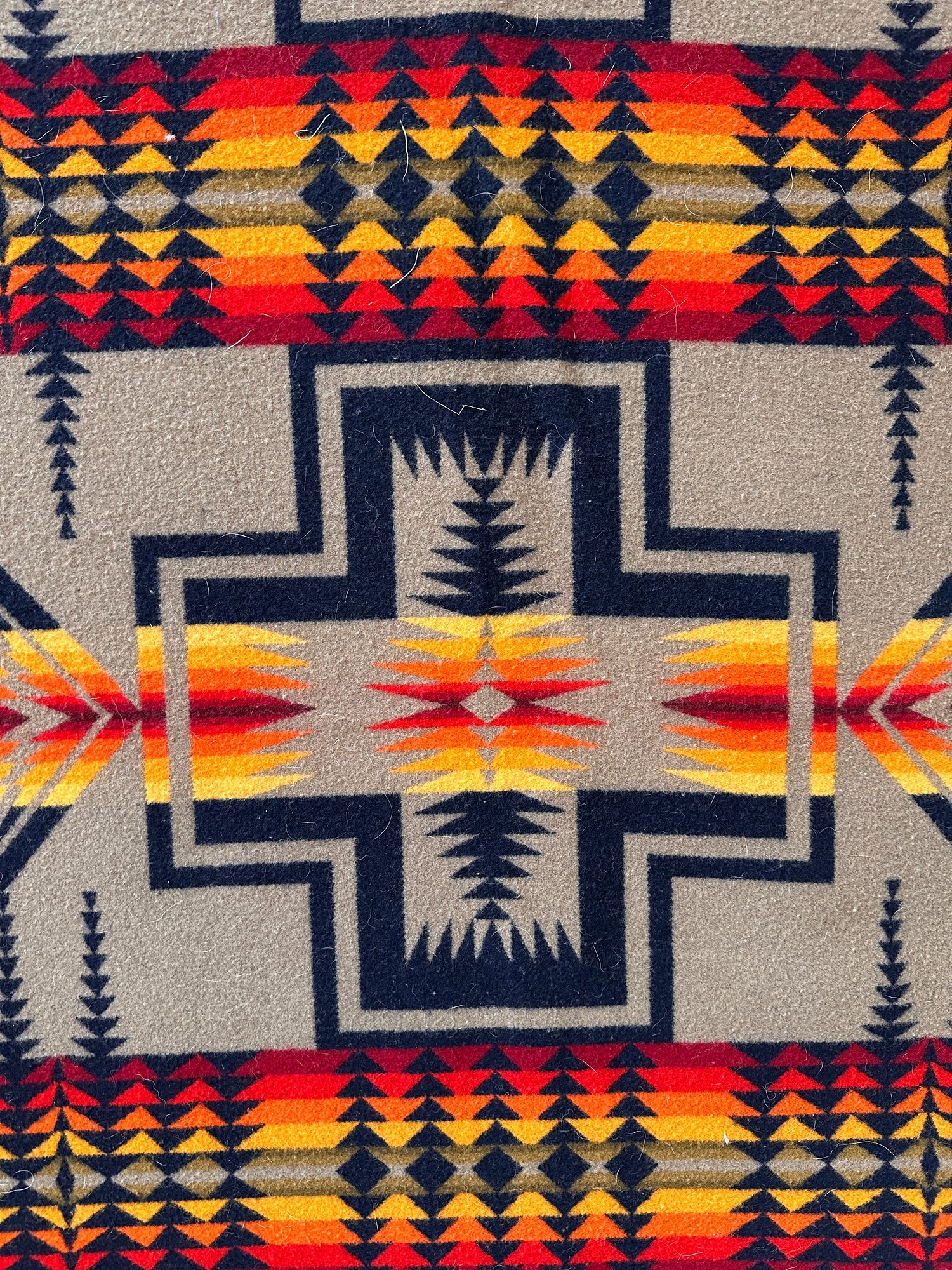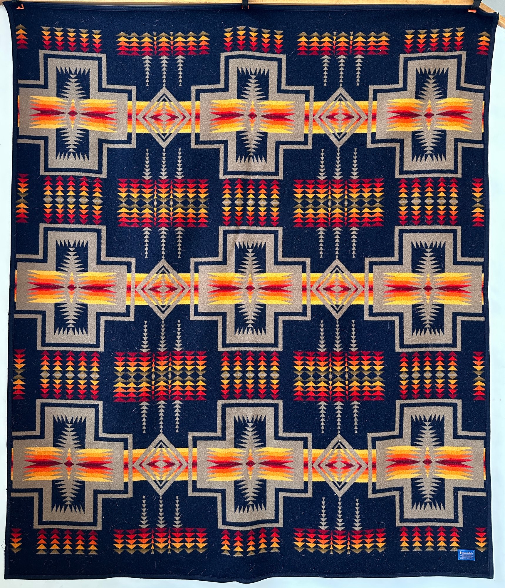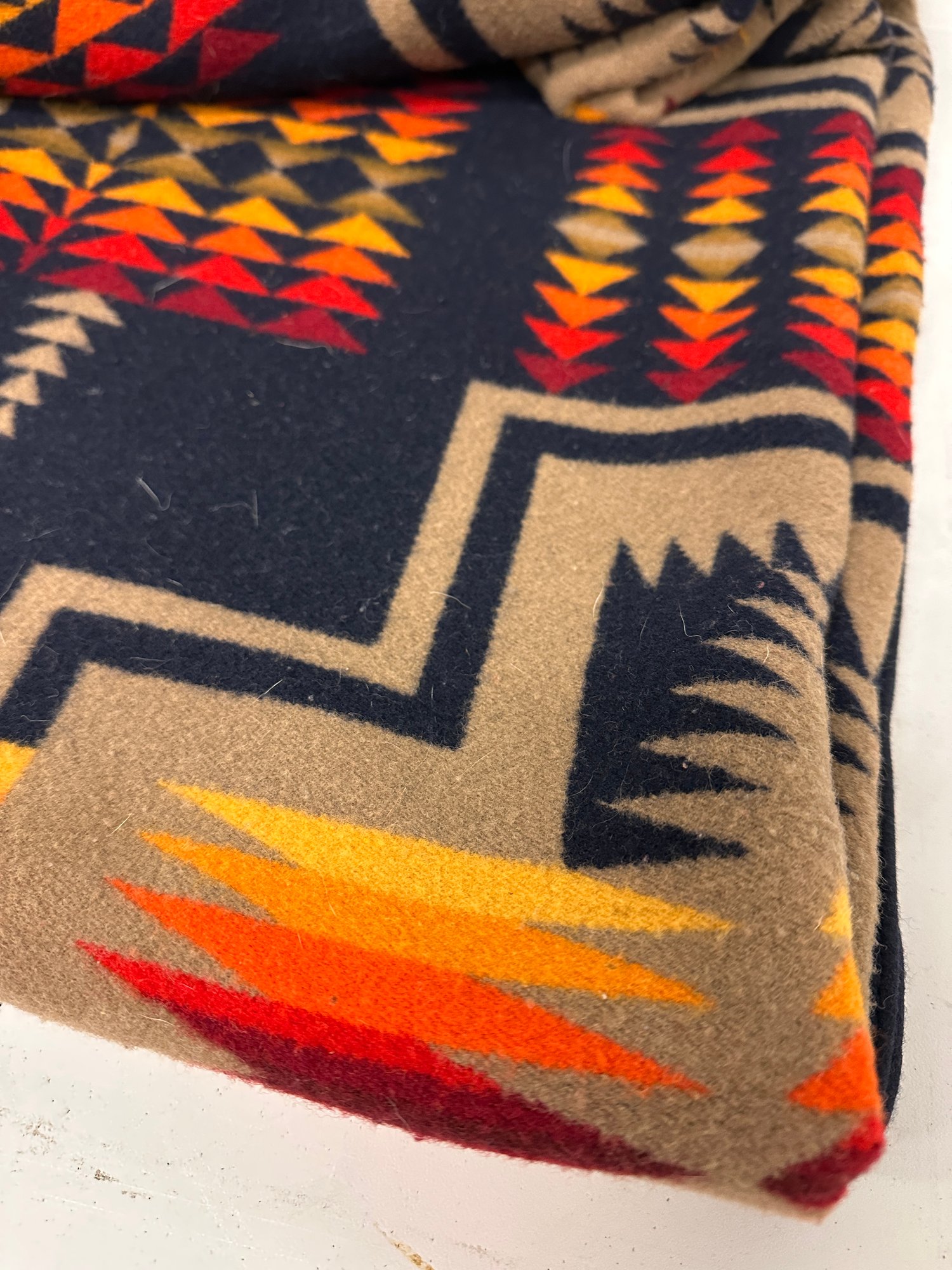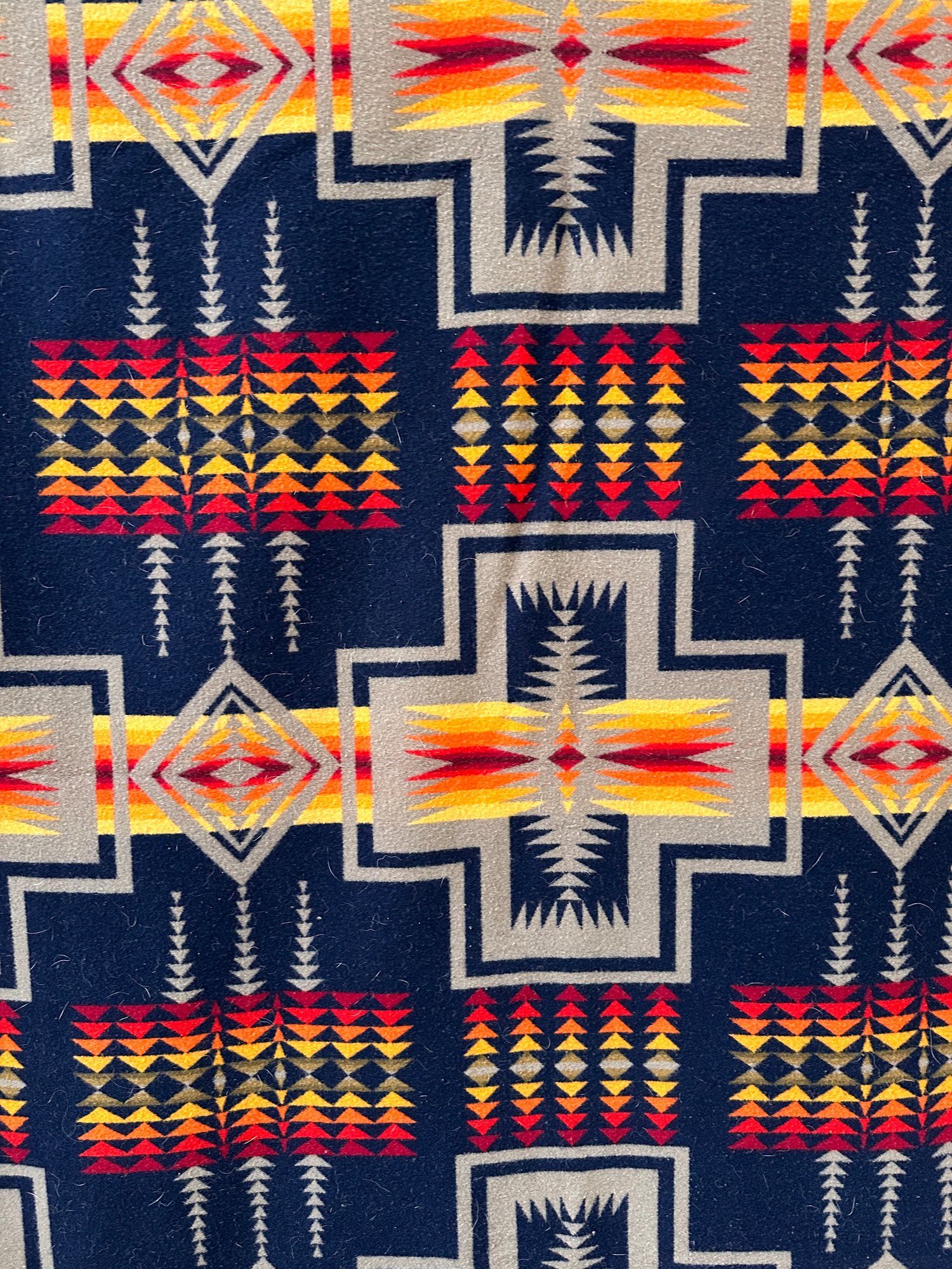 This vintage Pendleton Beaver State wool blanket features the iconic Chief Joseph pattern in a vibrant multicolor design. Made in the USA, this high-quality wool robe or shawl showcases Pendleton's craftsmanship and enduring style.