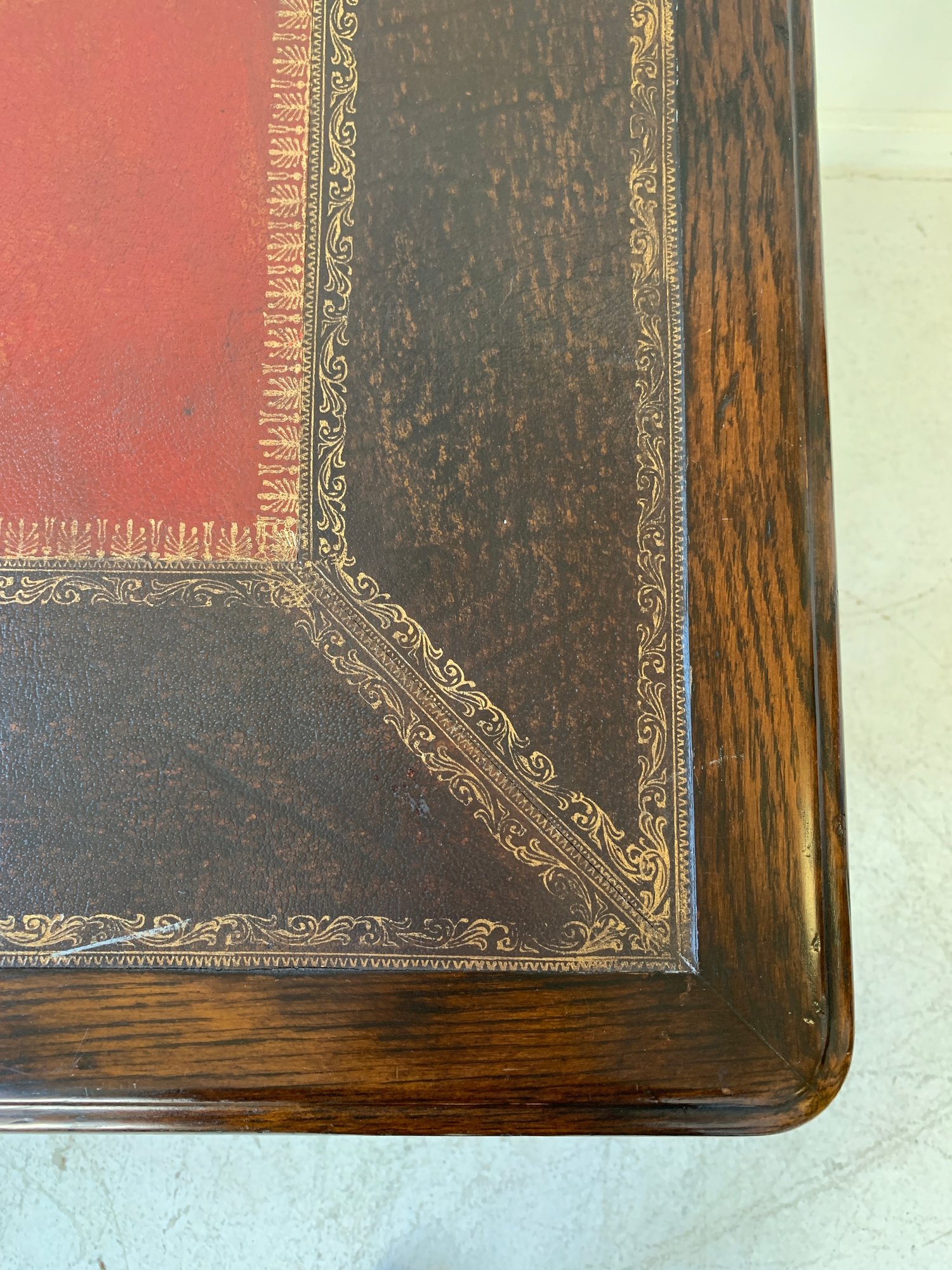 Condition: Very good. Minor scratches to the leather top; normal wear consistent with age. Please refer to photographs for details.