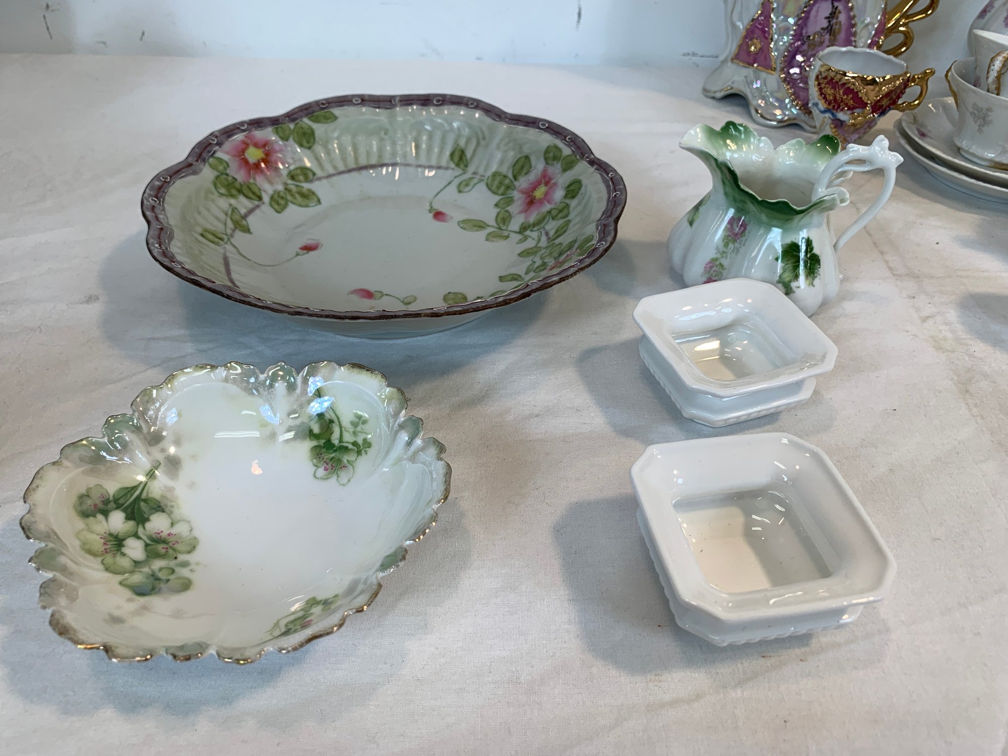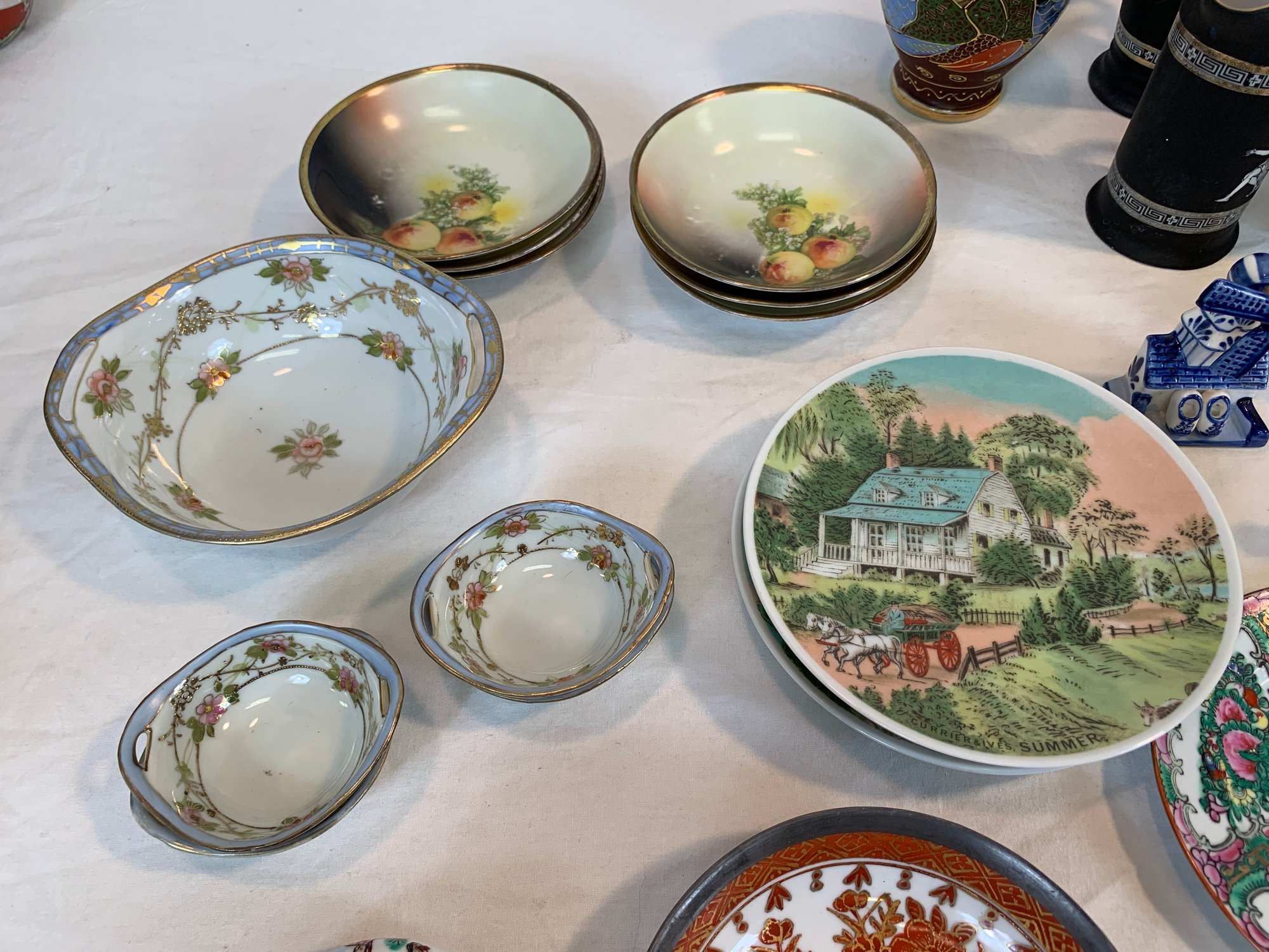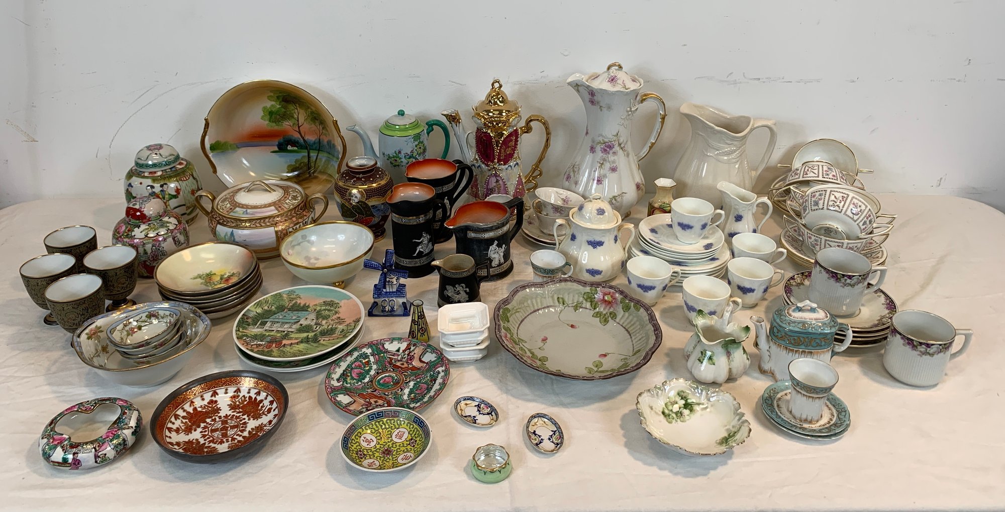 Including Minton, Royal Bayreuth and Nippon pieces, some English pieces and some Asian pieces. Approximately 78 pieces in total .