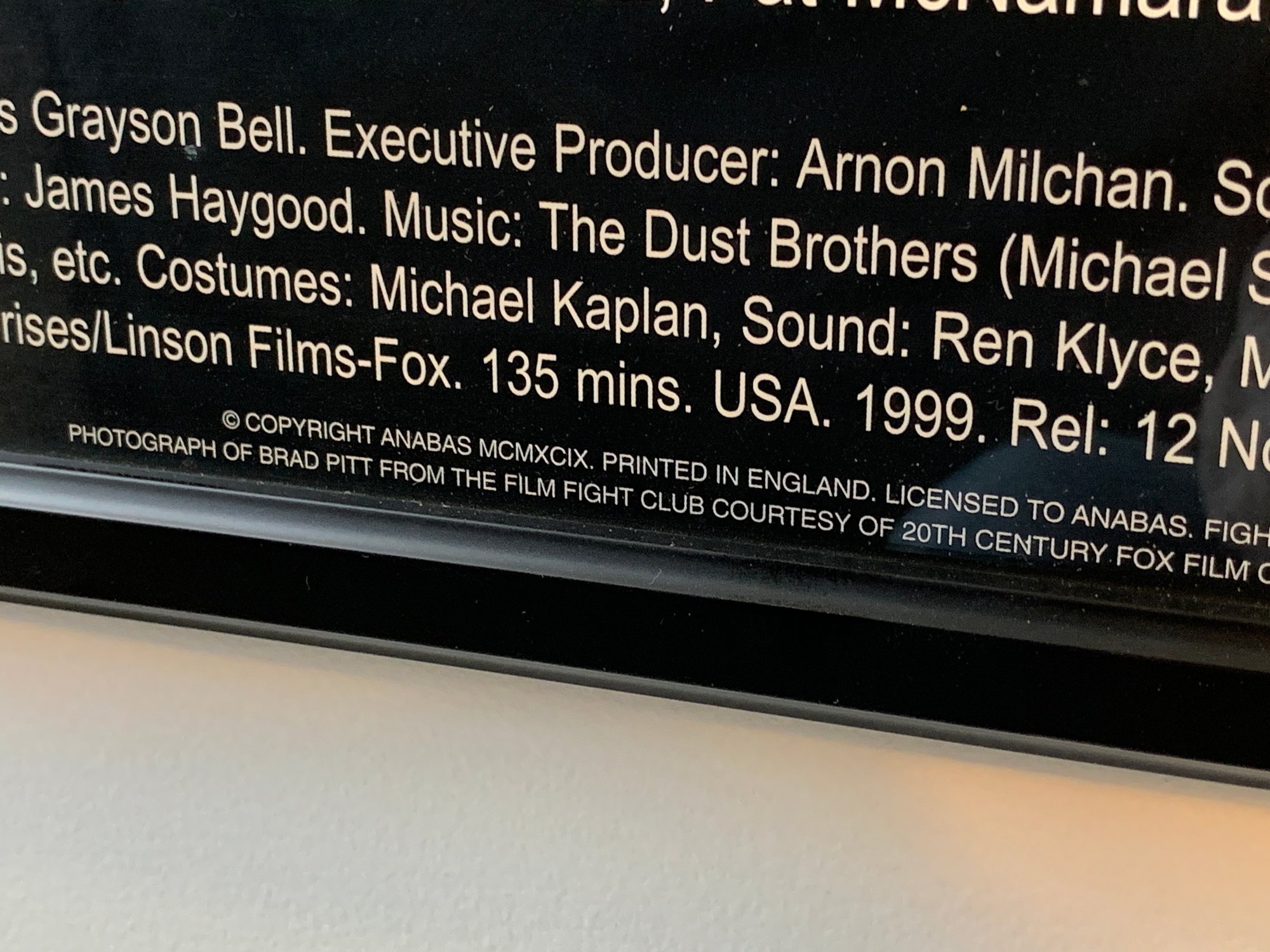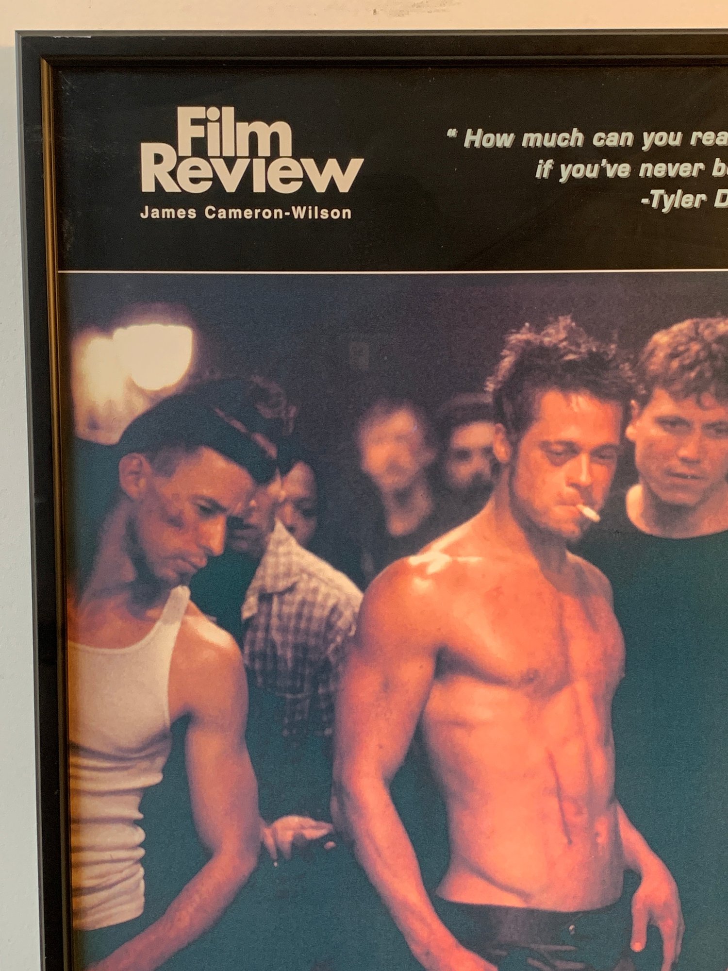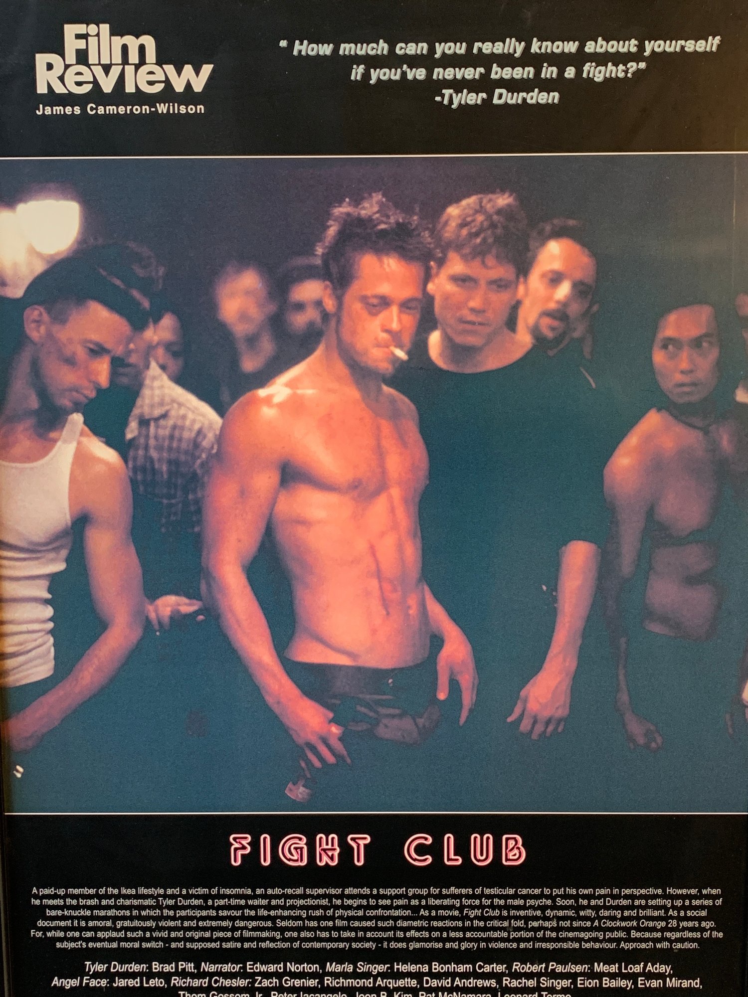 UK Film Review magazine poster featuring the iconic cast image with Tyler Durden quote and full cast/crew credits below. Black frame, no mat.