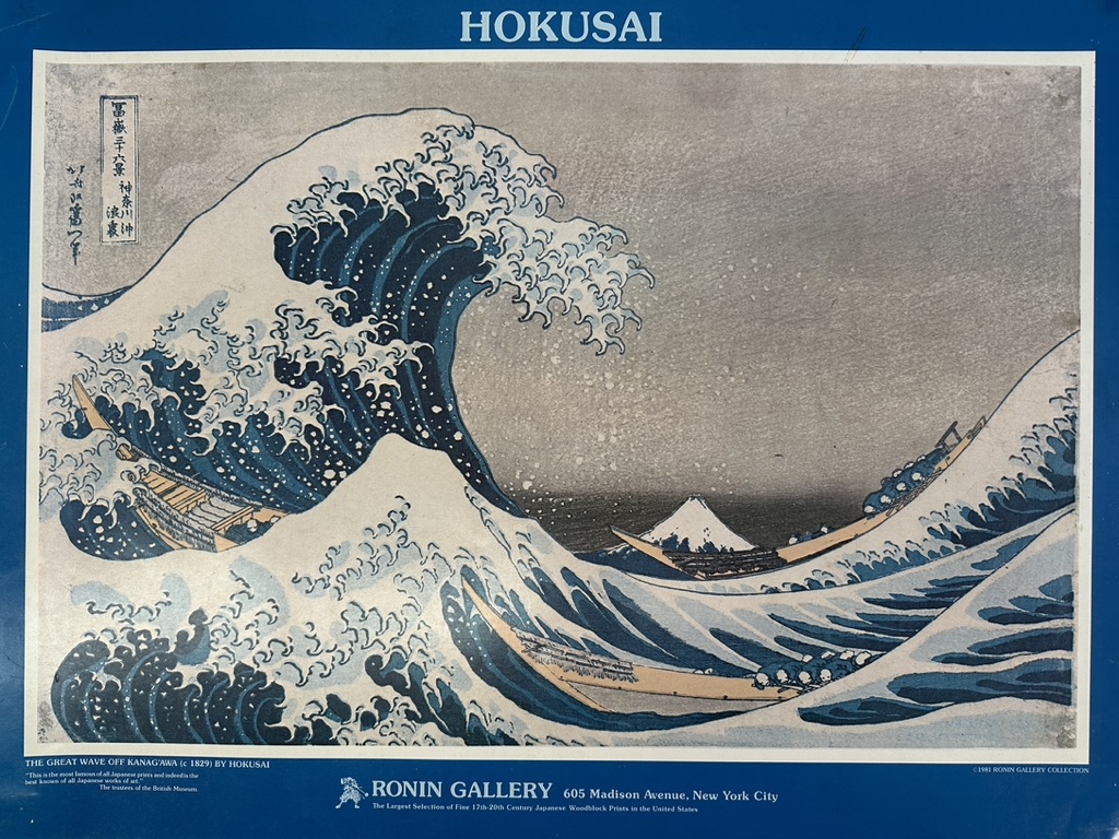 Depicting The Great Wave off Kanag'Awa by Hokusai (c 1829).