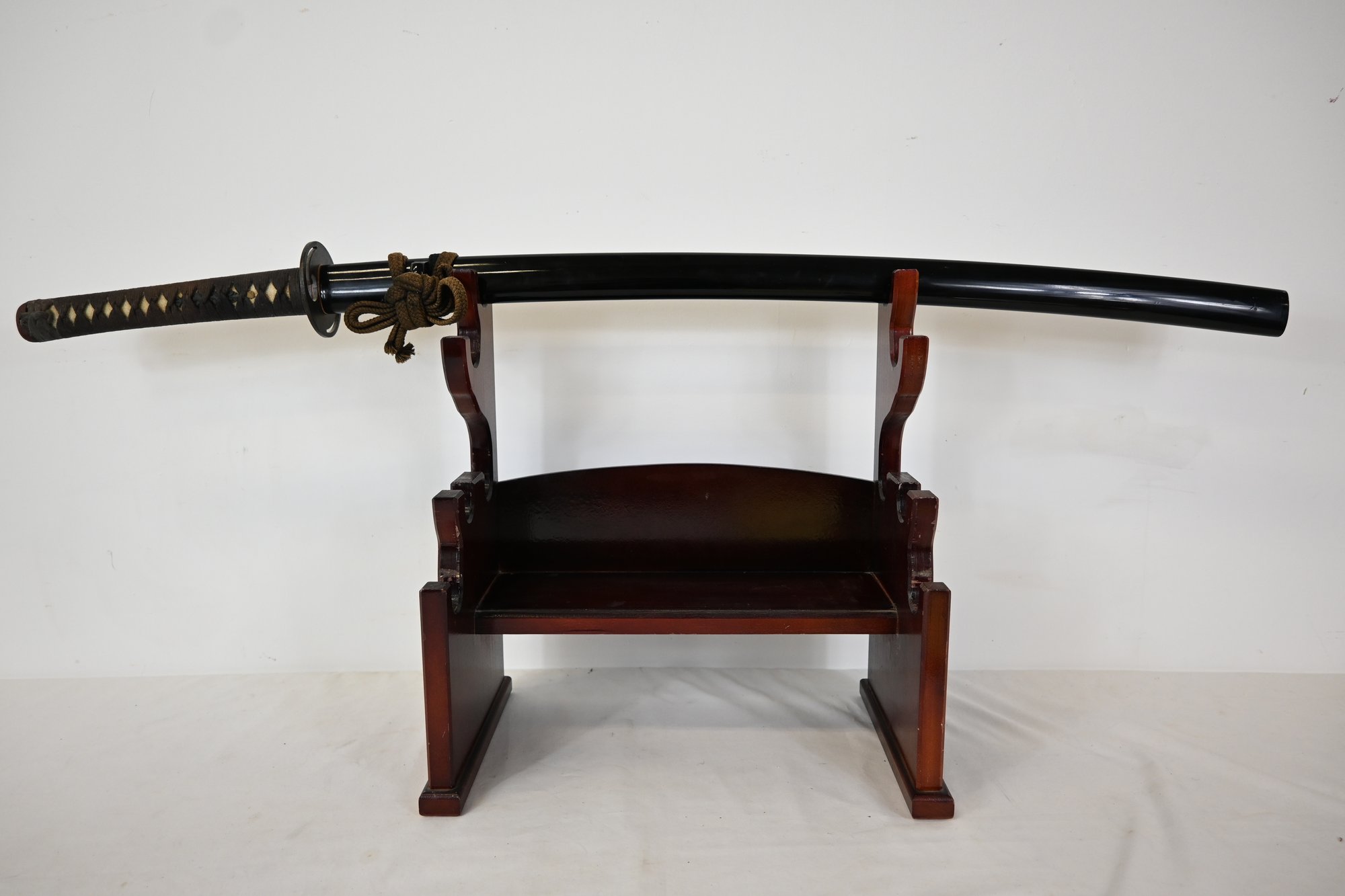Selling a vintage Iaito Japanese katana sword with an black lacquered sheath. Iron tsuba. Circa late 20th century.