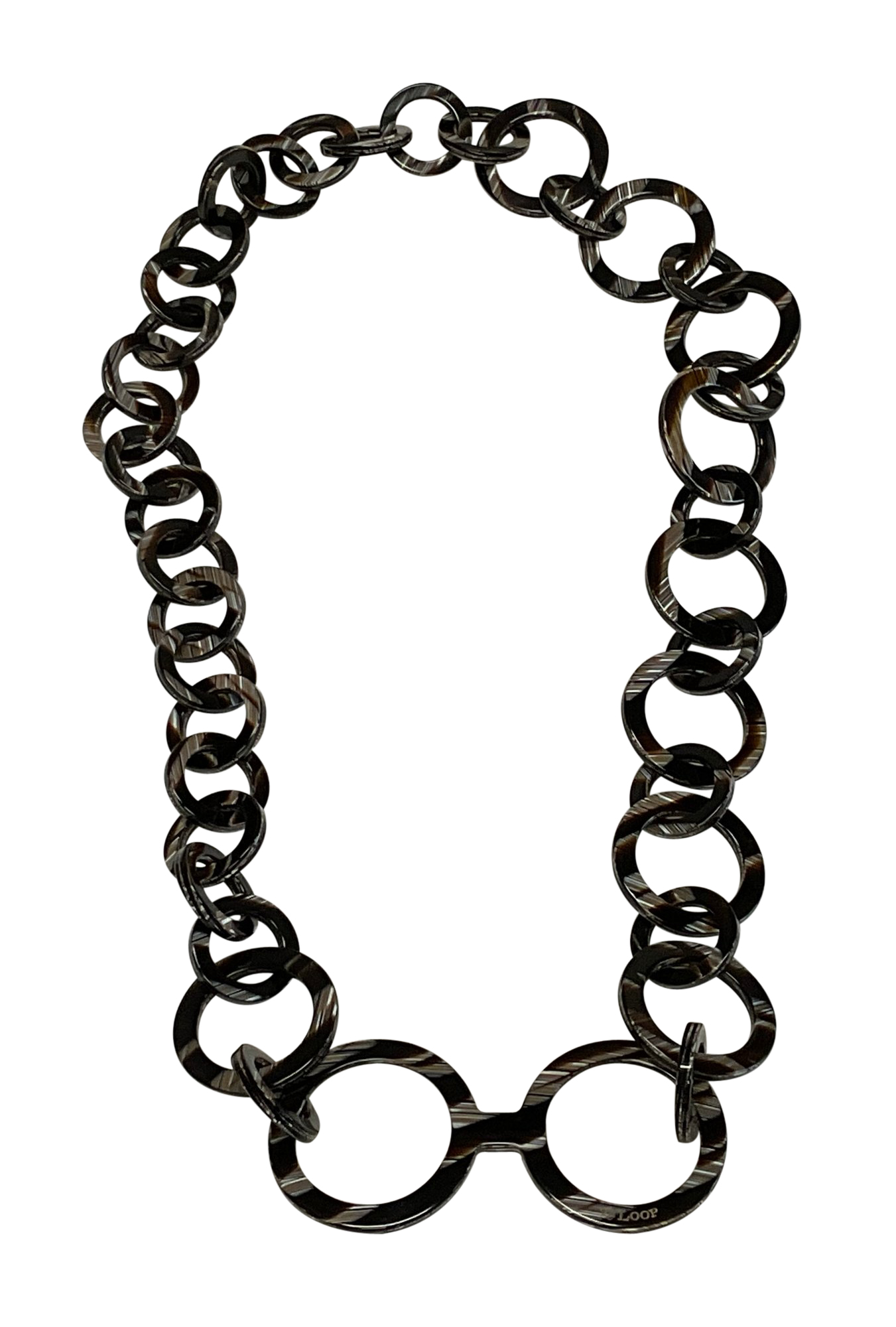 A pair of La Loop acetate readers and necklace combo with original roll up satchel.