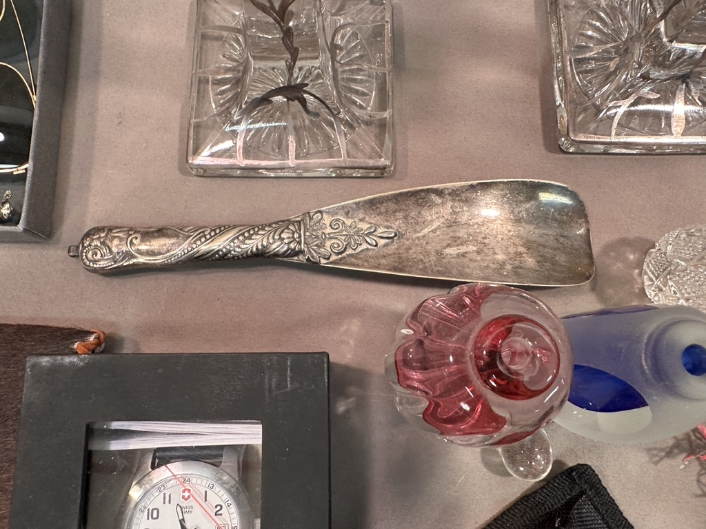 Including decanters, candlesticks , knife rests, oil lamps and other misc items