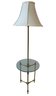 A vintage polished brass and glass side table floor lamp features tubular brass three legged tripod base design. C. 1970's.