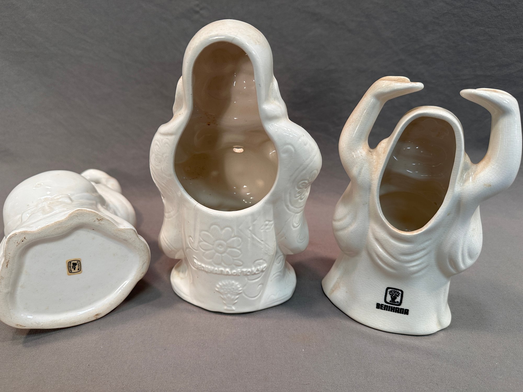 A lot of 10 benihana white ceramic mugs including mostly marked Benihana and Japan, a couple marked Mexico.