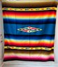 Colorful striped motif with center medallion finished with white fringe on 2 edges