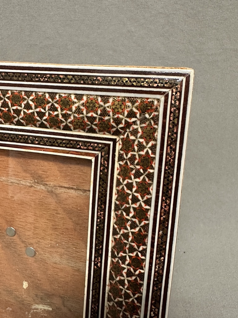 Decorative wooden picture frame with intricate inlaid micro mosaic design
