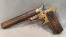 Condition: shows signs of age with a missing trigger, minor surface rust on the barrel, and a cracked wood handle.