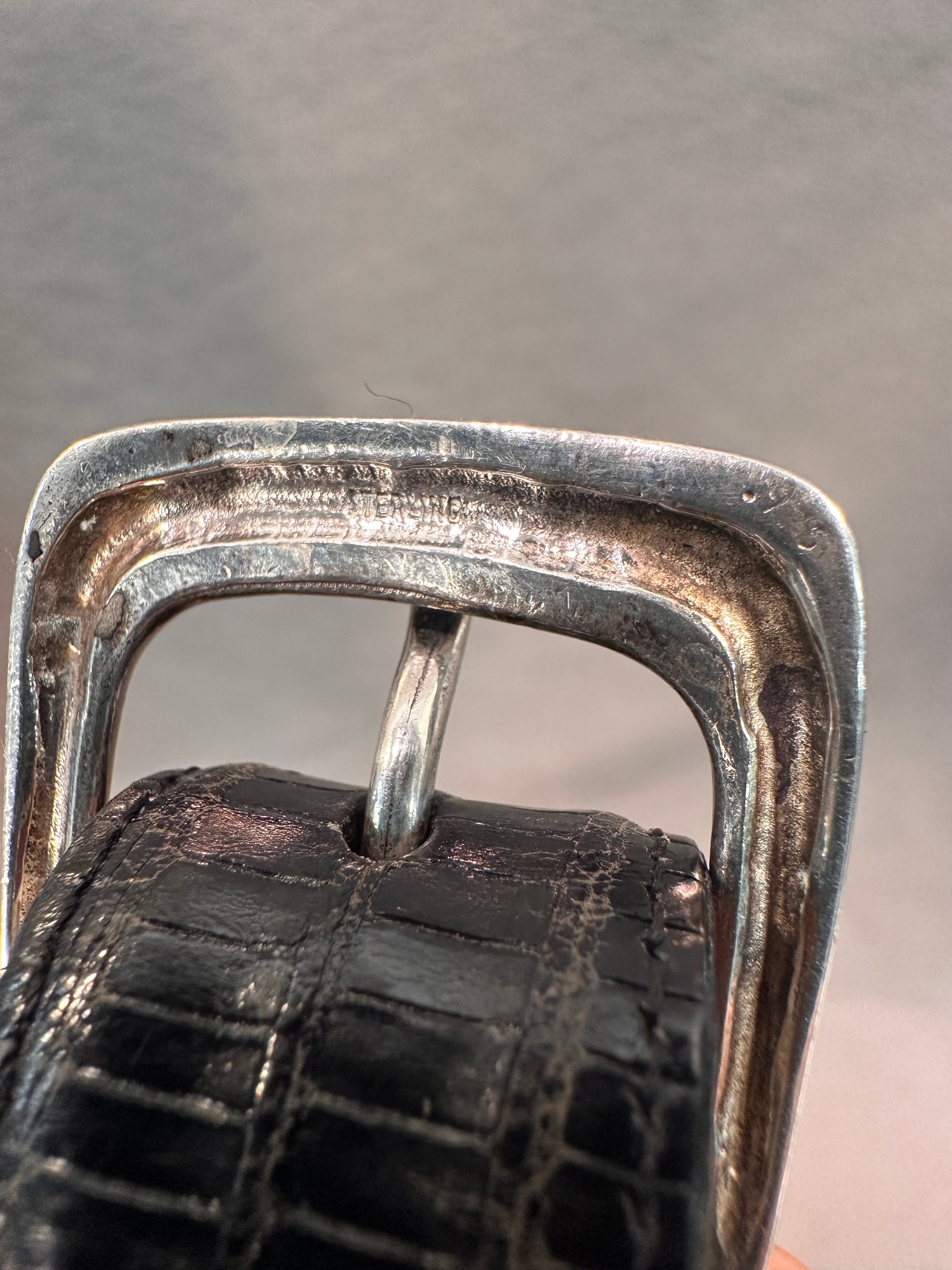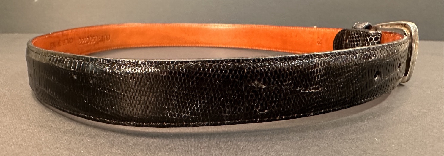 Ralph Lauren Lizard belt with sterling silver buckle and silver end piece. Marked Sterling.