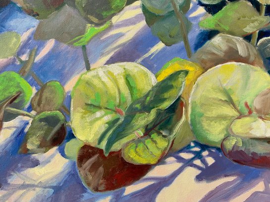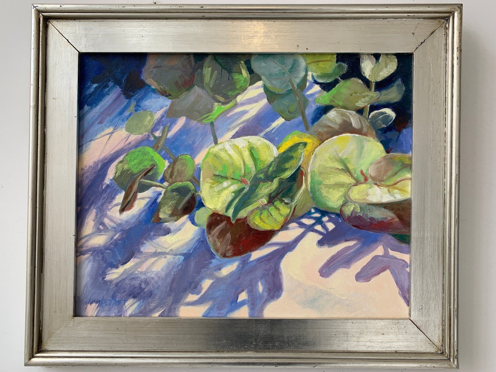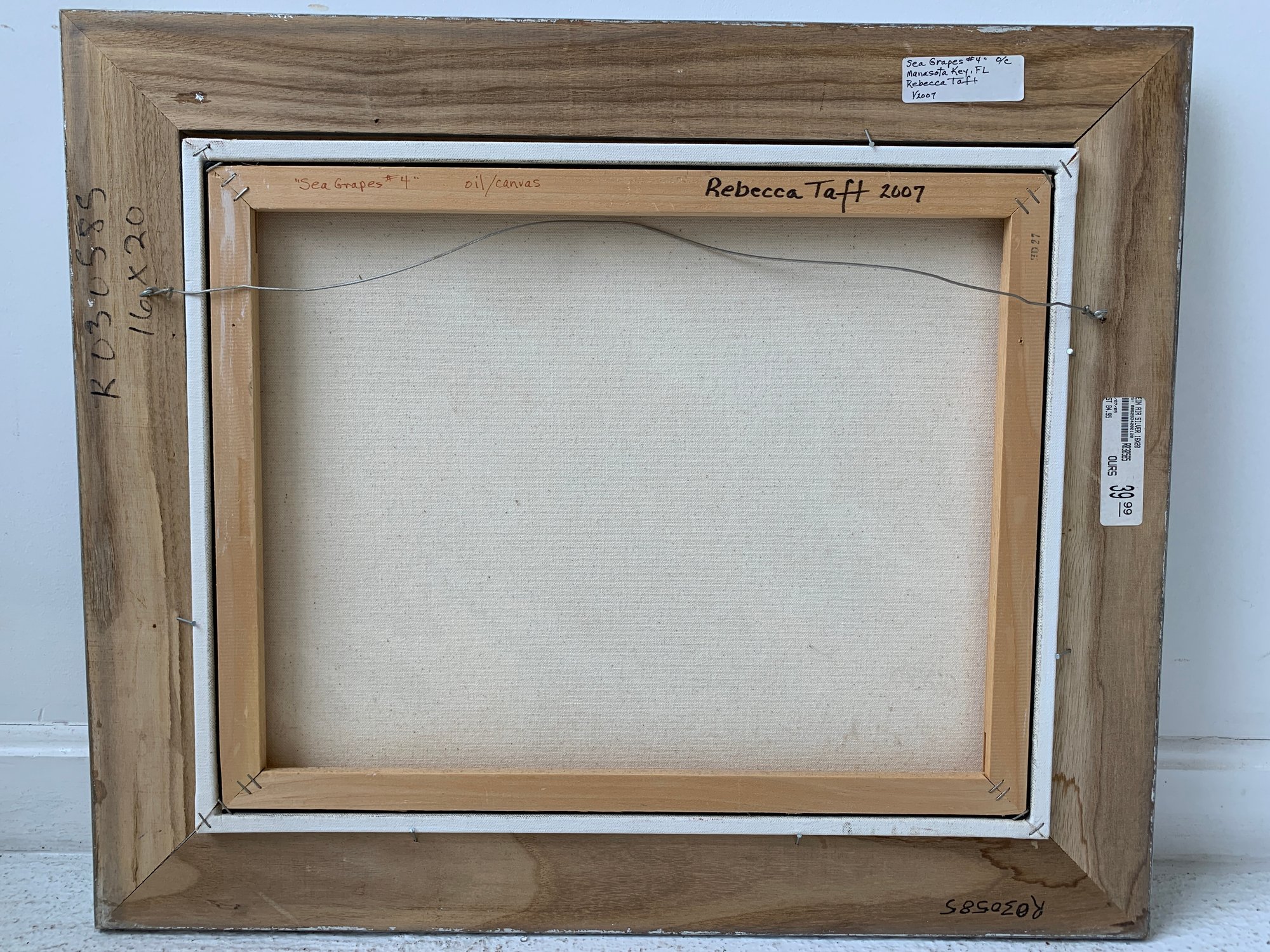 Rebecca Taft Oil Painting On Canvas Titled, "Sea Grapes #4". In metallic painted wooden frame. Dated 2007.