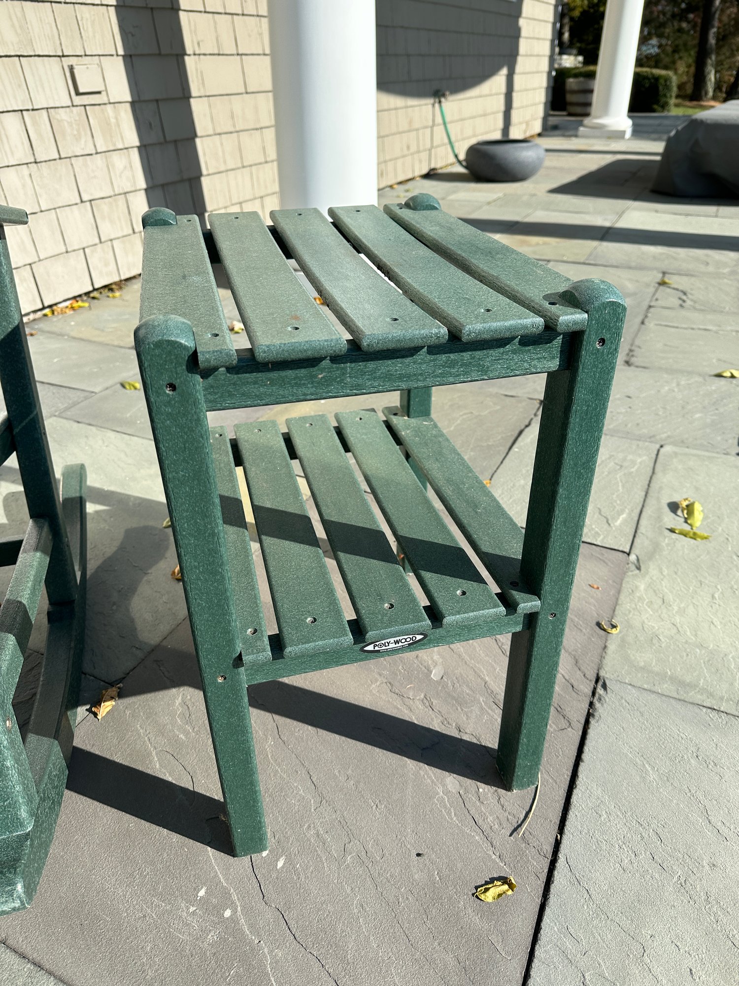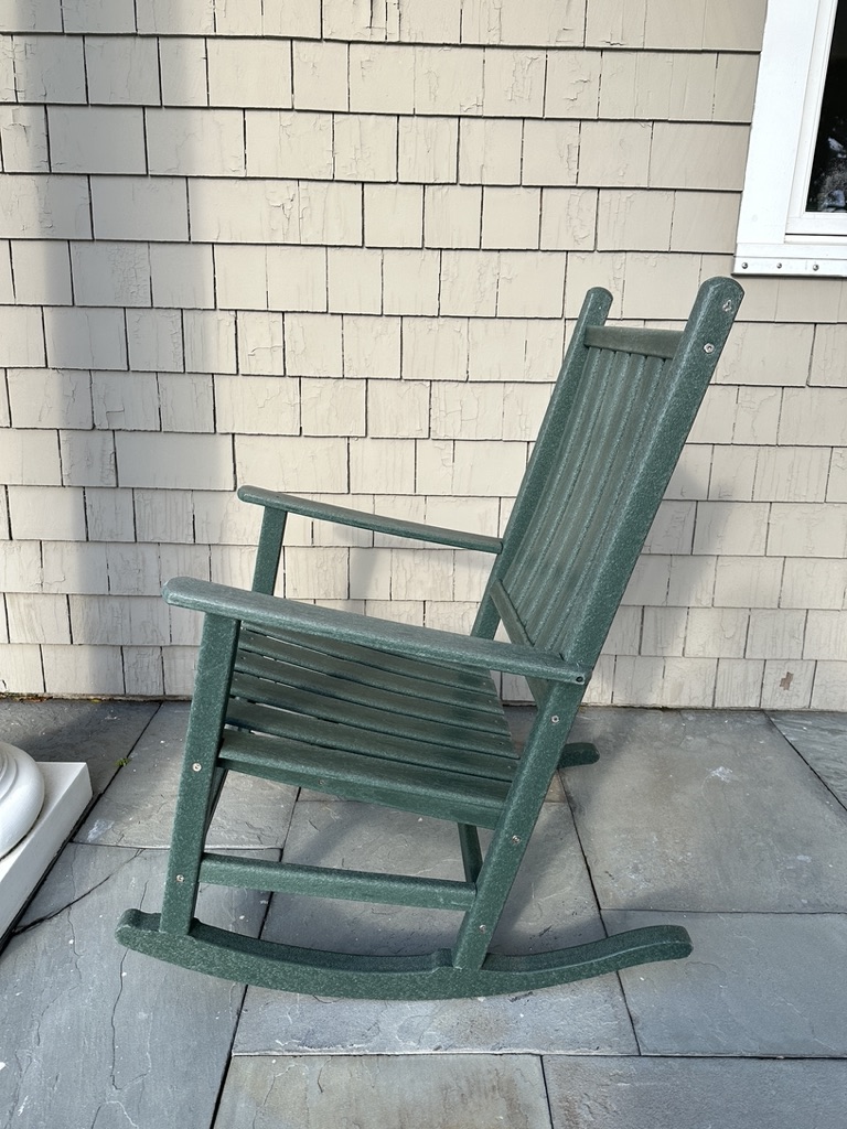 Showing a slat seat and back. Labeled on the back Polywood Co.
