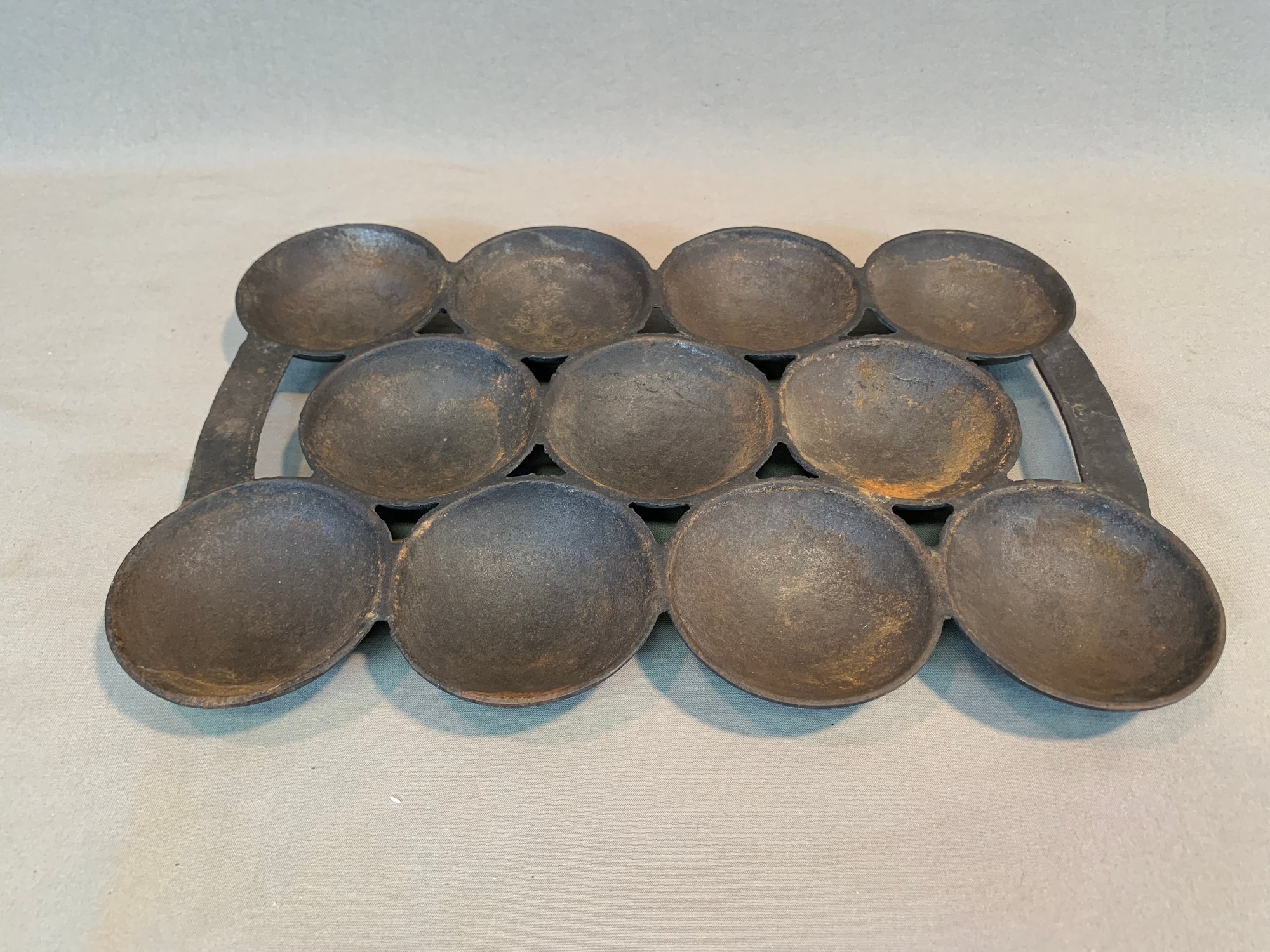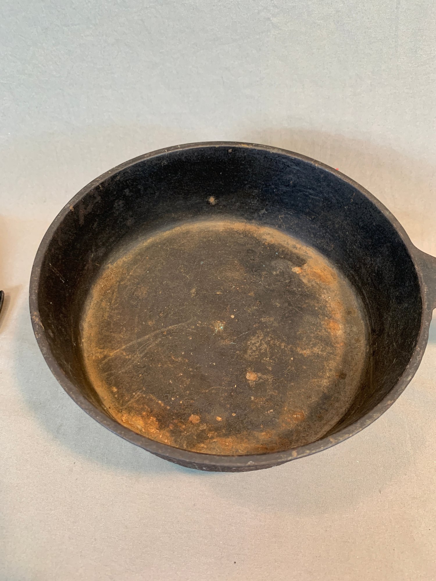 Condition: Good overall; surface rust and seasoning consistent with age and use, no cracks or breaks. Please refer to photographs for details.