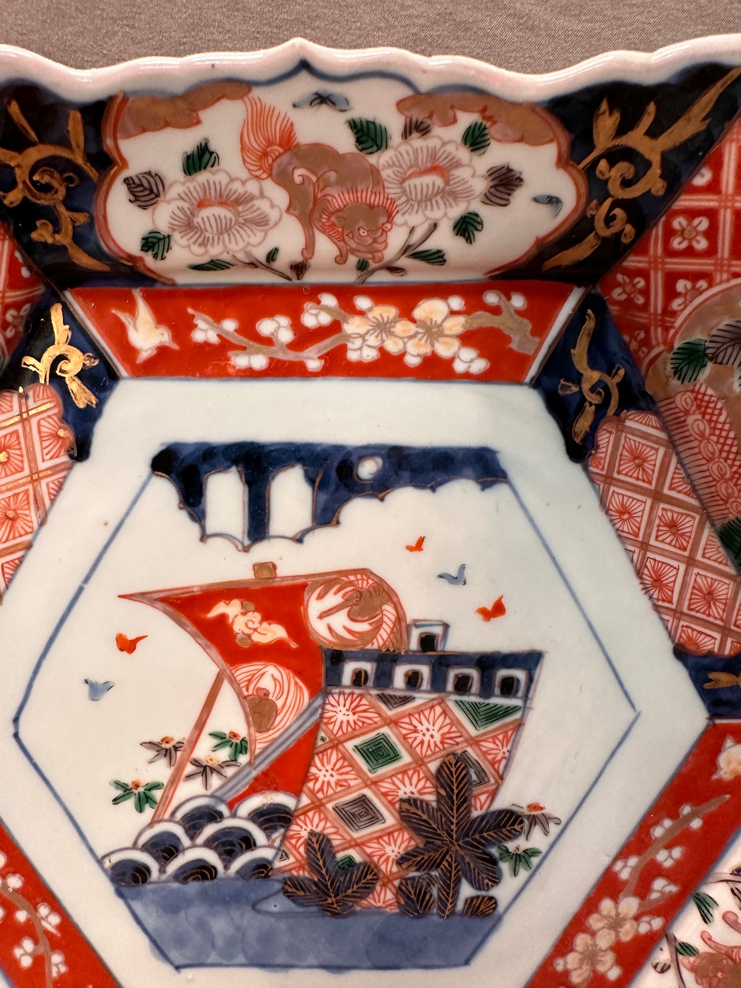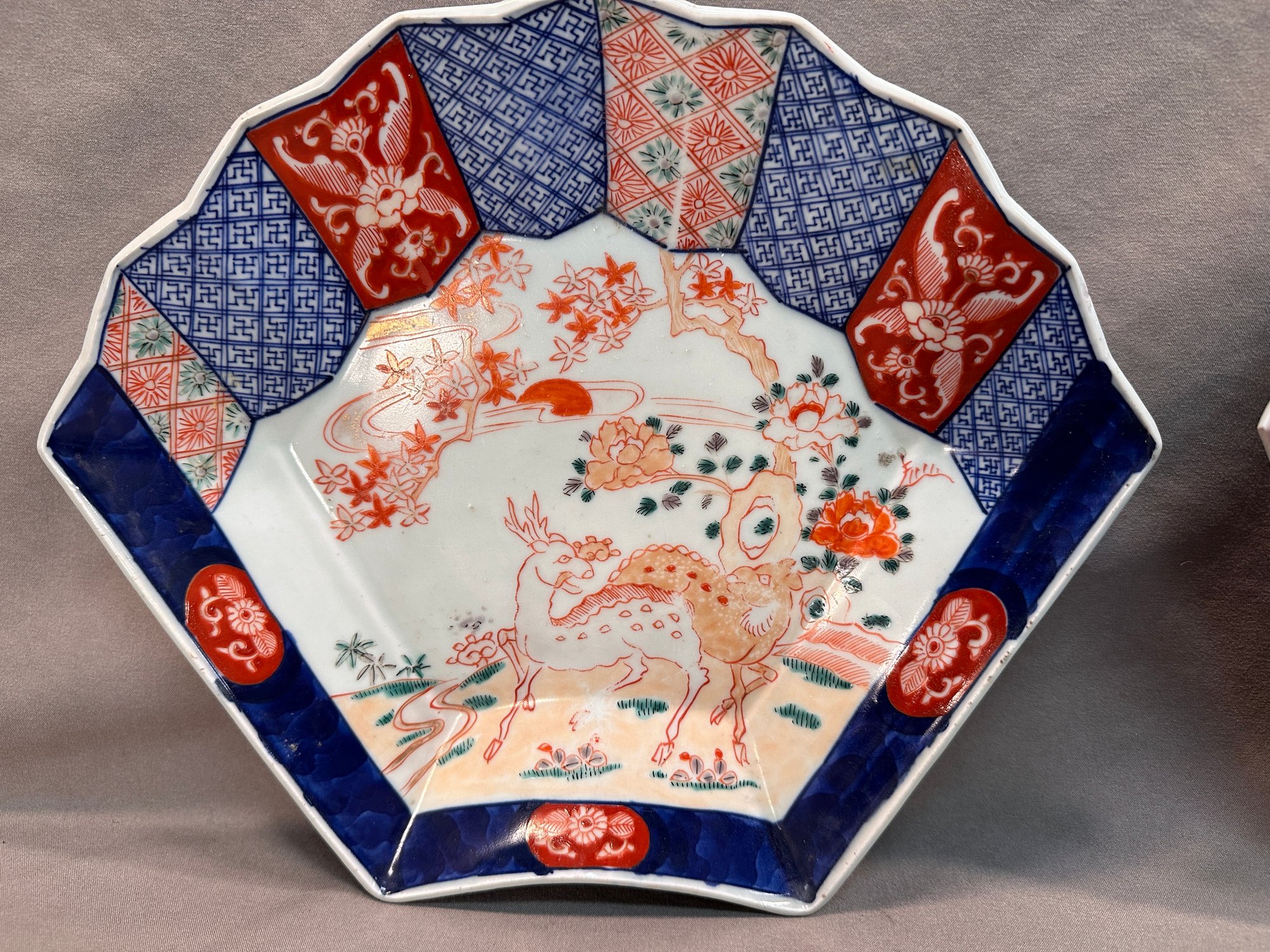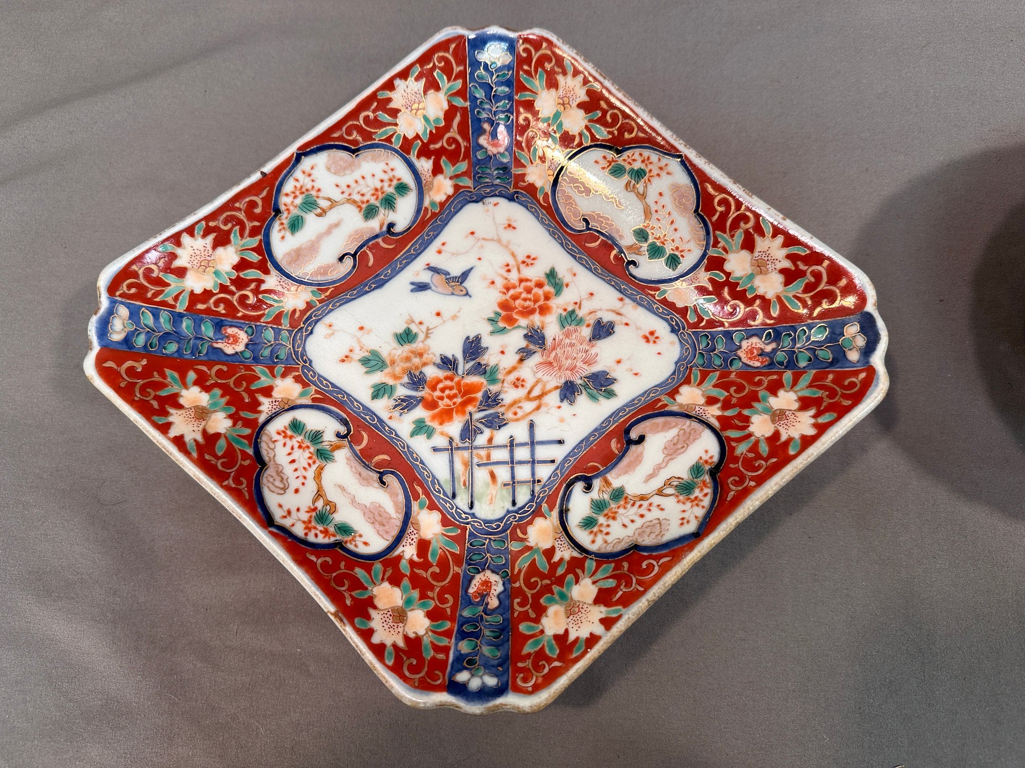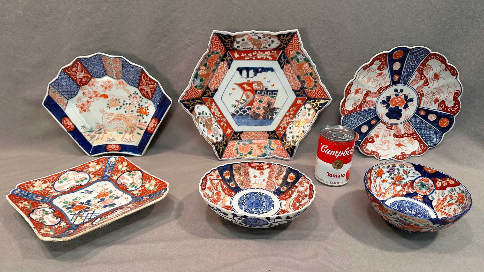 A lot of 6 antique Japanese hand painted Imari tableware with various motifs including :