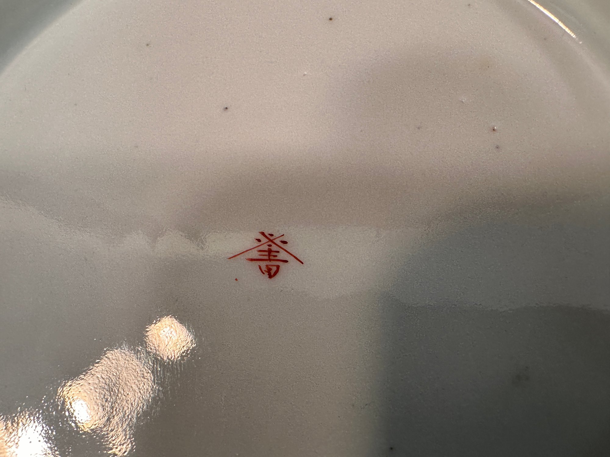 Condition: Scallop plate shows minor nicks on back with a minor hairline crack, fan plate shows 1 minor nick on back, hexagon plate shows 1 minor nick on back.