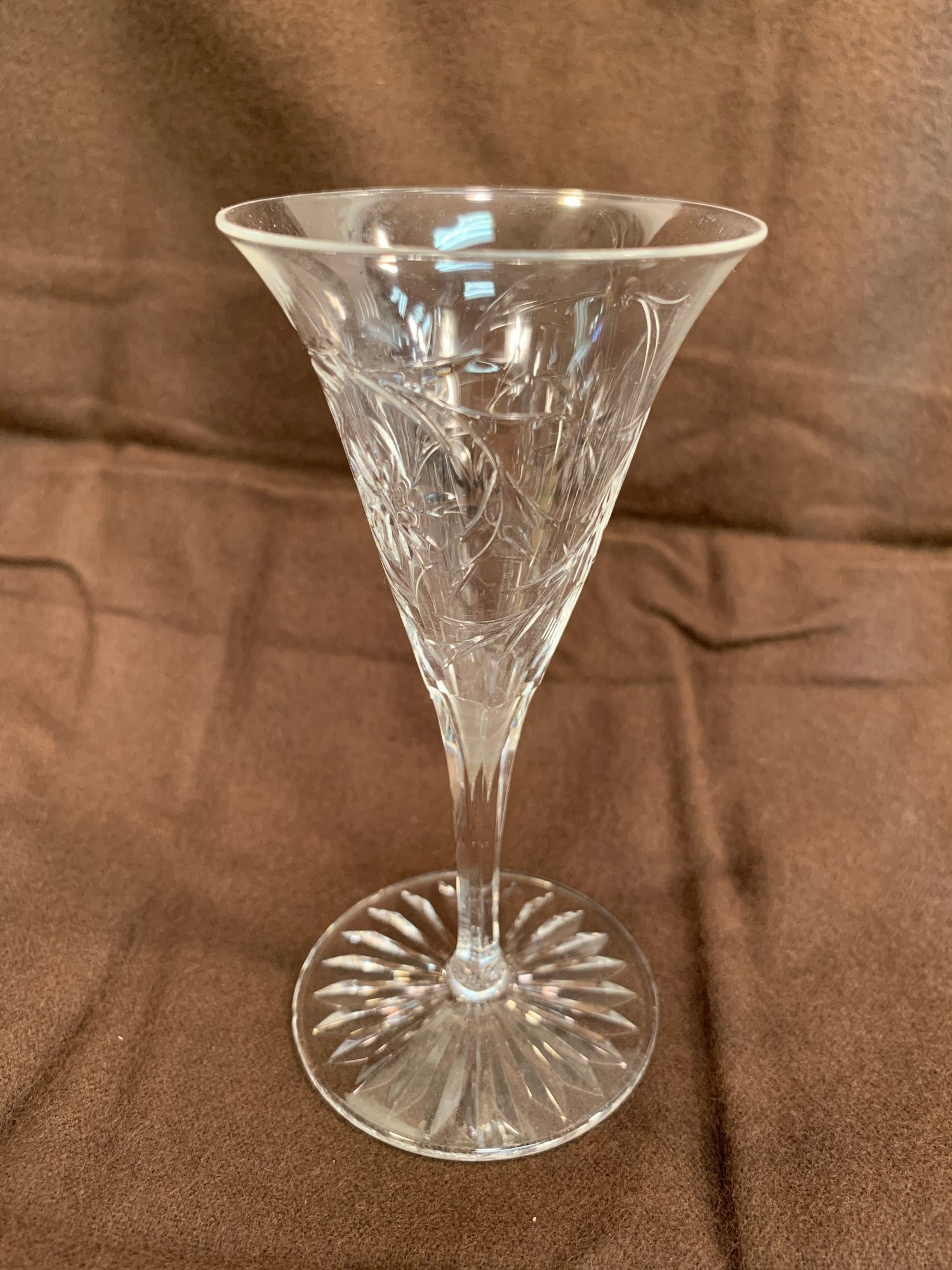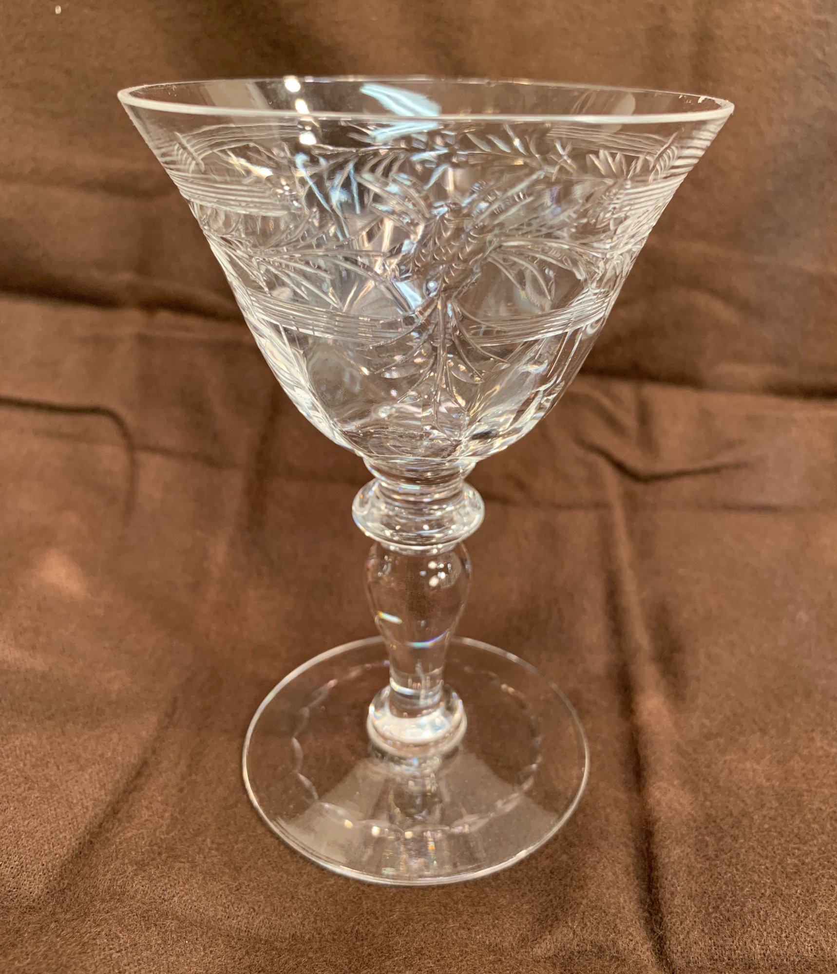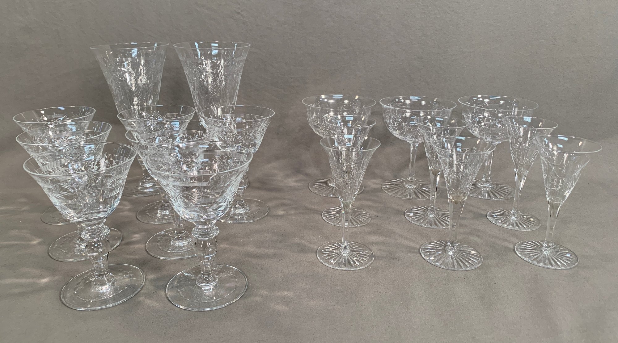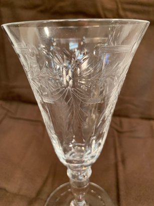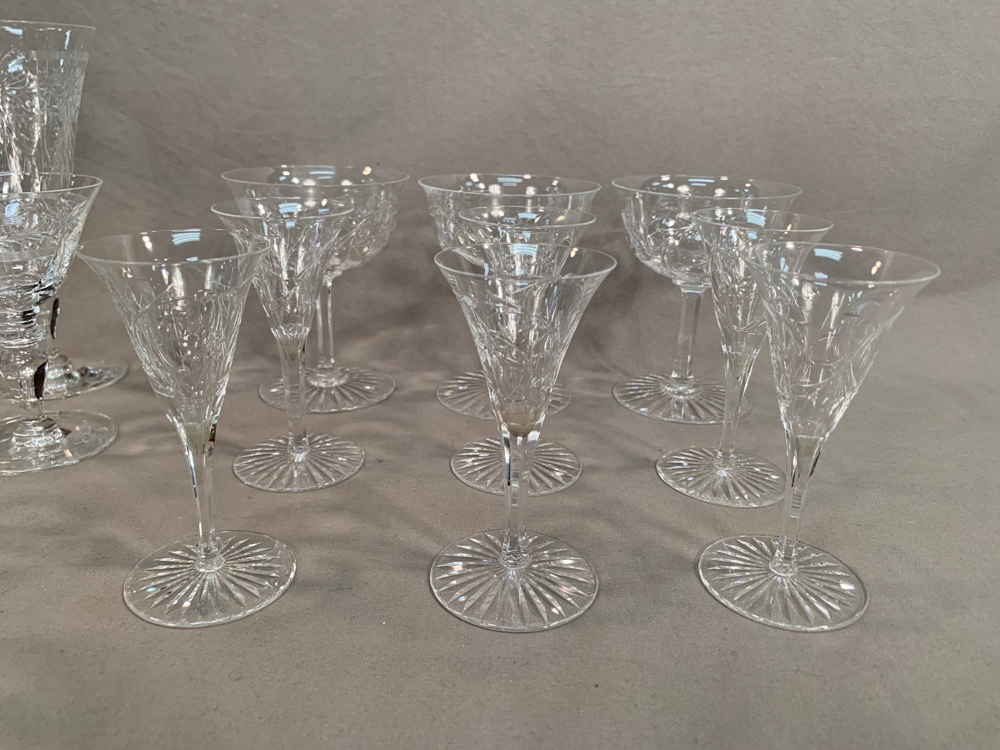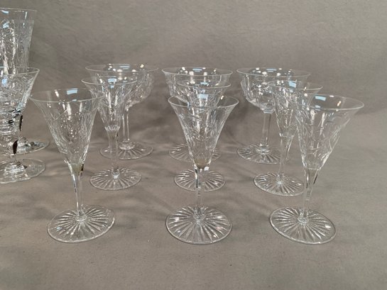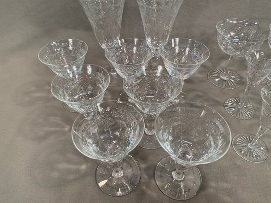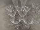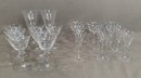 9 Pieces of Hawkes crystal, 2 tall glasses (7" H), 7 short glasses (4.5"H), 3 wider unmarked glasses (4.5"H), 6 small glasses (4.5"H