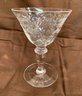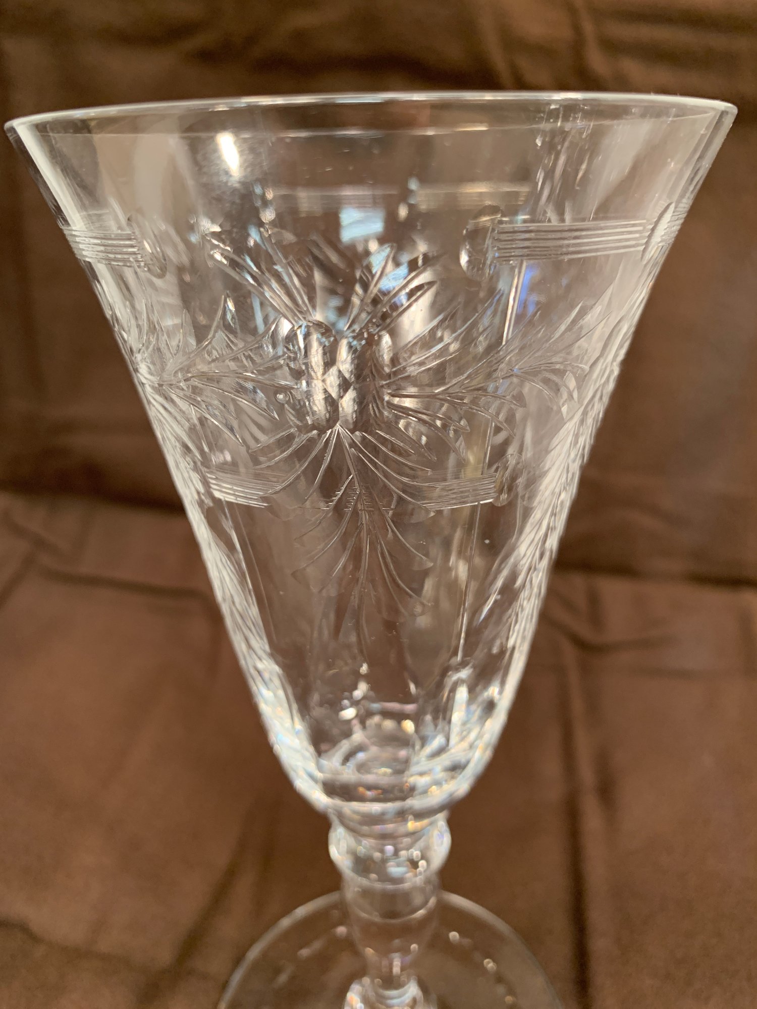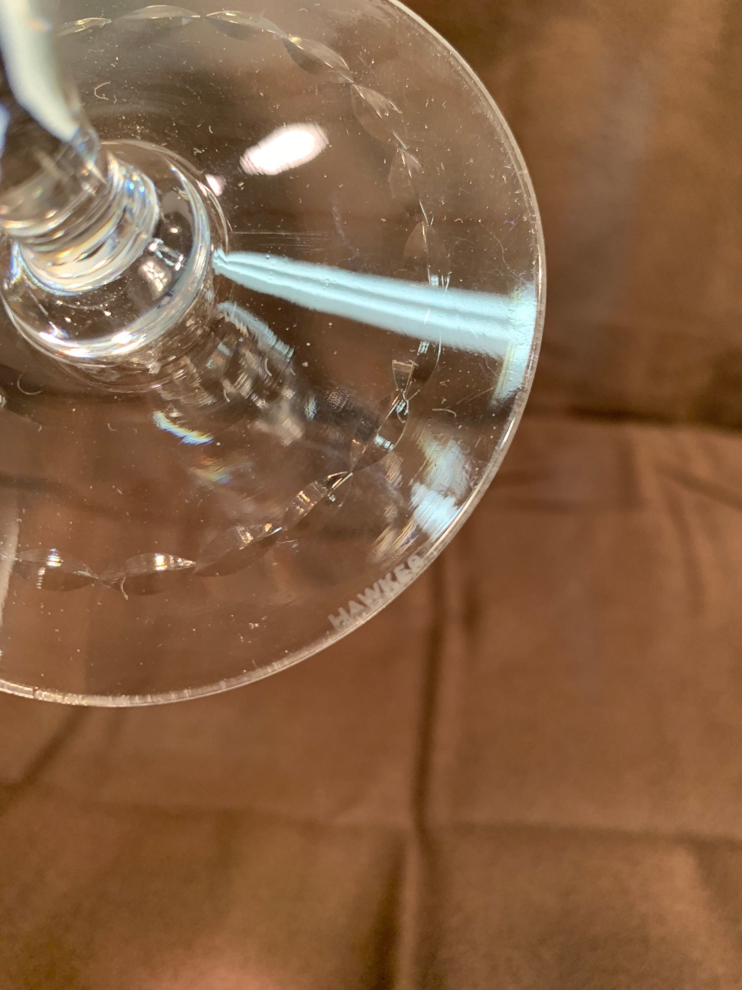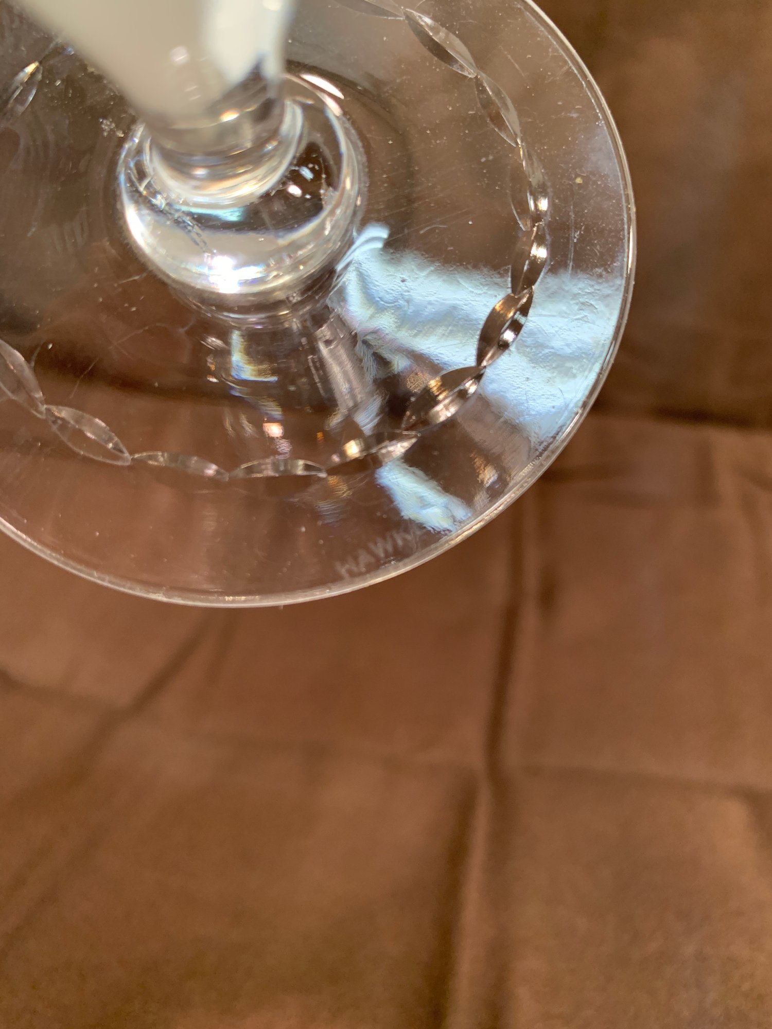 Condition: One tall Hawkes glass with rim knick, 1 wider unmarked glass has one rim knick