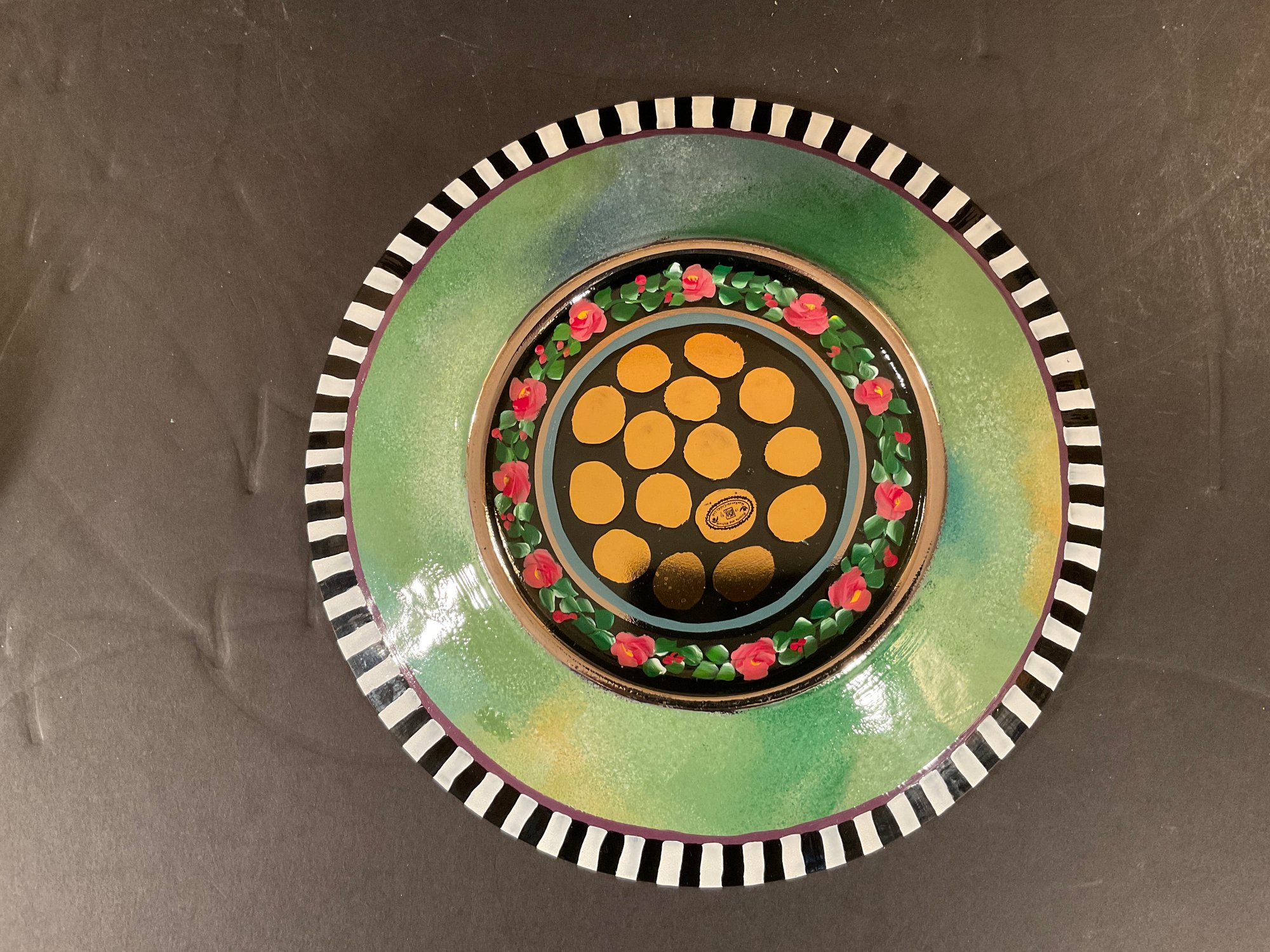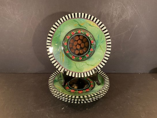 Hard to find dinner plates in the small circus pattern all in excellent condition. Hand painted and signed on bottom.