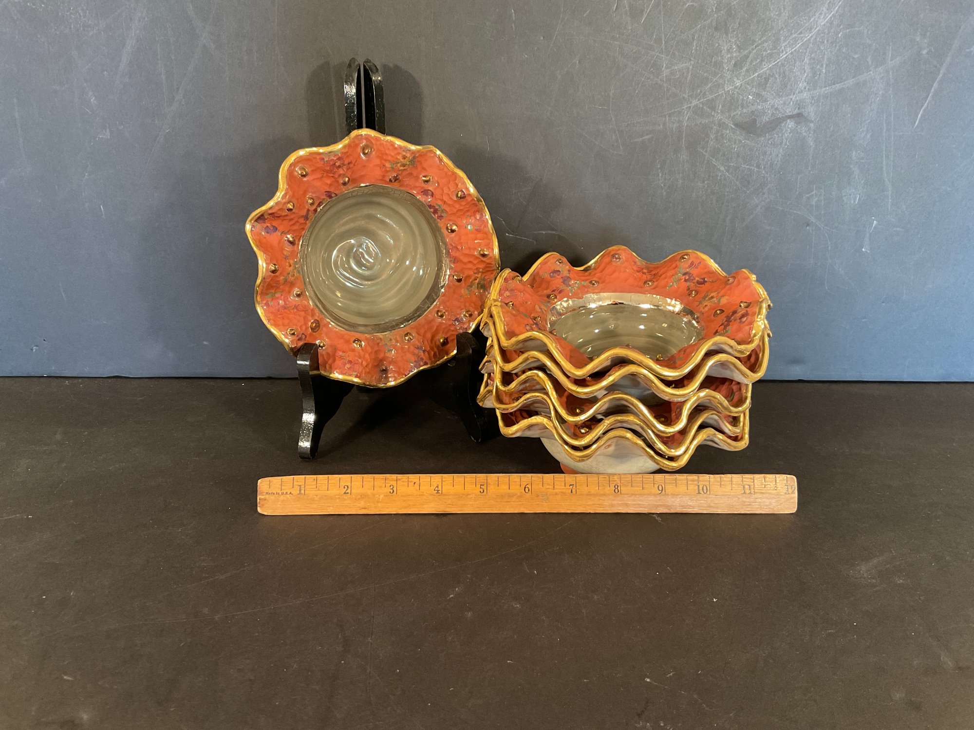 Hand paint decorated ceramic bowls. All bowls have back stamp.