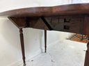 Notes: one leaf support missing, minor piece of veneer loss under drawer right side, top is clean with no cracks, no other obvious damage to note.