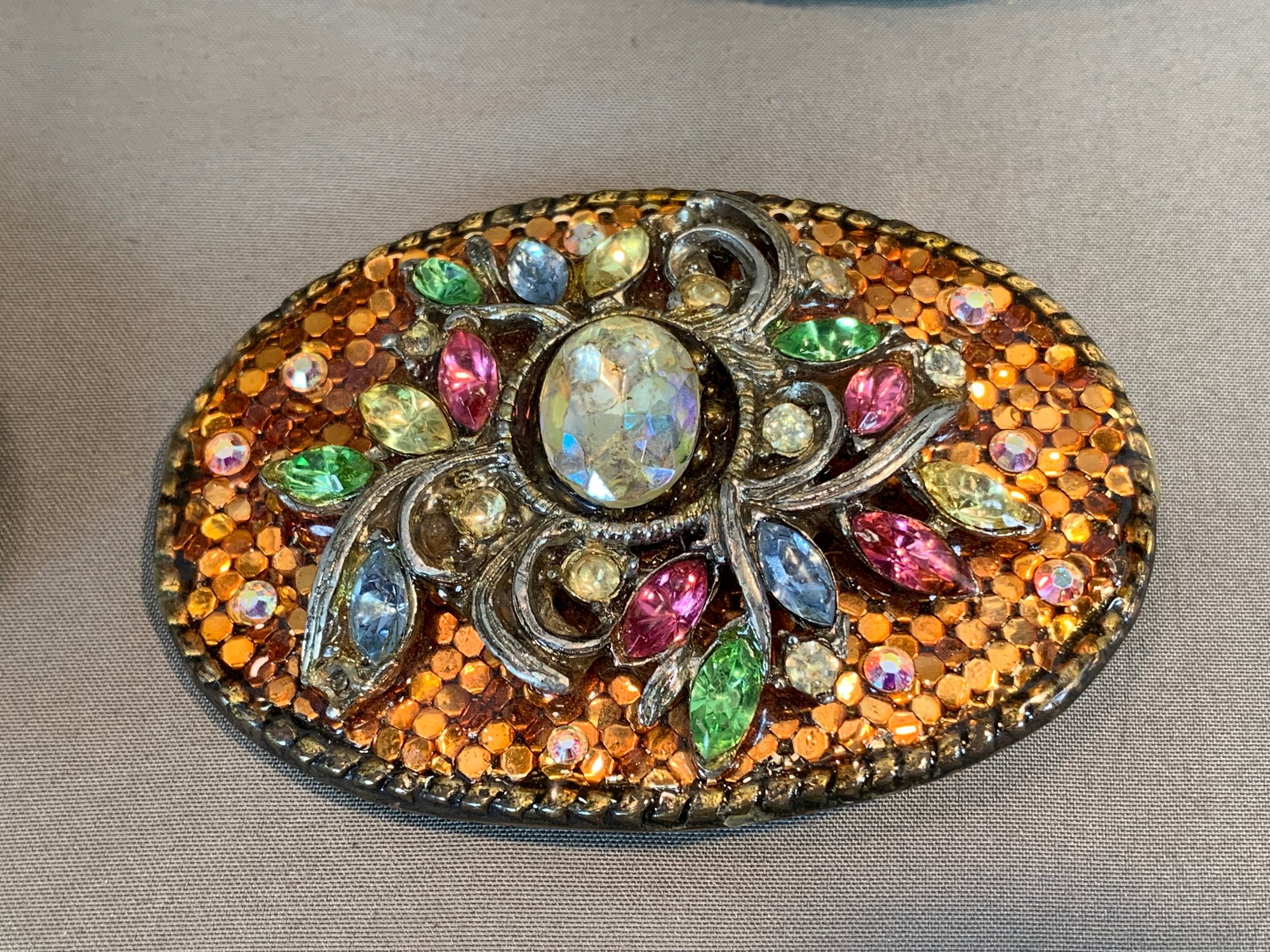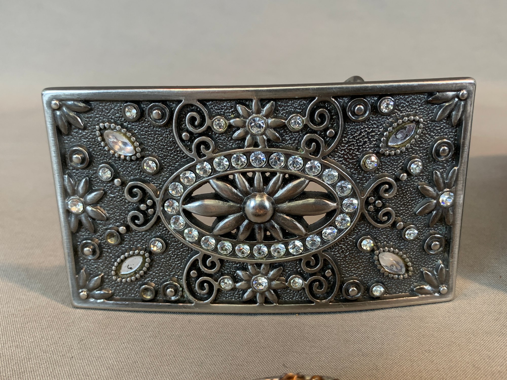 Condition: Good, some rhinestones missing to the 2 center buckles, please refer to photographs.