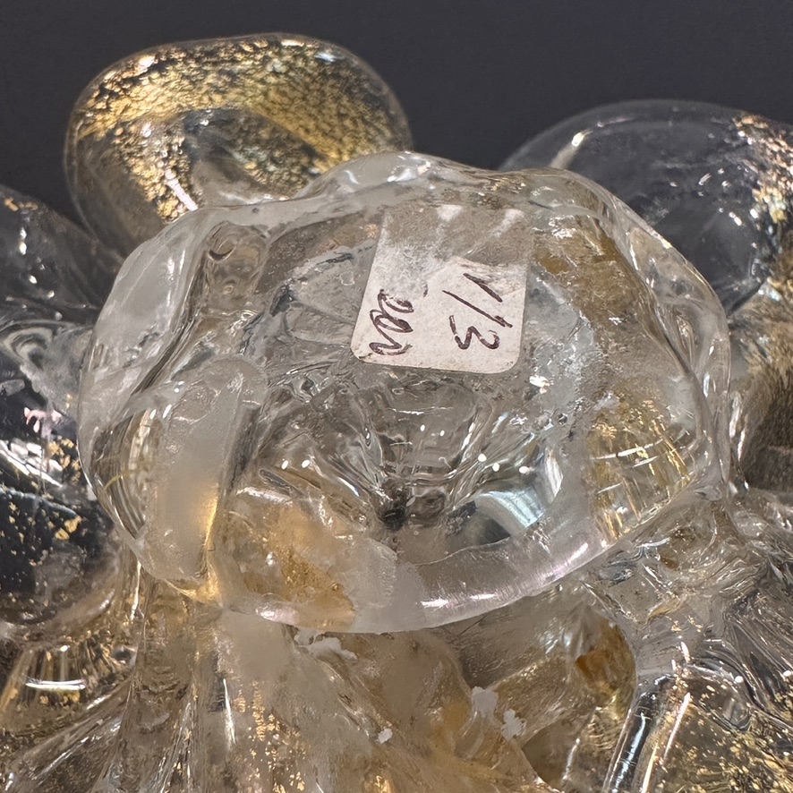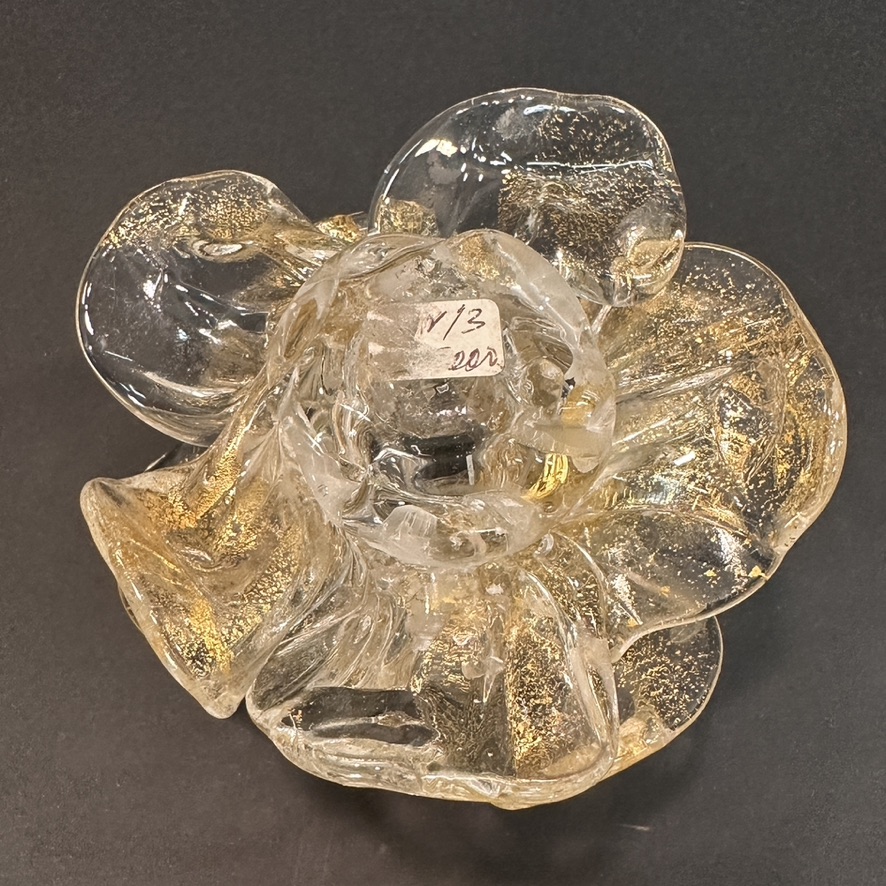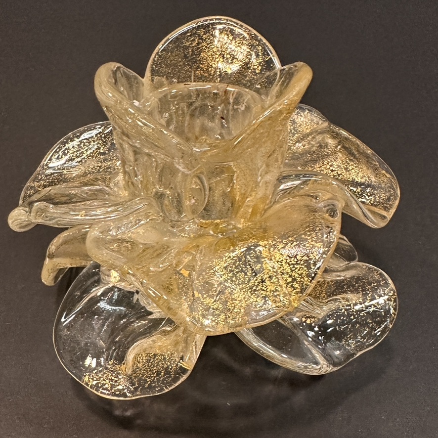 Murano daffodil form candle holder with gold accents .