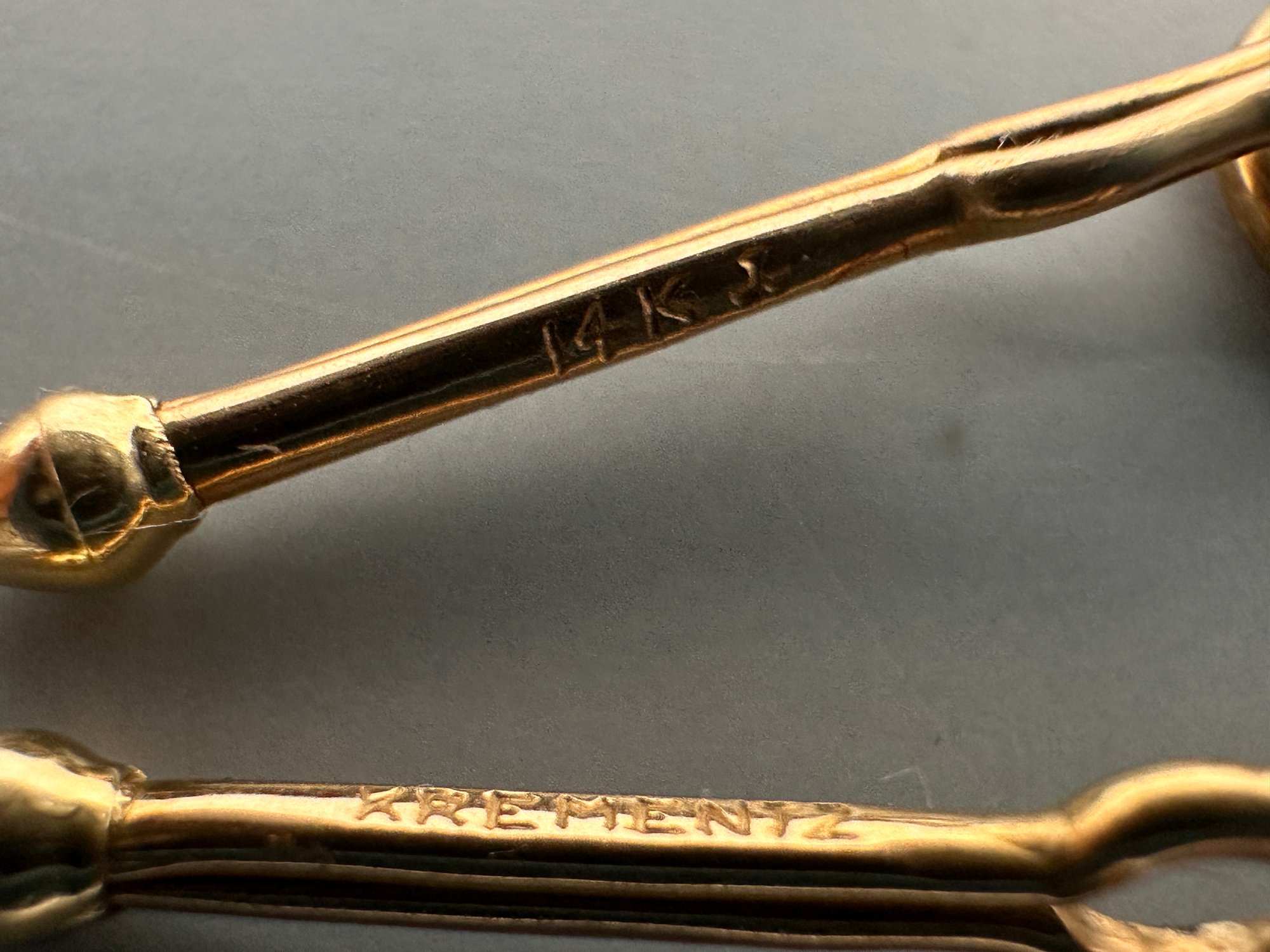 Including two pairs of 14k yellow gold and mother of pearl cufflinks. Both marked, one marked Krementz as well. Both pairs about 1" length each.