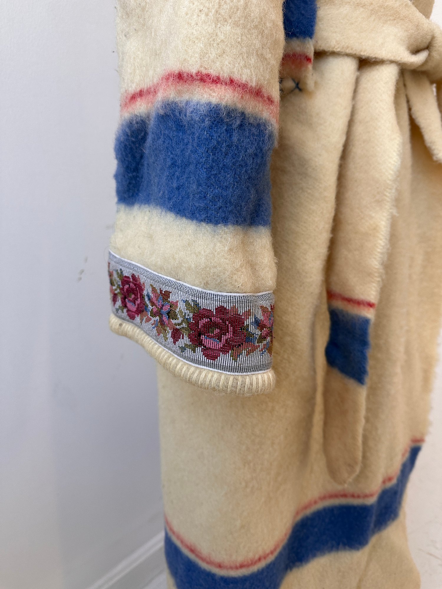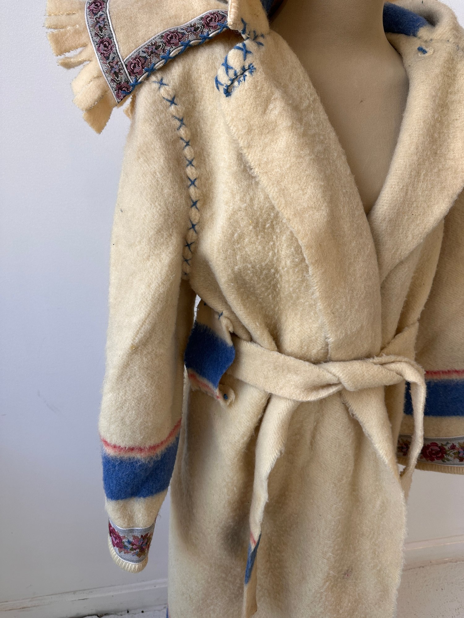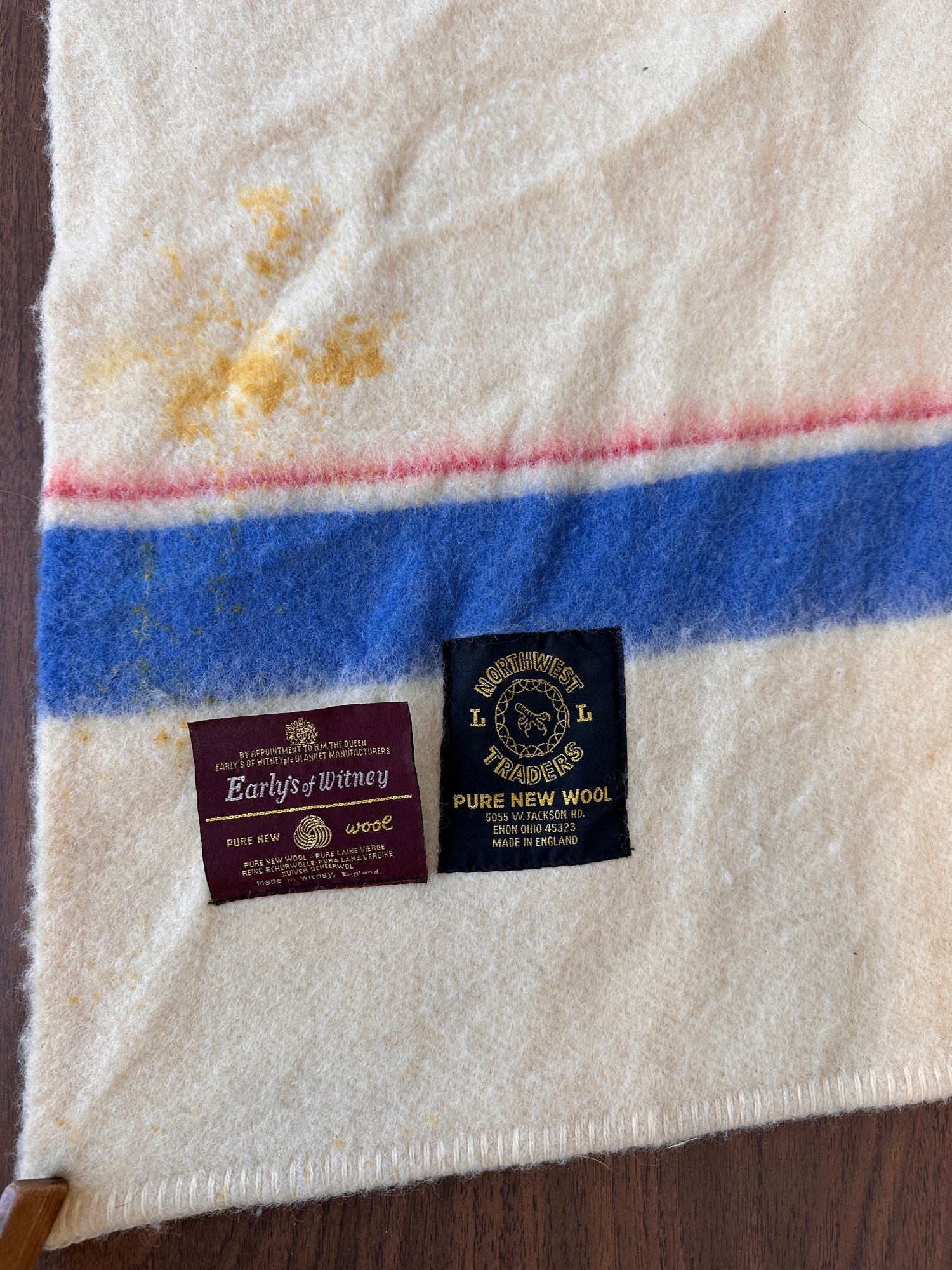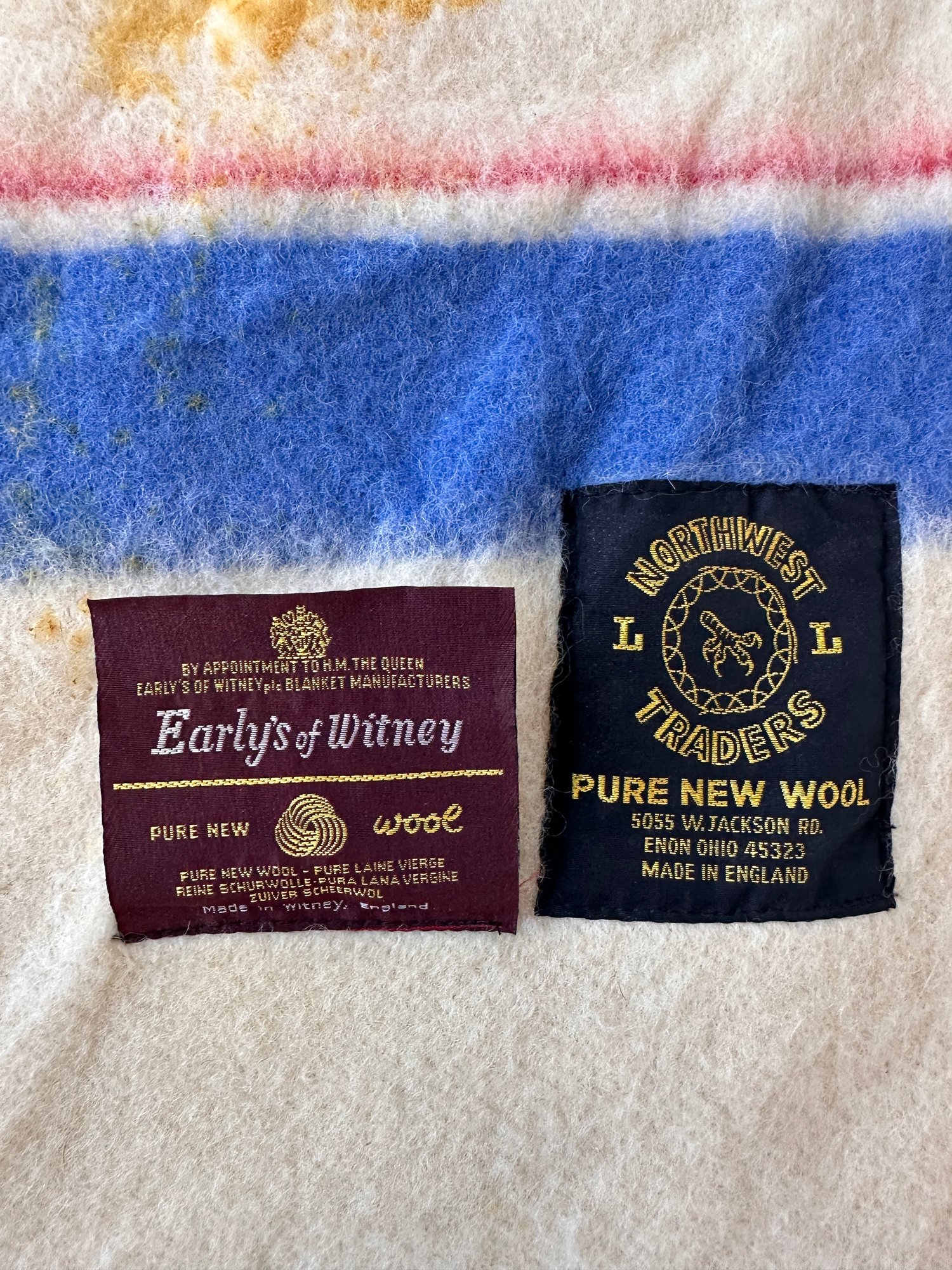 A vintage Early's of Whitney Northwest Traders wool capote blanket coat with a pointed hood. Showing original labels. C. 1970's. Made in England.