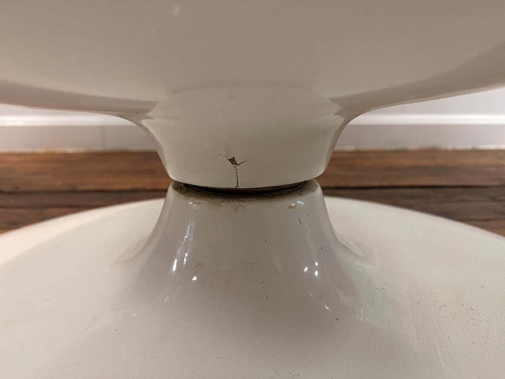 Condition: 1" split where seat joins pedestal, minor split in chair frame at approx. 6 o'clock, please refer to photographs.