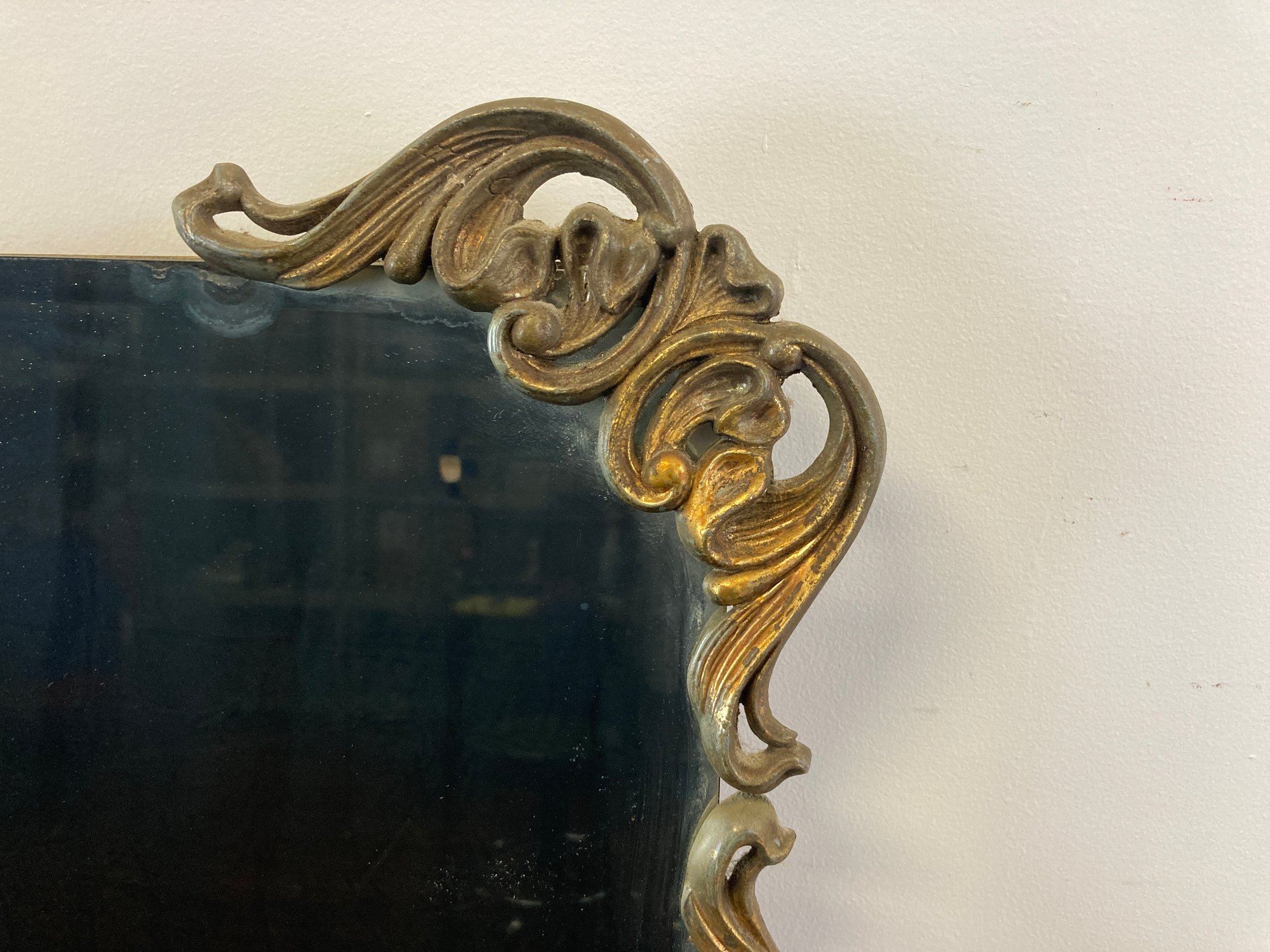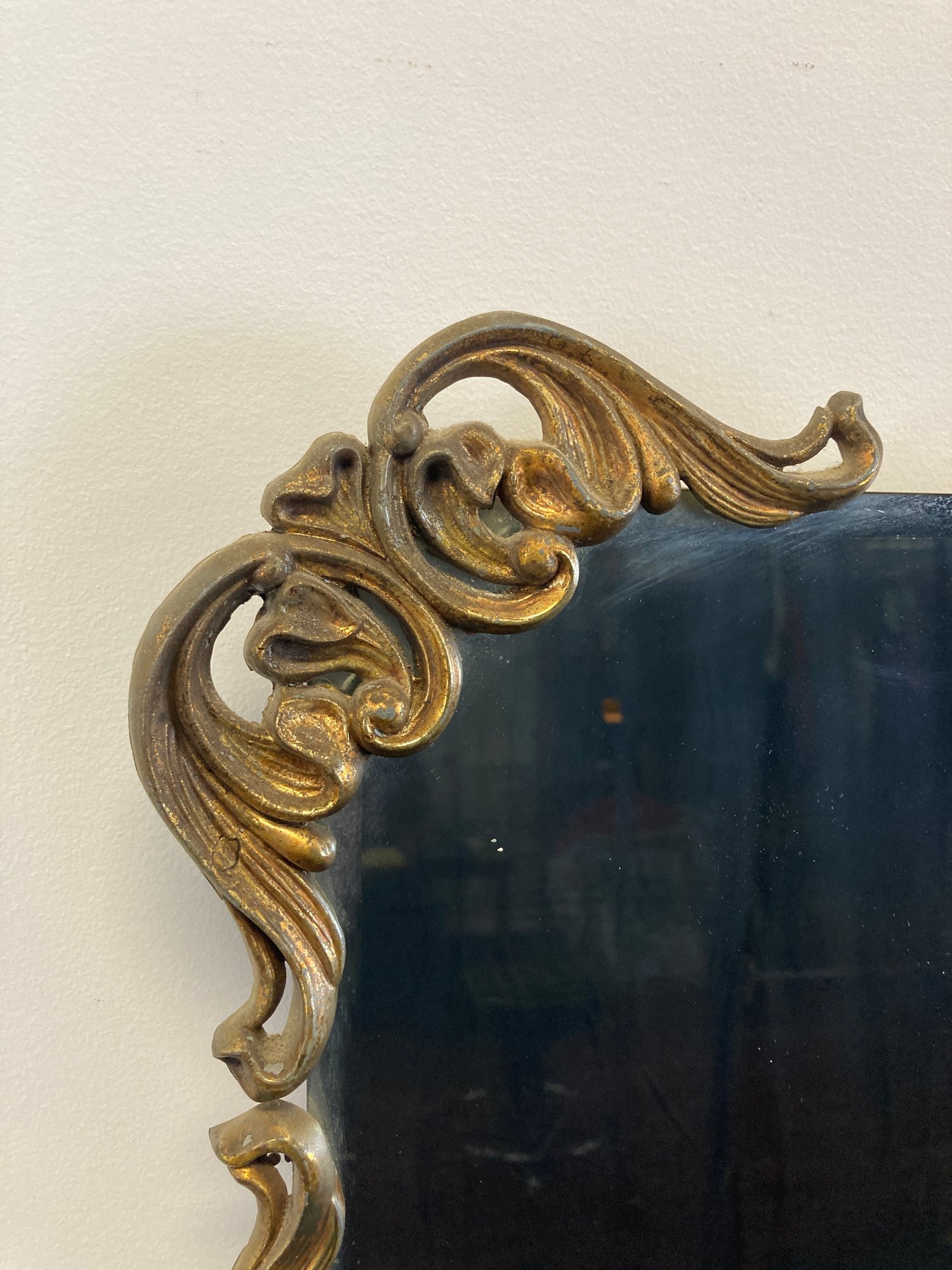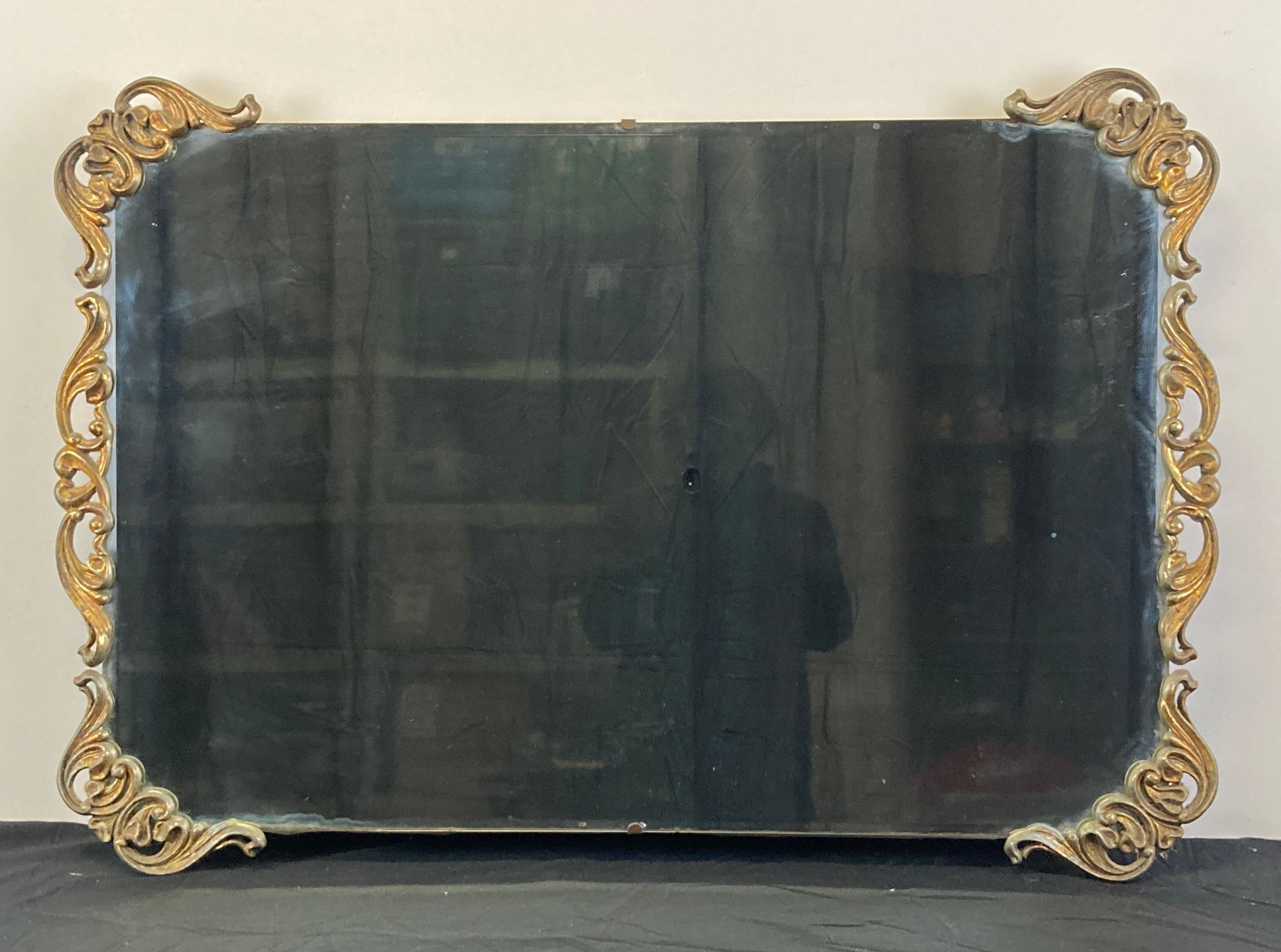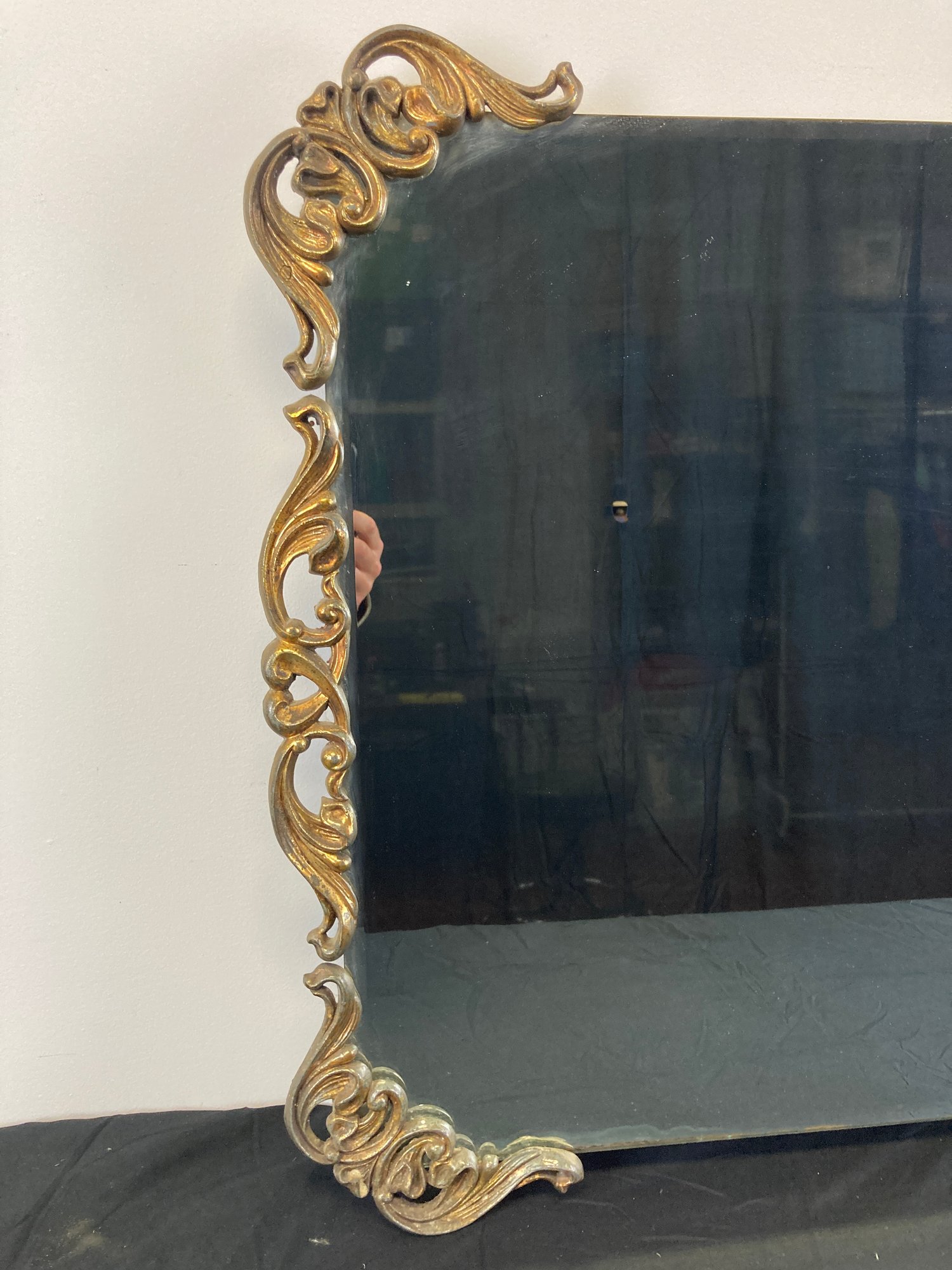 Selling a vintage French Rococo style beveled glass mirror with brass plated metal decorations. Circa 1940s-1950s. Can be hung vertical or horizontal.