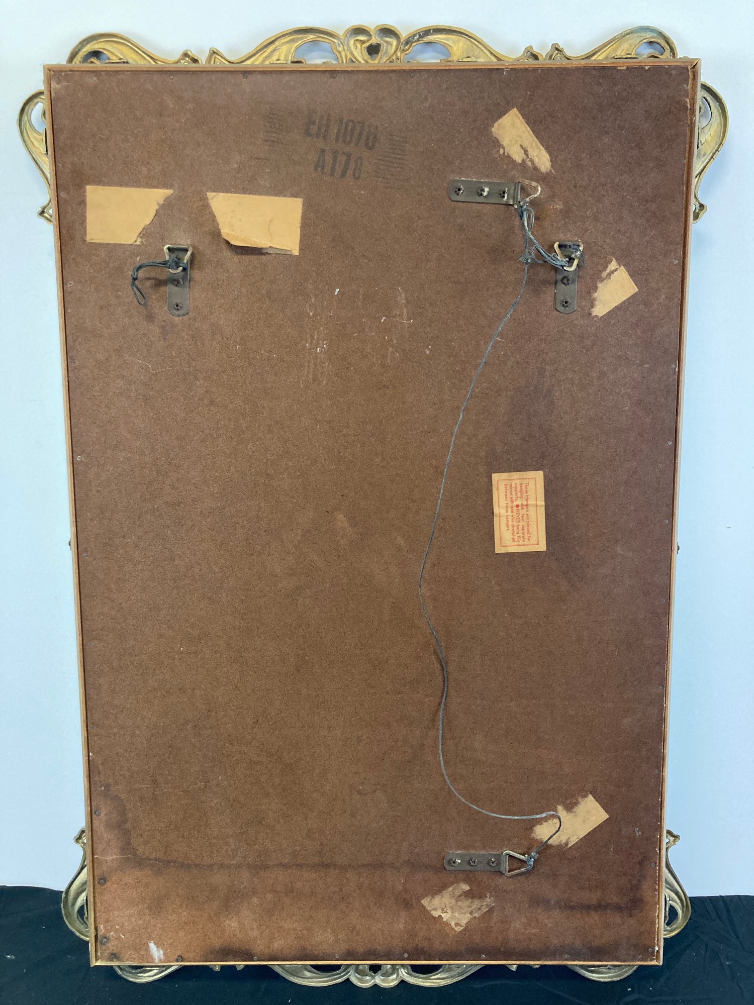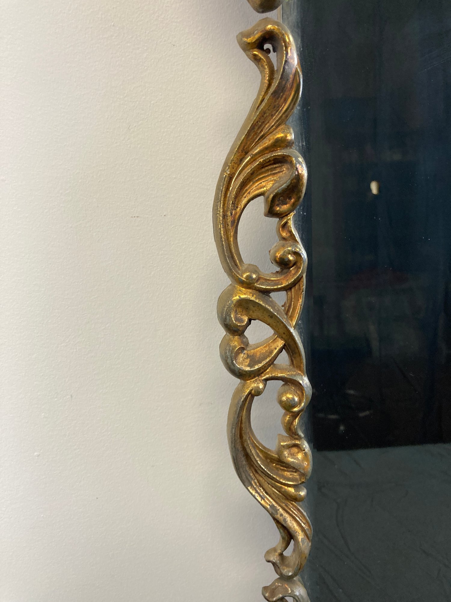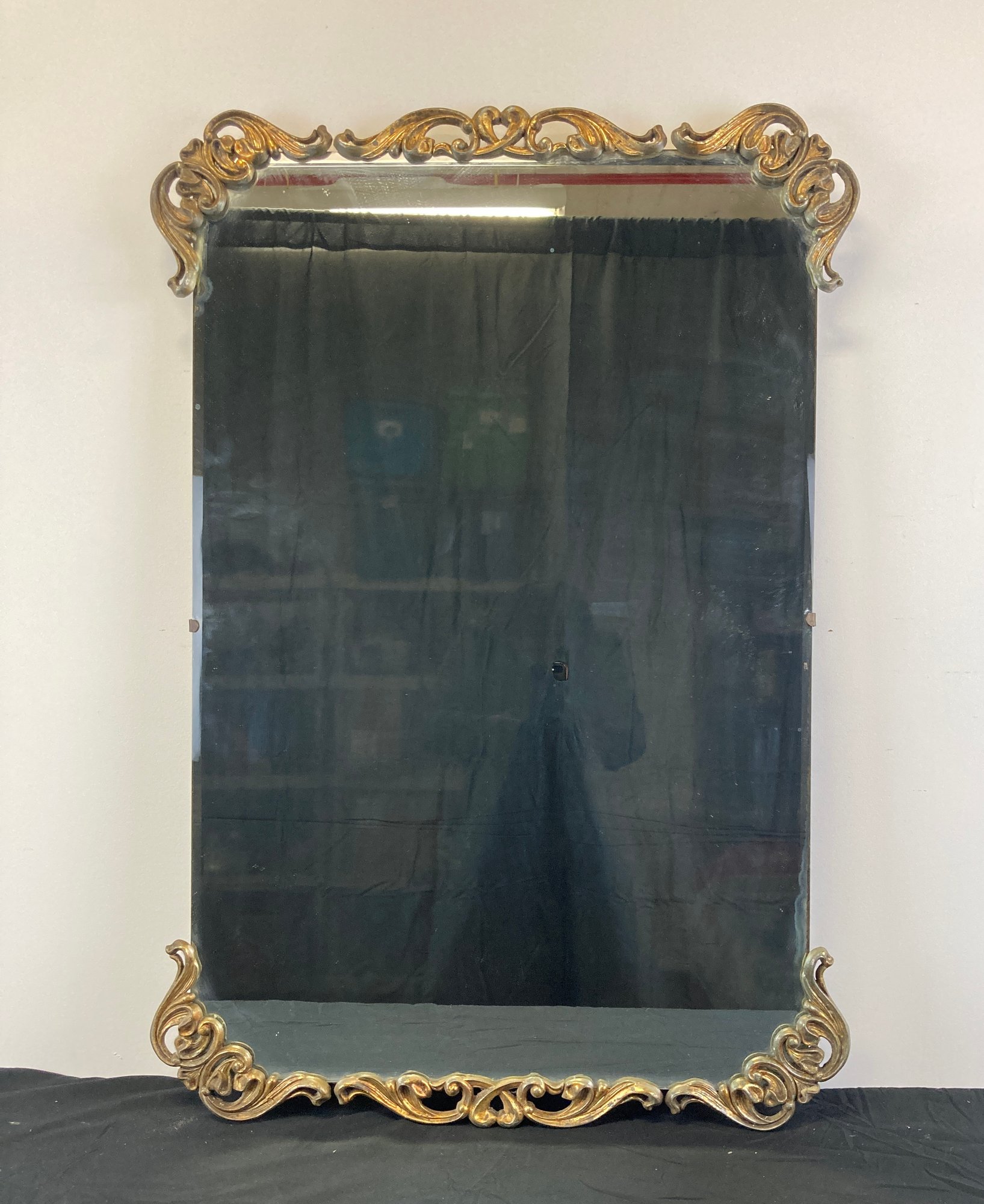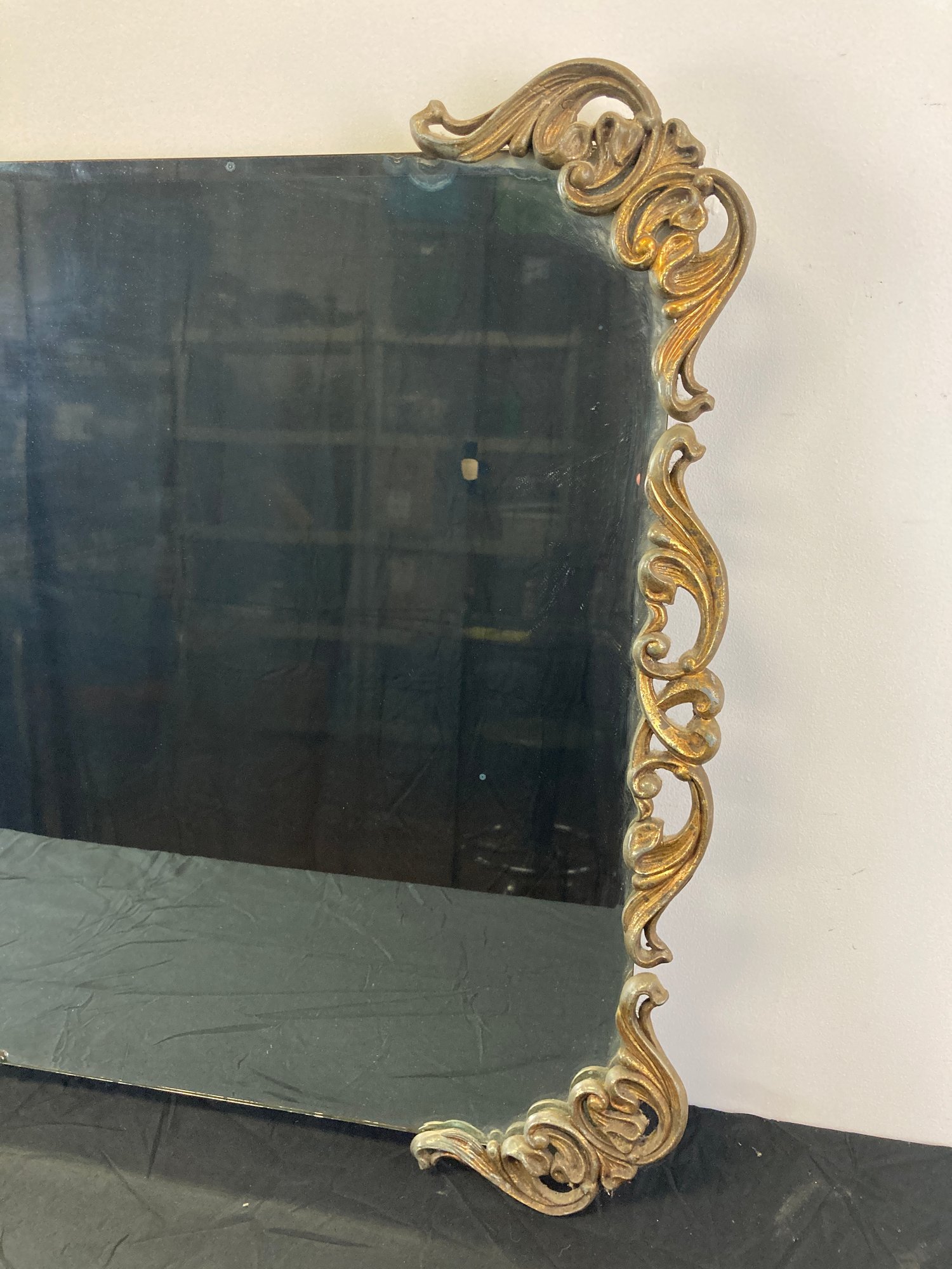 Selling a vintage French Rococo style beveled glass mirror with brass plated metal decorations. Circa 1940s-1950s. Can be hung vertical or horizontal.