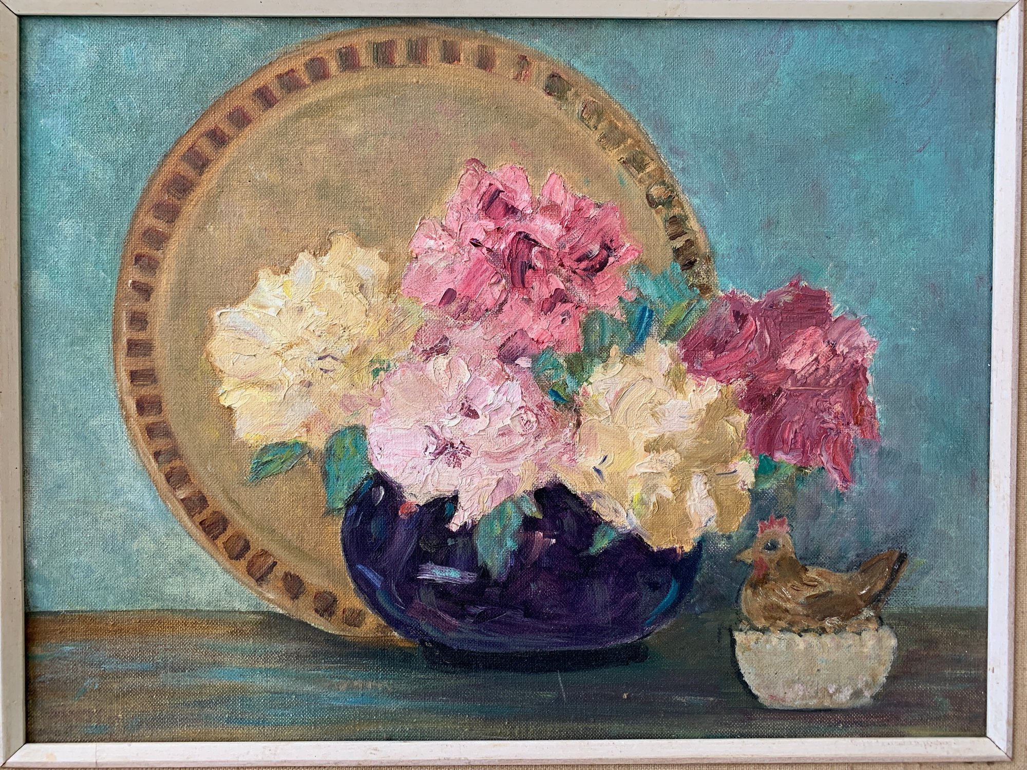 Vintage Still Life Flowers On Table