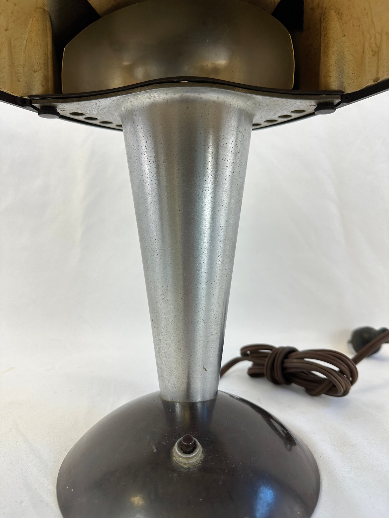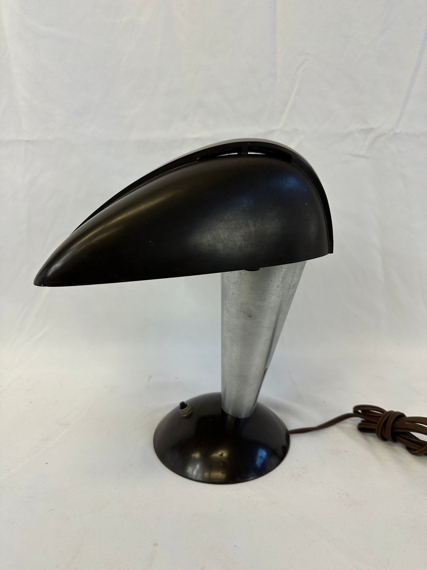 Condition: Turns on, Hairline crack in back of bakelite shade with a small chip.