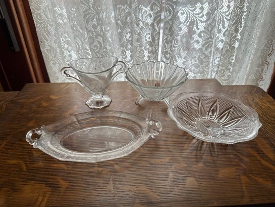 Glass Bowl and Dish Lot Footed Clear Glassware