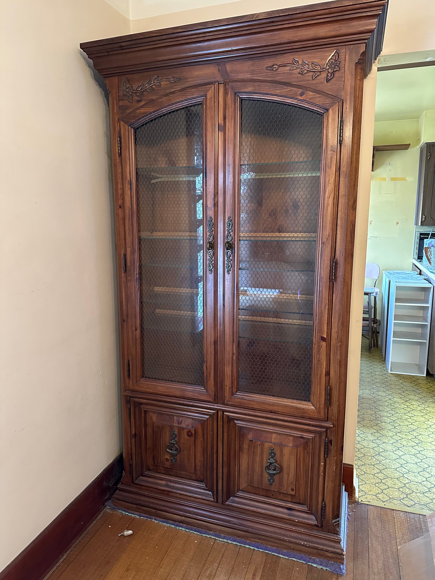 Wood China Hutch Glass Shelves and Doors Storage