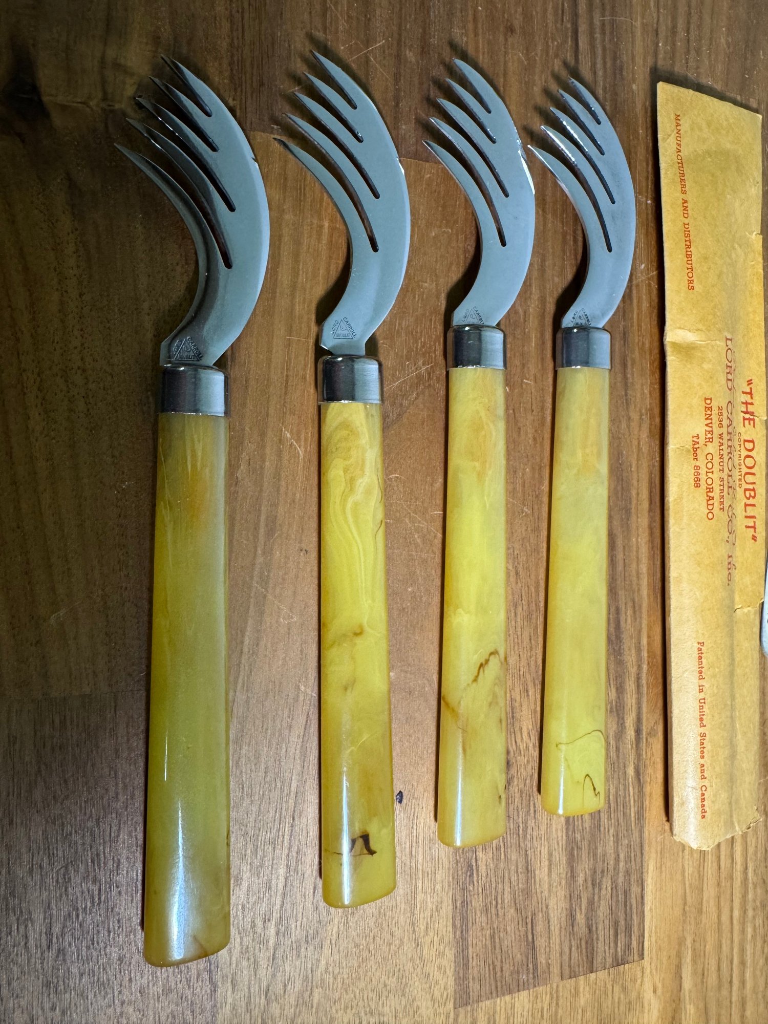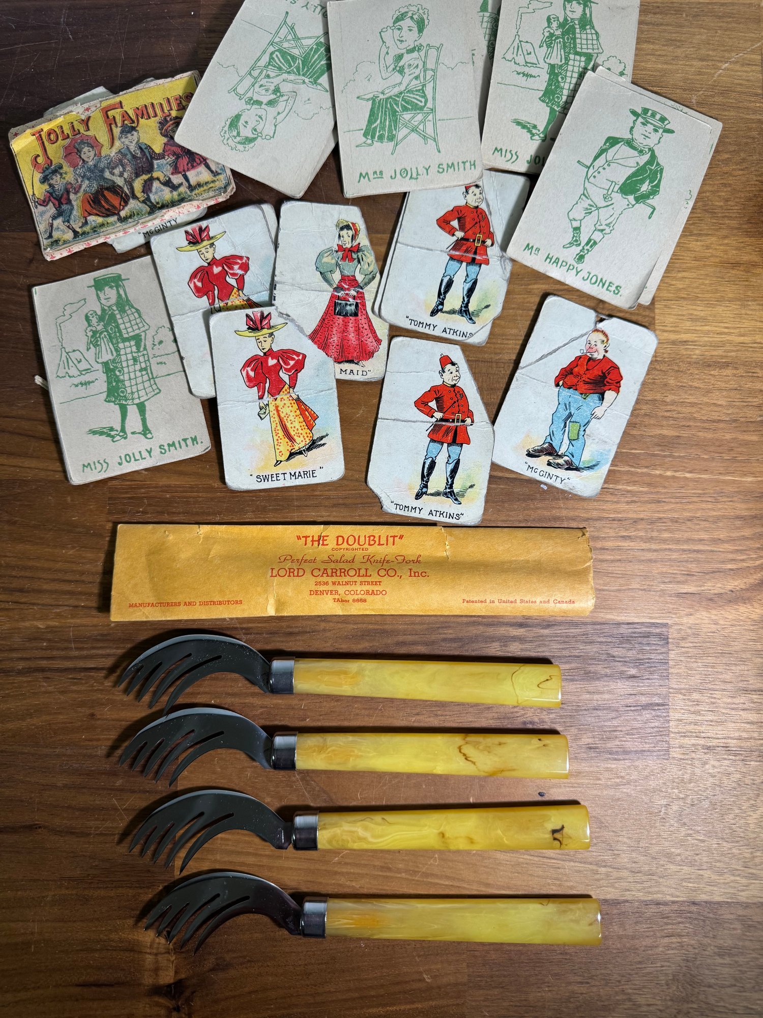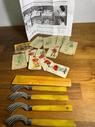4 Incredible New Old Stock Doublit Salad Fork Knives With Some Old Old Maid Cards