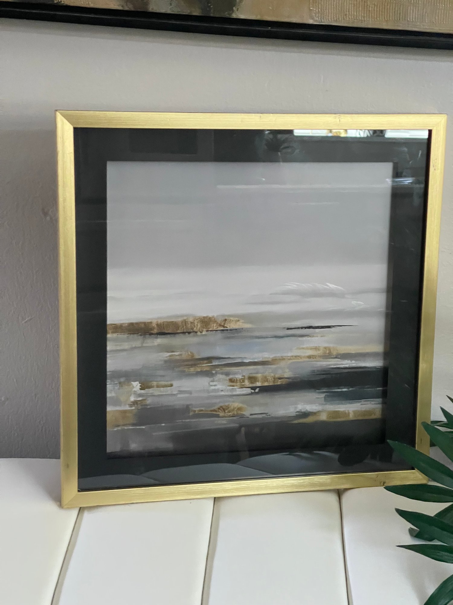 Abstract Landscape Art Piece, Shadow Box Framed with black mat and simple gold frame. Classy and sophisticated.