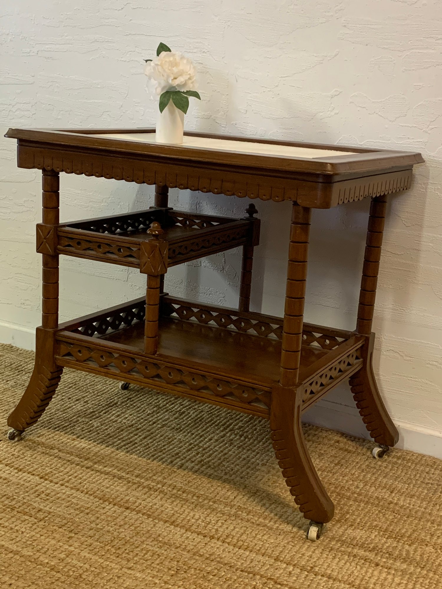 Antique Bar Cart missing the top wood/ glass piece⦠needs some TLC ,
