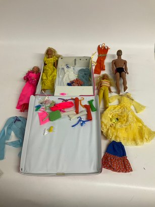 Look at pictures, this is a good group of Barbie, Skipper, and Ken plus case and so much more!