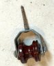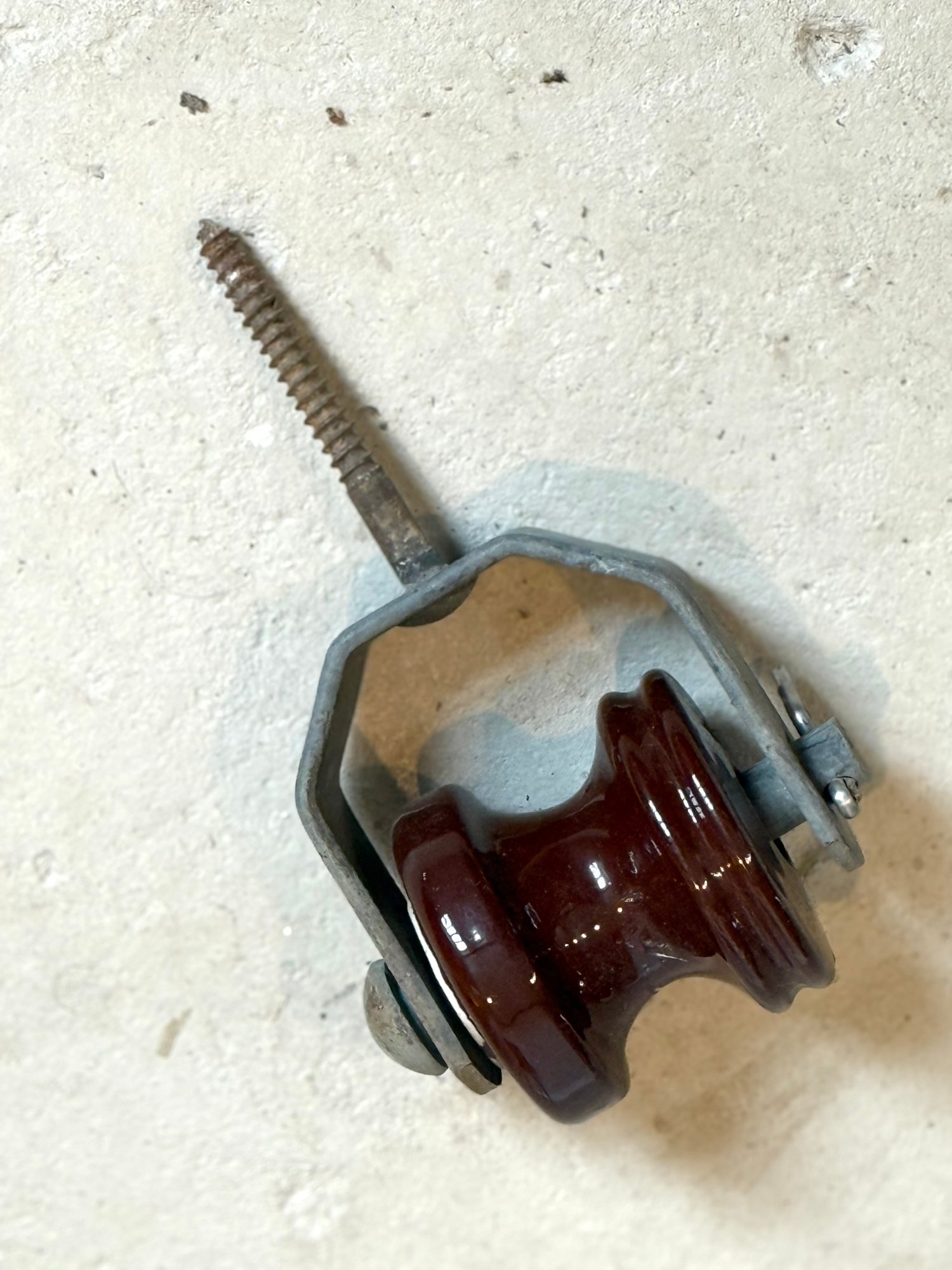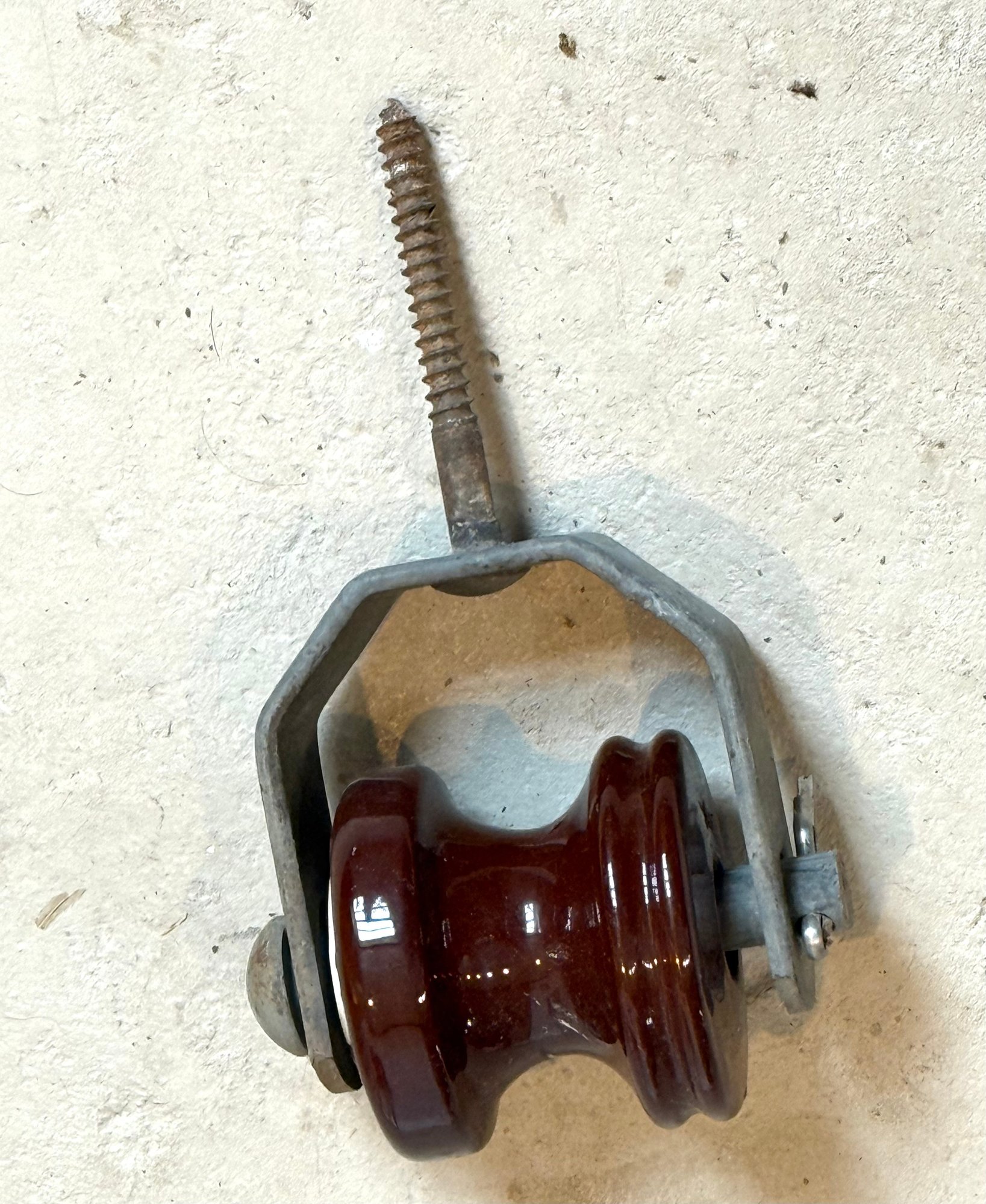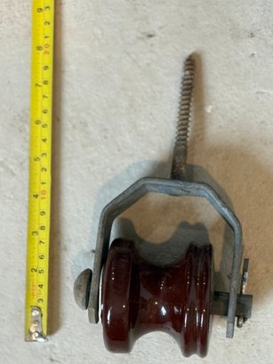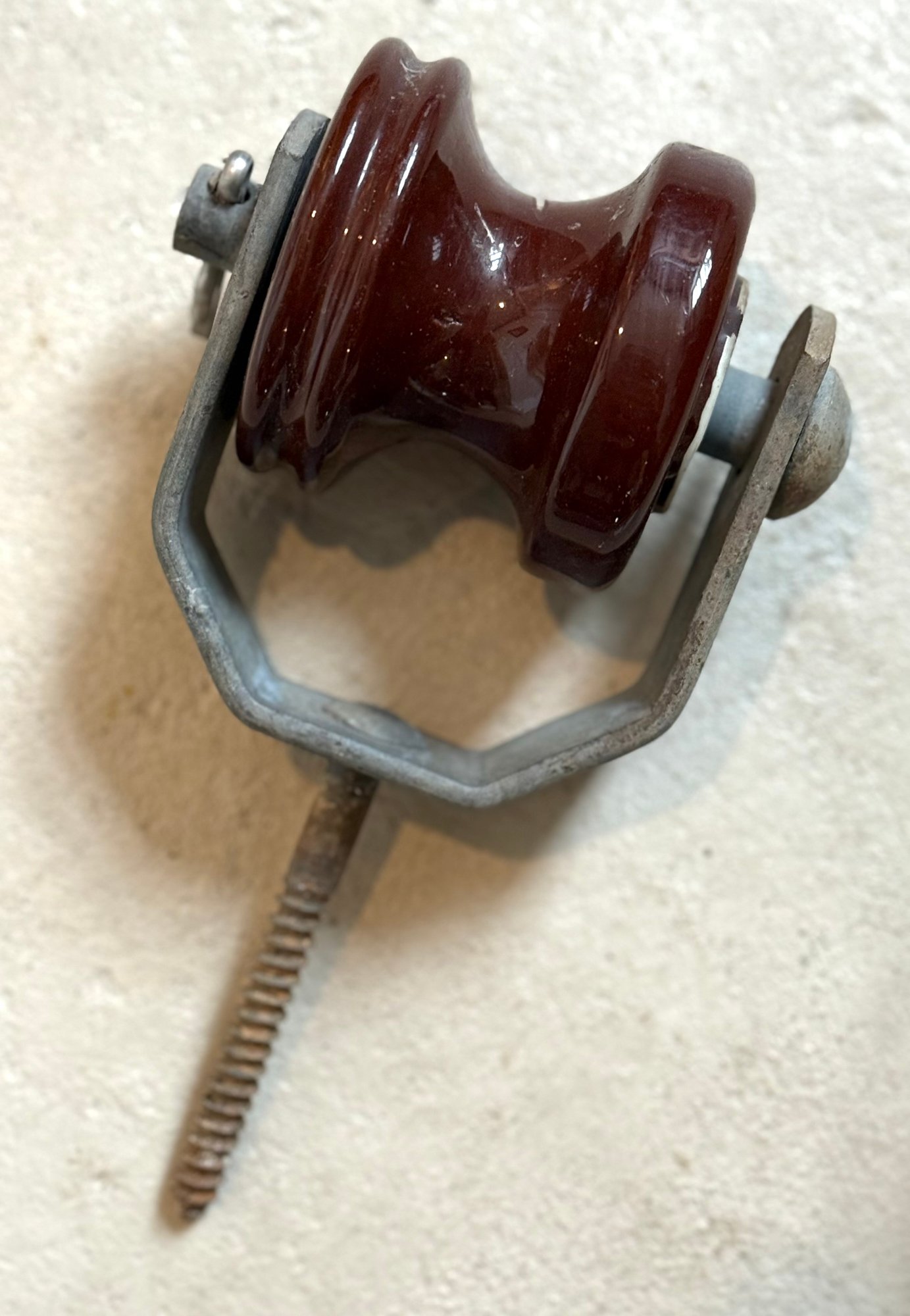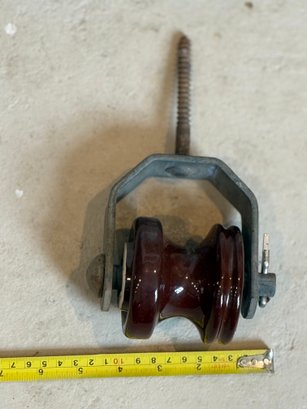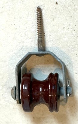 Brown Ceramic /Porcelain Spool Or Shackle Electrical Insulator W/ D Iron Clamp
