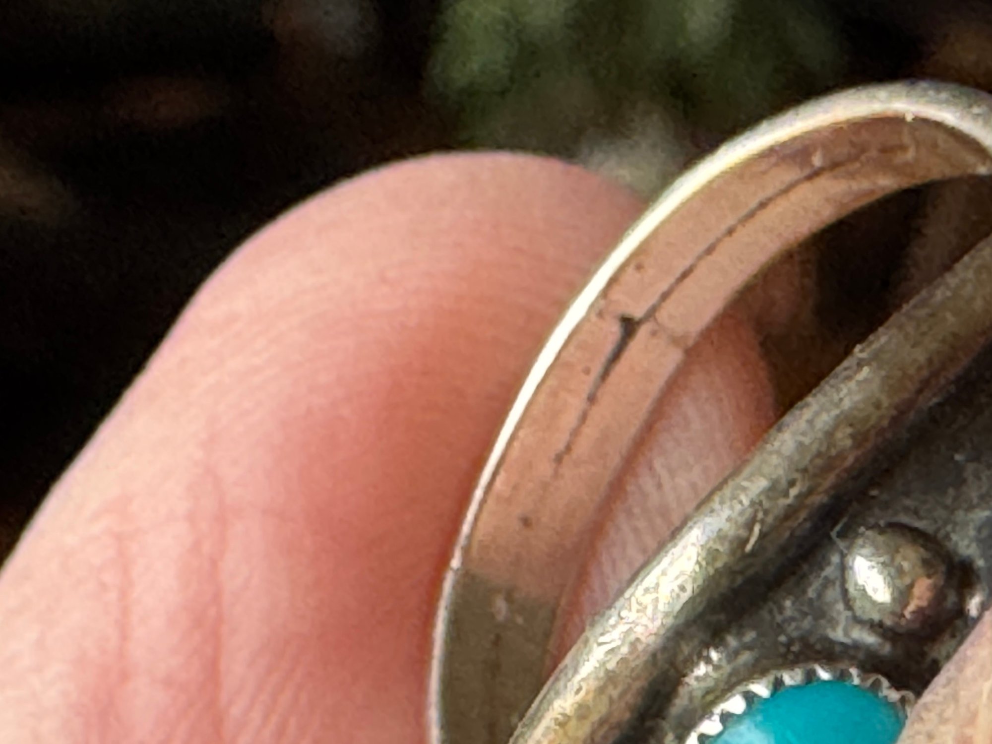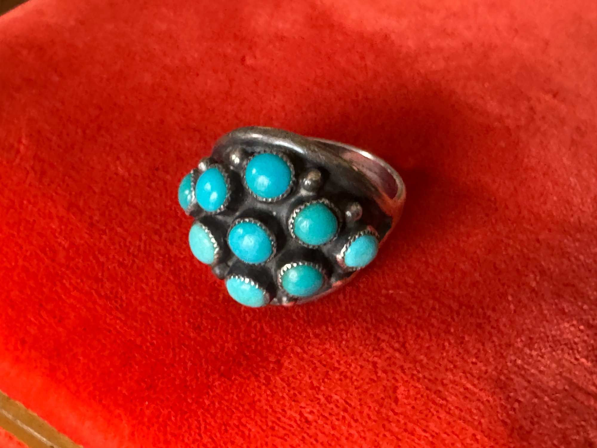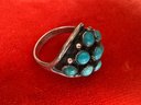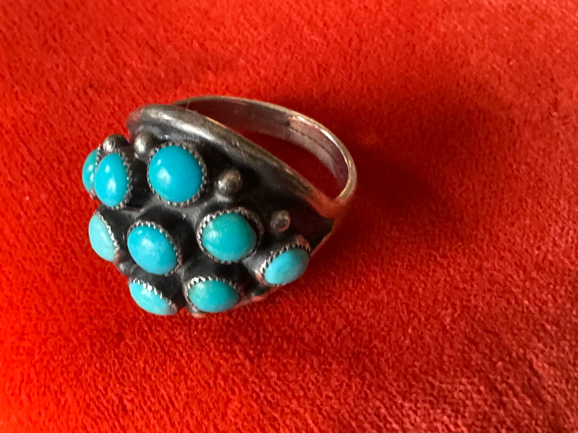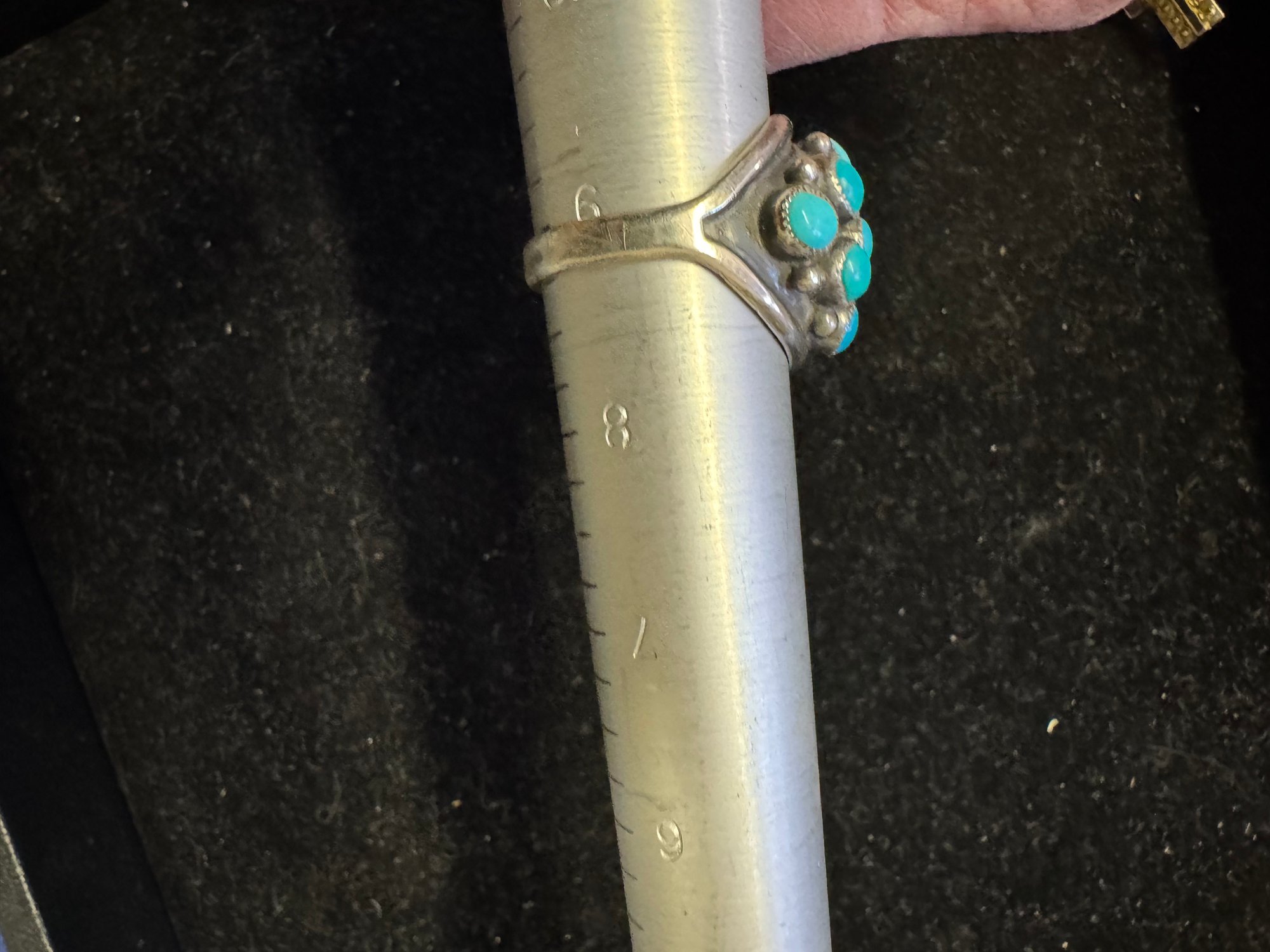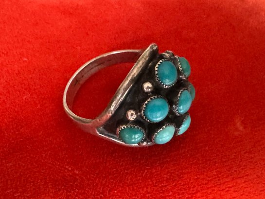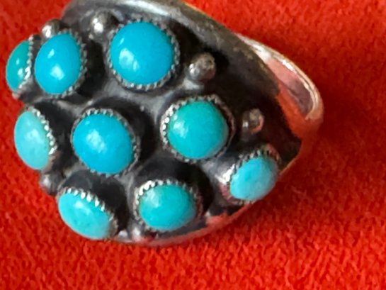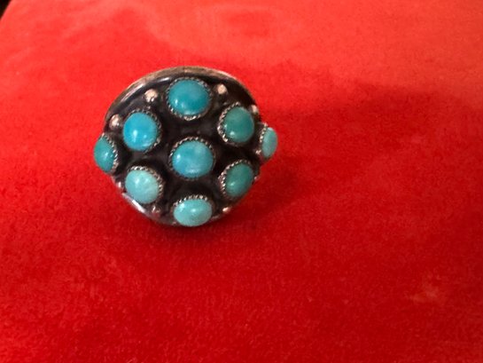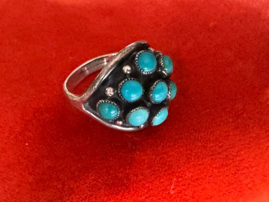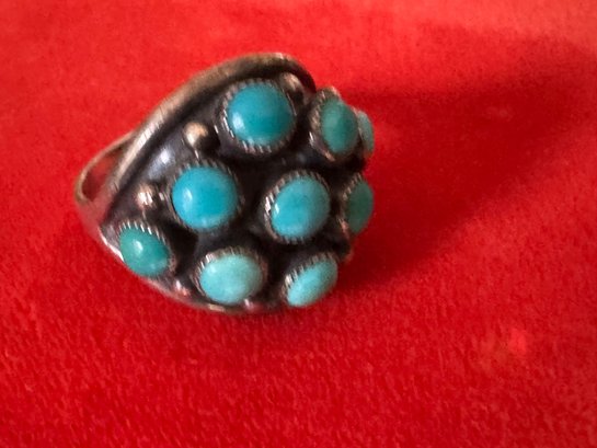 Classic and comfortable believed to be silver and turquoise but no markings other than as shown about size appears about 8.75 to 9 see pictures