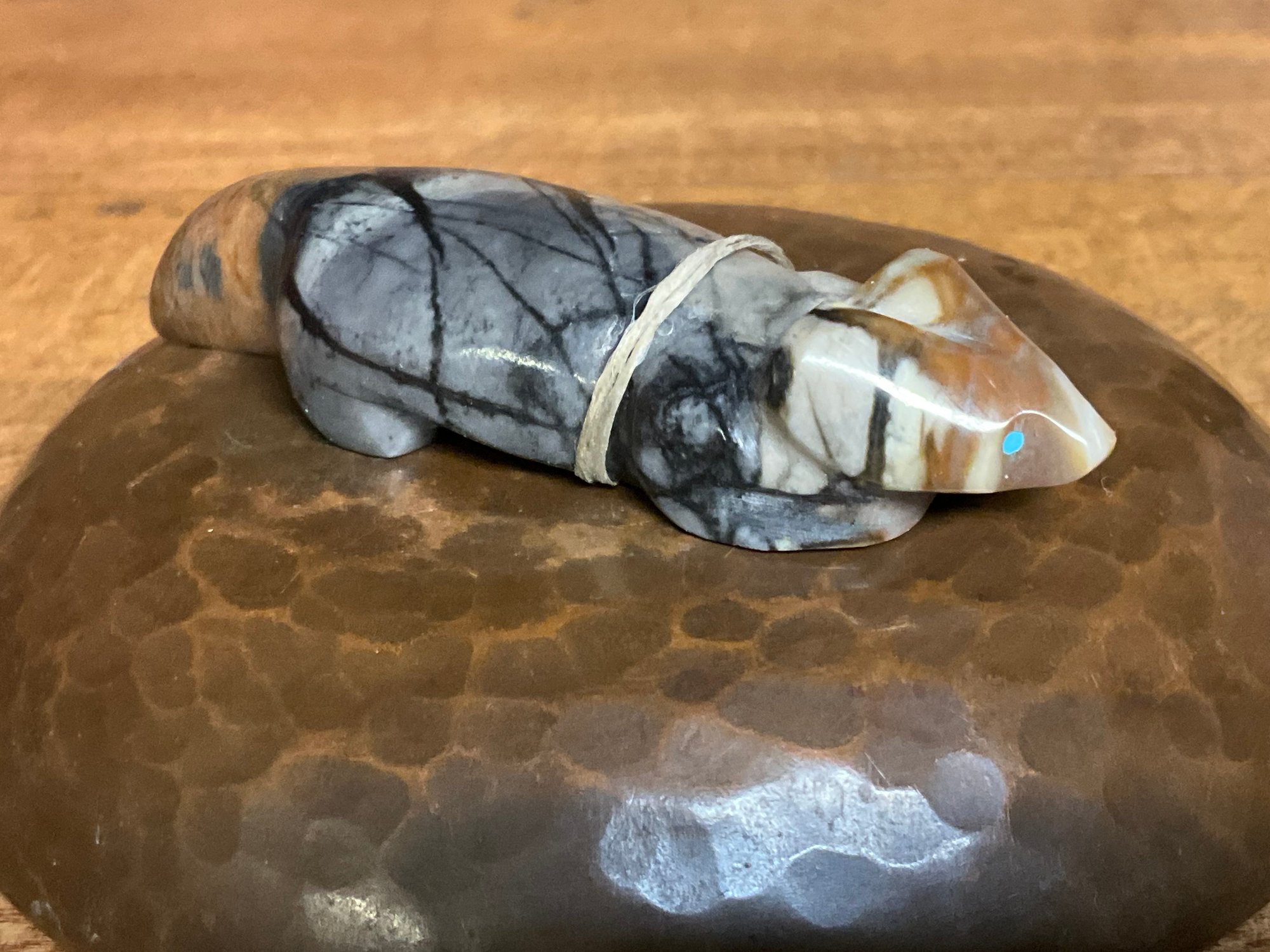 Badger: Aggressive and persistent, a healer. Badger is the Zuni protector of the South, associated with red. About 2.5 inches long.