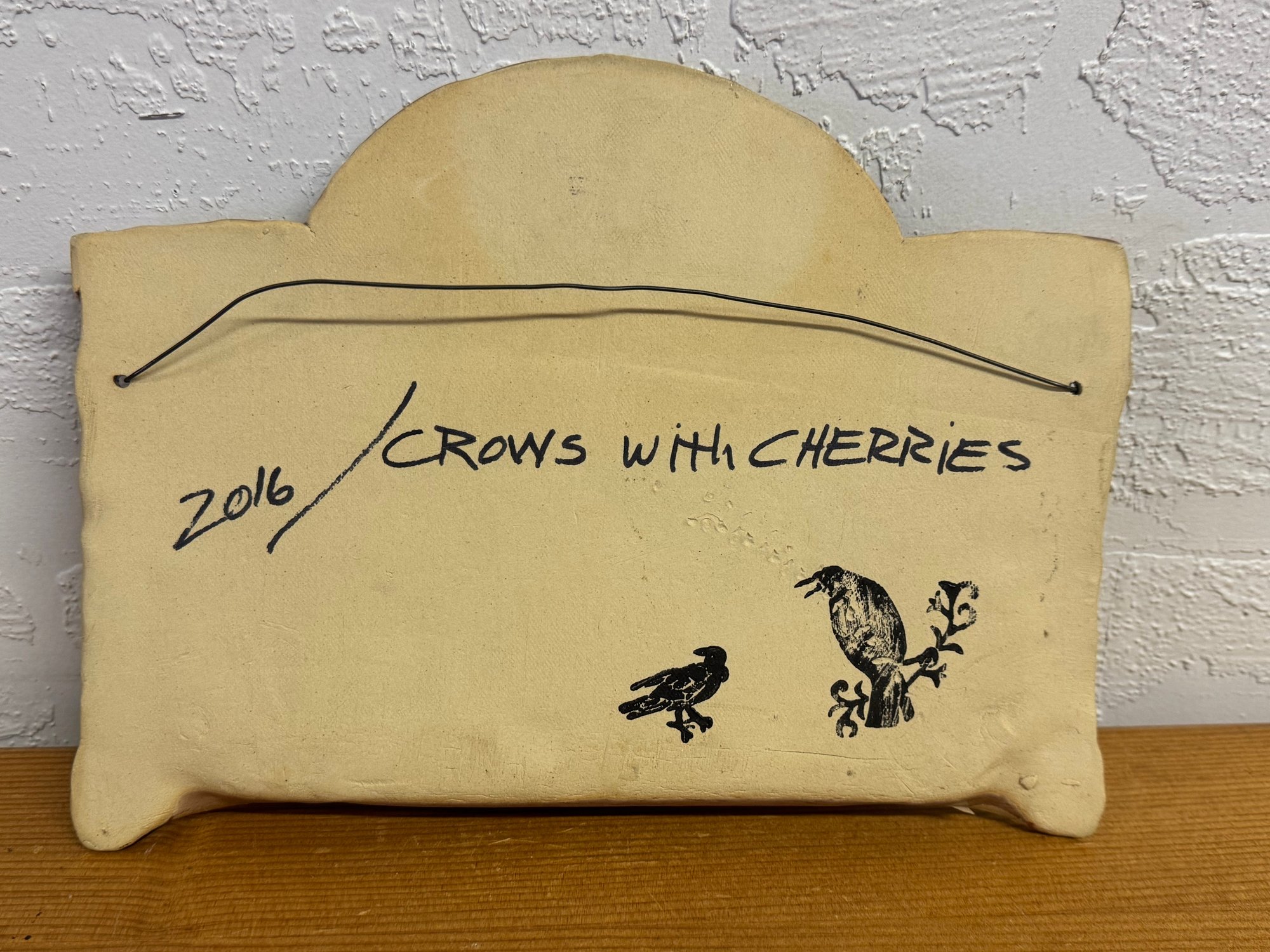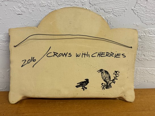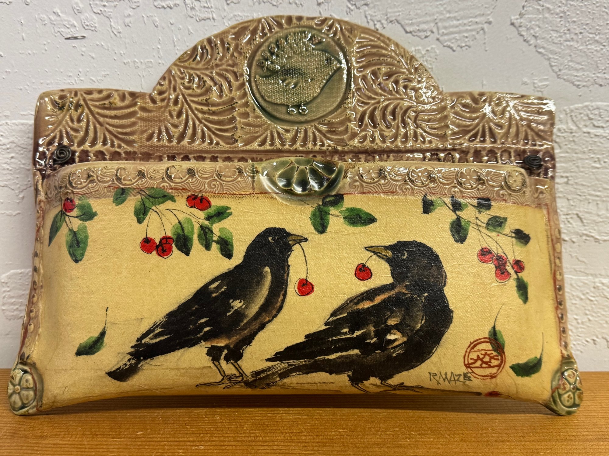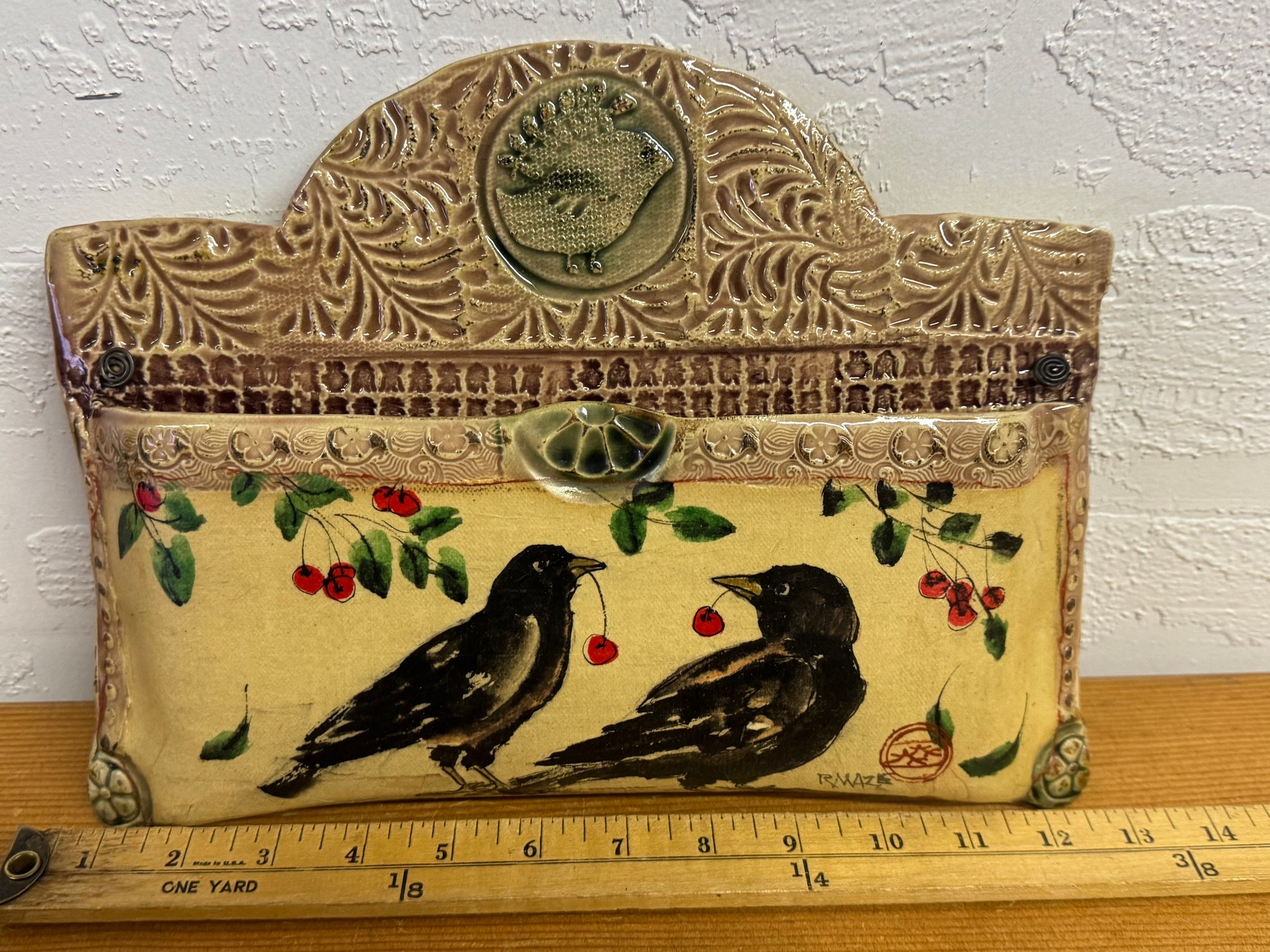 Ceramic Wall Pocket Crow & Cherry Motif 8.5 X 12 Inches