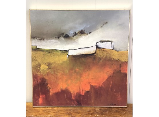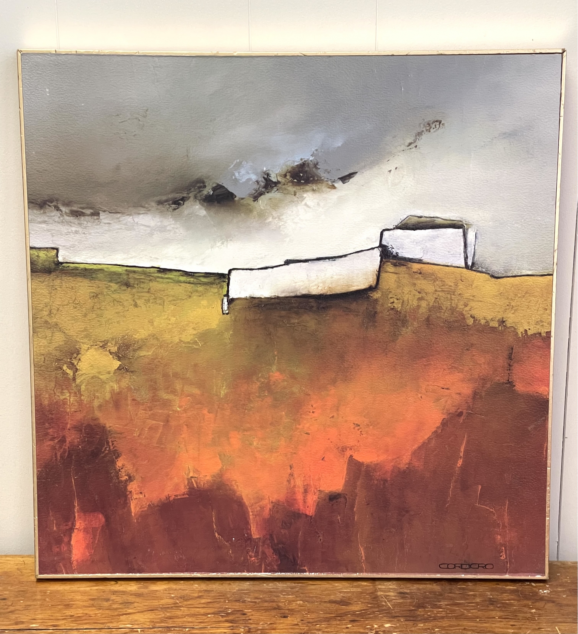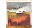Fabulous contemporary art! 26 x 26. mounted on thick wood frame with Gold leaf edges. 26 x 26
